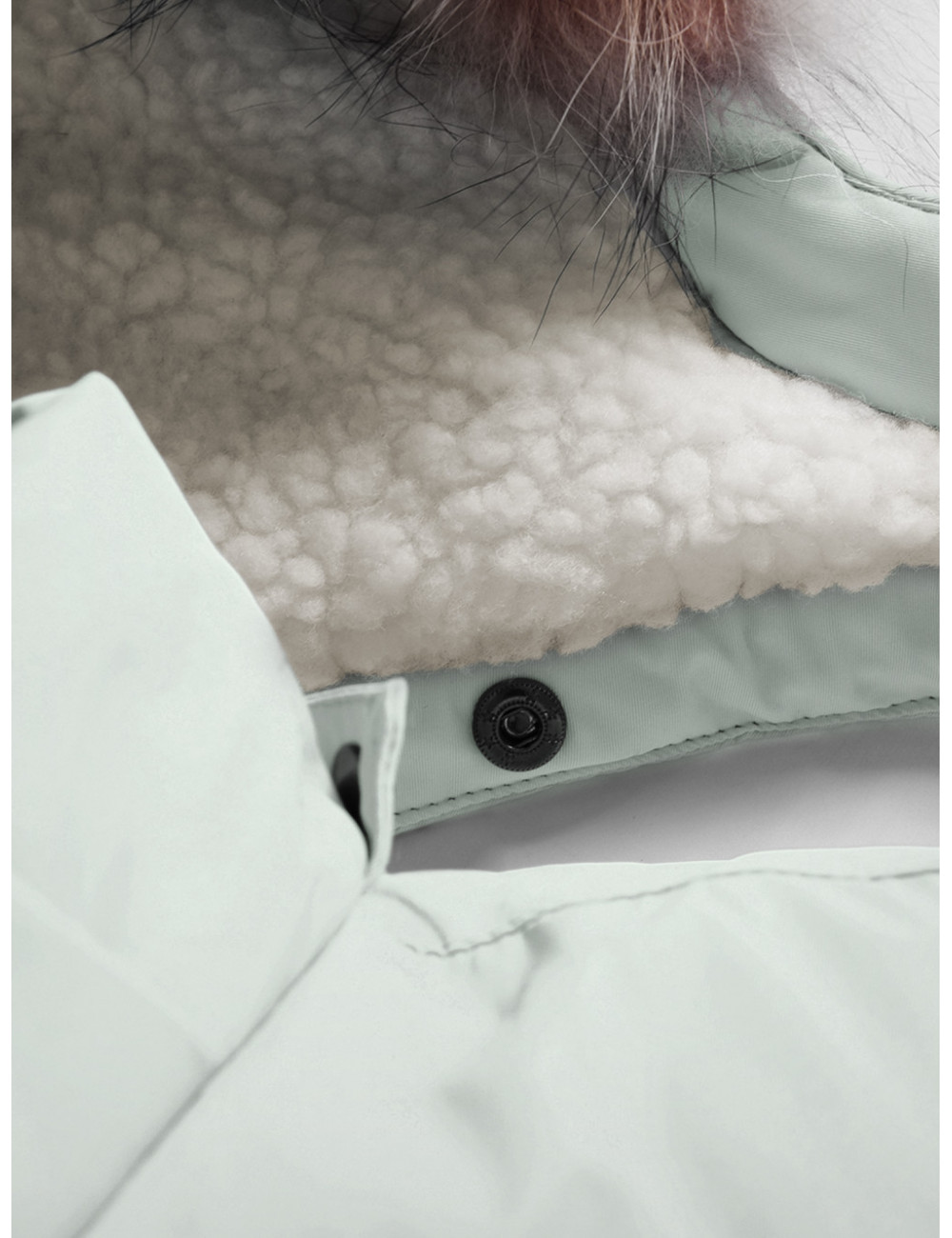 Парка отлично сочетается с тёплыми зимними брюками, шапкой и перчатками из аналогичных материалов. Это создаст гармоничный и уютный образ для девочки, готовой к приключениям в холодное время года. Доставка по Москве и Московской области Детская зимняя парка-куртка бирюзового цвета для девочки с капюшоном и мехом.