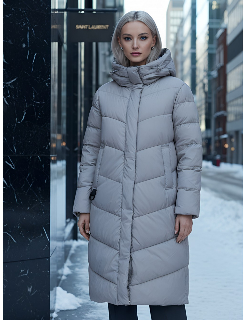 Не упустите возможность приобрести этот стильный и практичный пуховик от Ketsi и оставайтесь в тренде этой осенью и зимой! Доставка Длинный женский пуховик с капюшоном, серый. по Тюмени и Тюменской области СДЭК