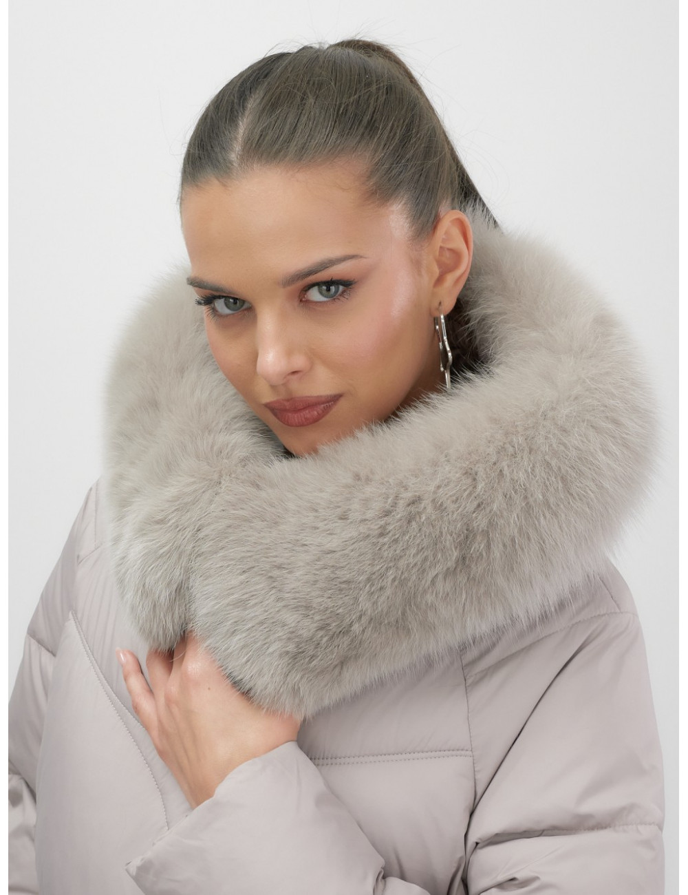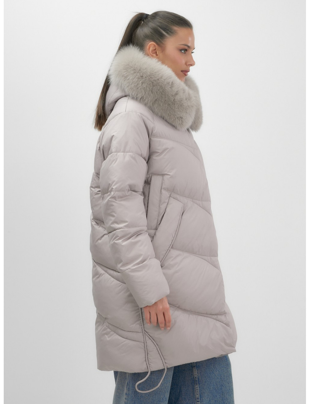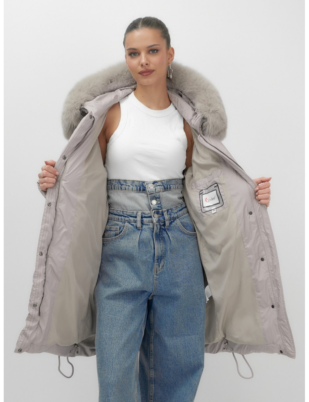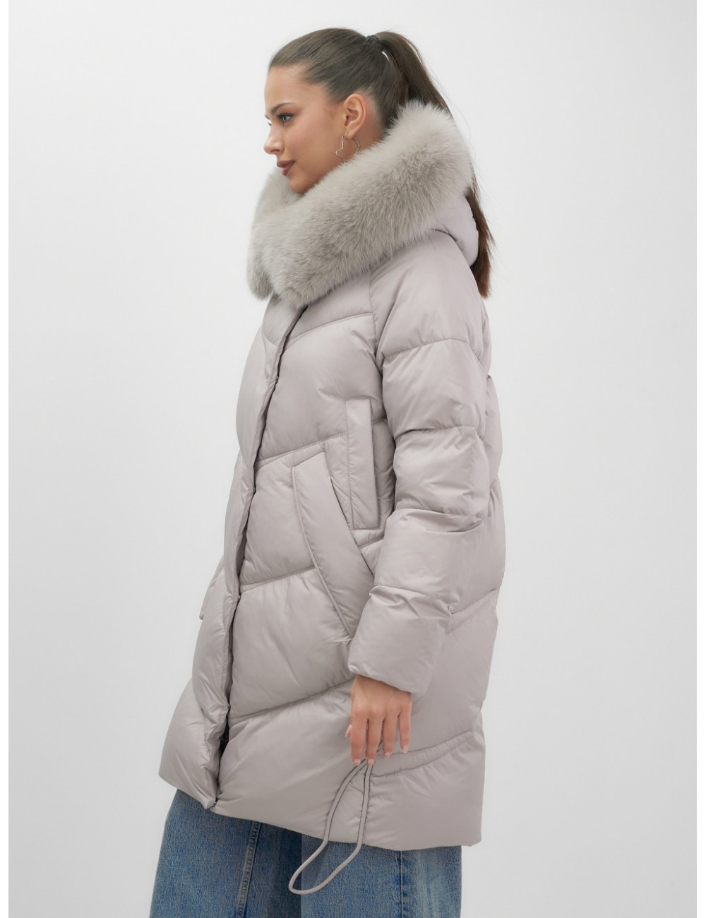 Роскошная съёмная опушка из натурального песца создаёт неповторимый образ. Первоклассное качество меха подчёркивает премиальность модели.