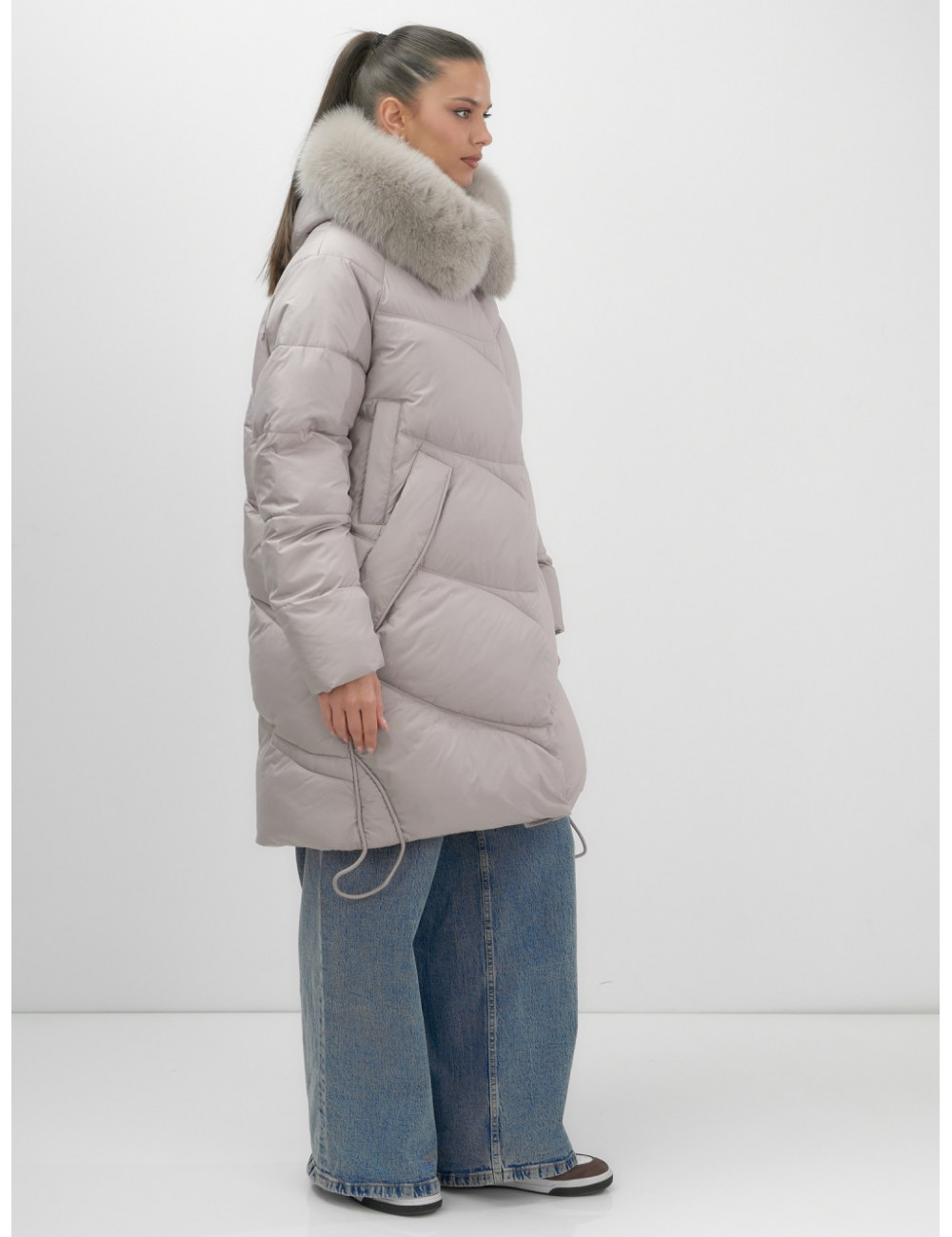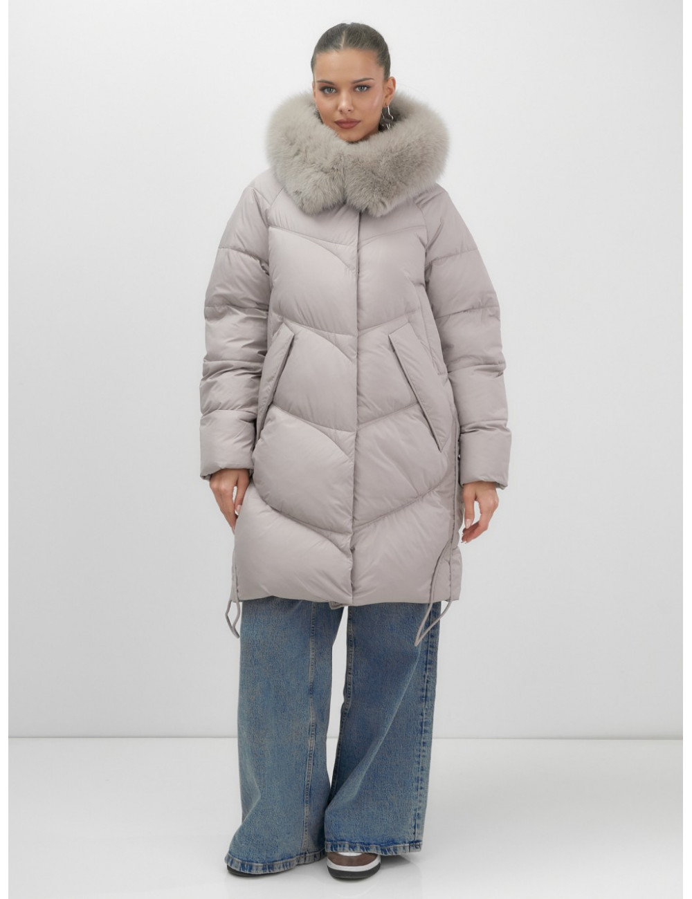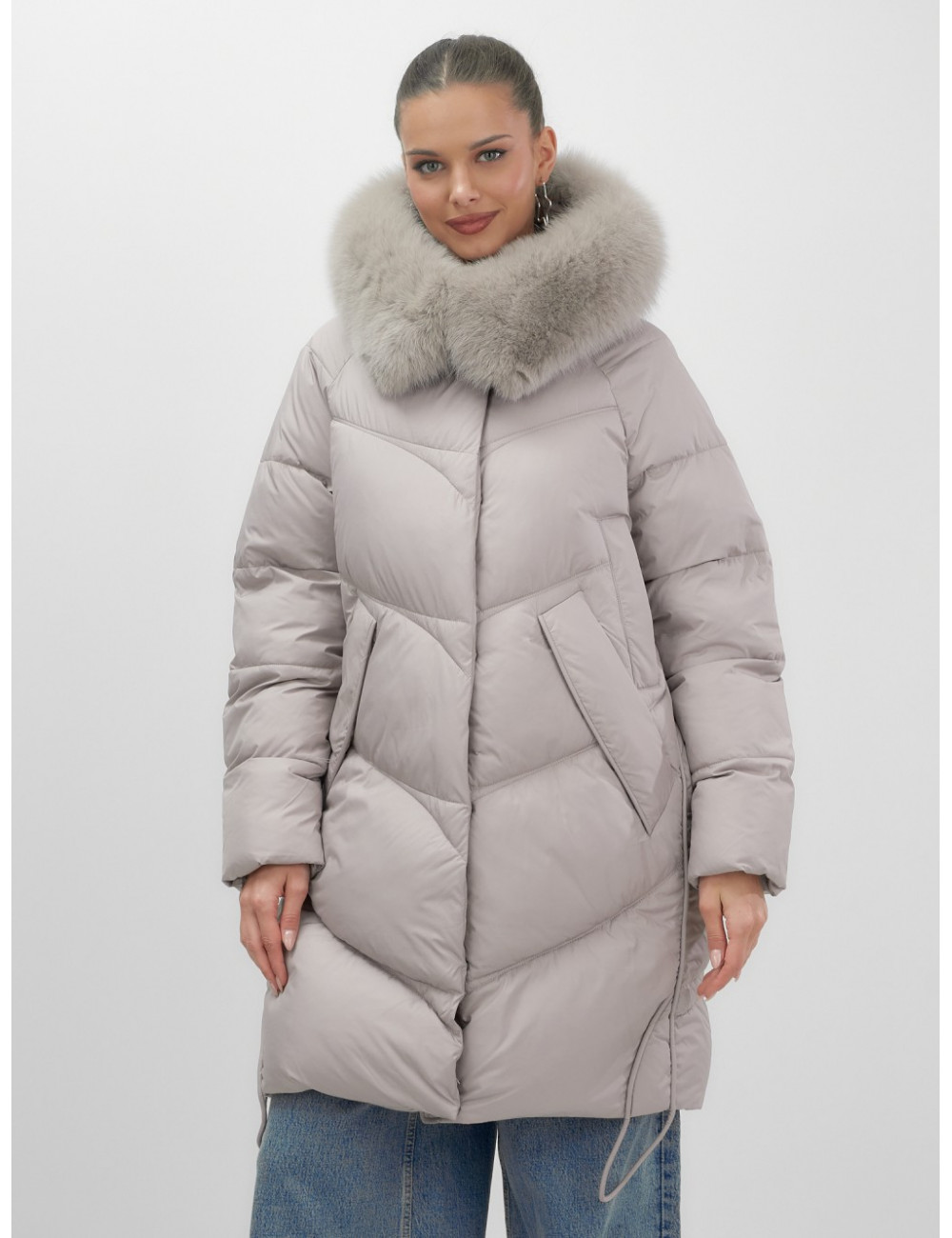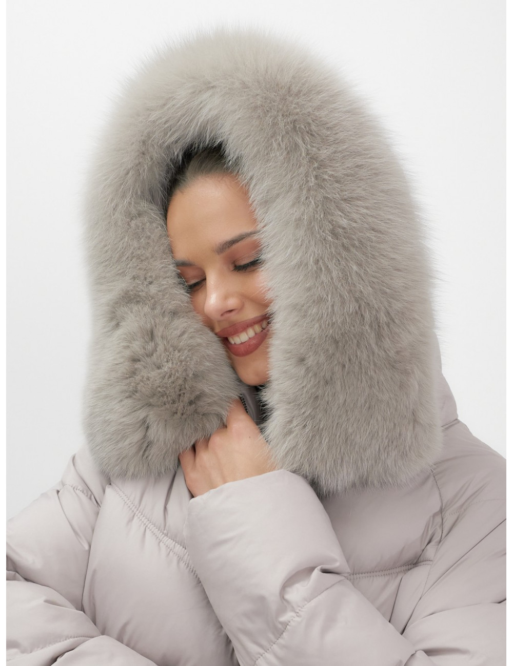 Роскошная съёмная опушка из натурального песца создаёт неповторимый образ. Первоклассное качество меха подчёркивает премиальность модели.