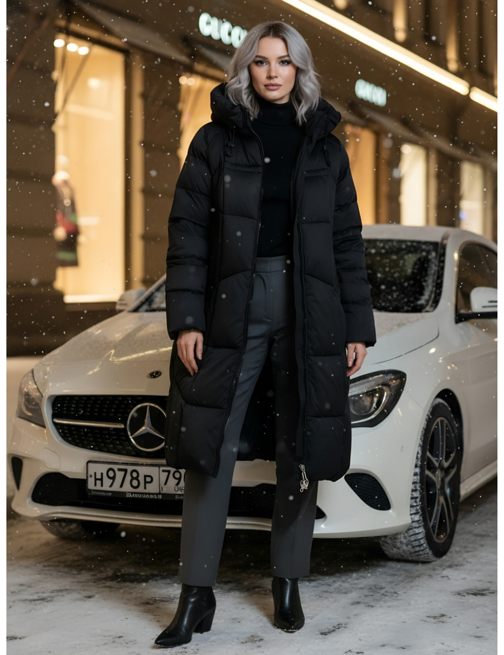 Не упустите возможность приобрести этот стильный и практичный пуховик от Ketsi и оставайтесь в тренде в холодное время года! Доставка Длинный женский пуховик с капюшоном, чёрный. по Тюмени и Тюменской области СДЭК