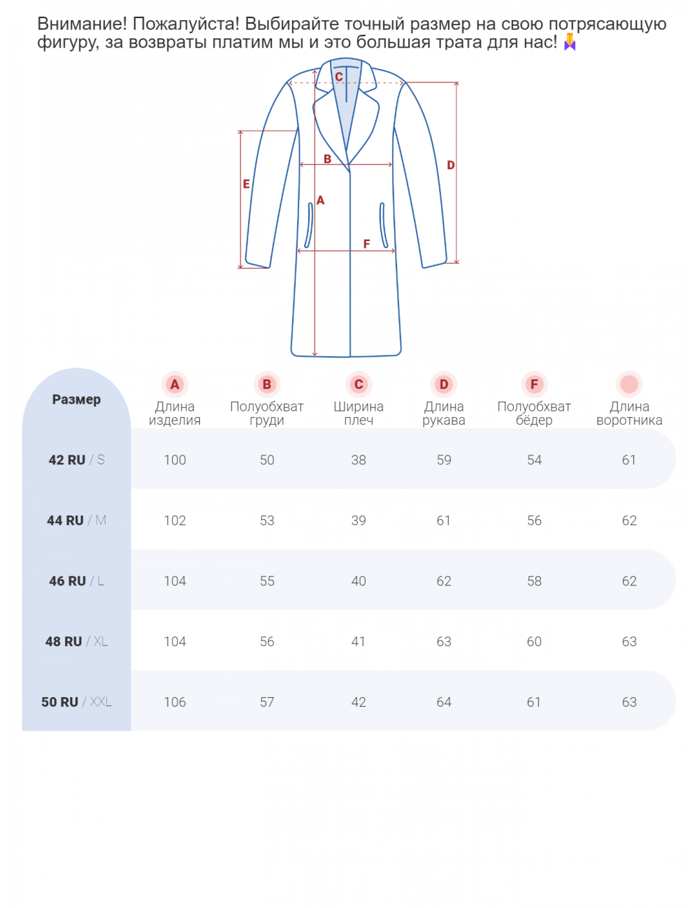 Мы рекомендуем ознакомиться с размерной сеткой, чтобы выбрать оптимальный размер.