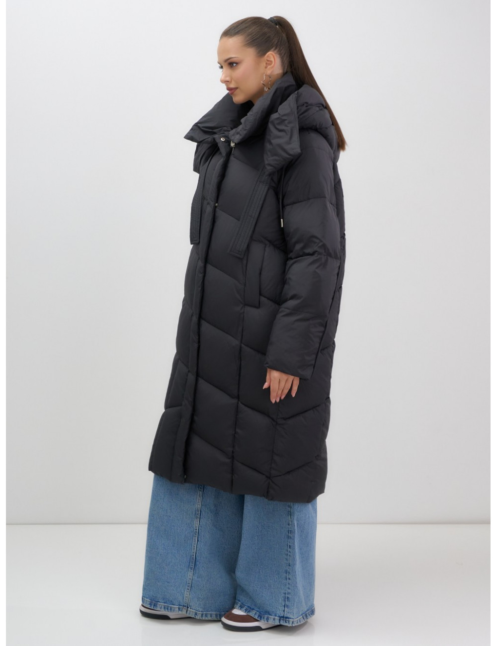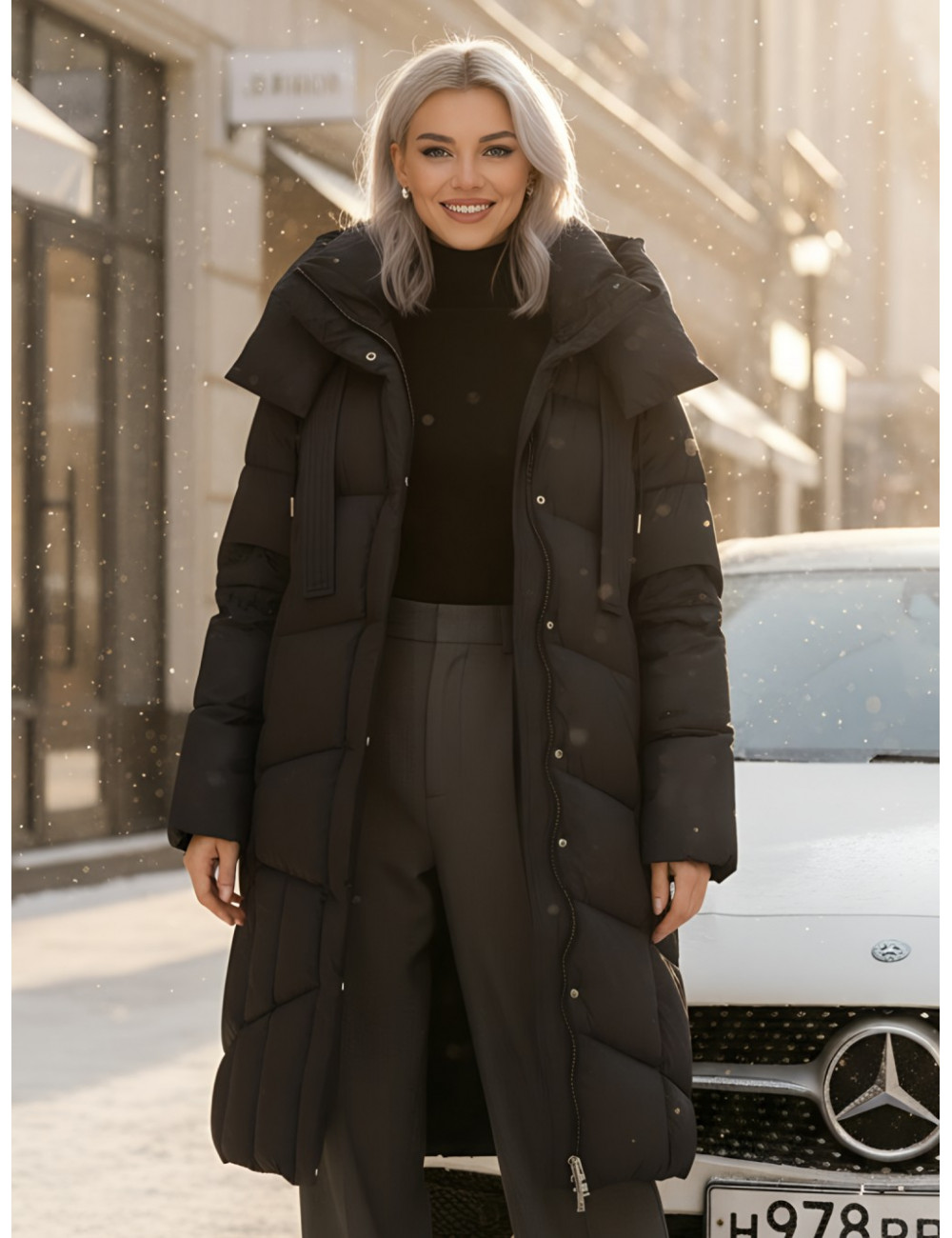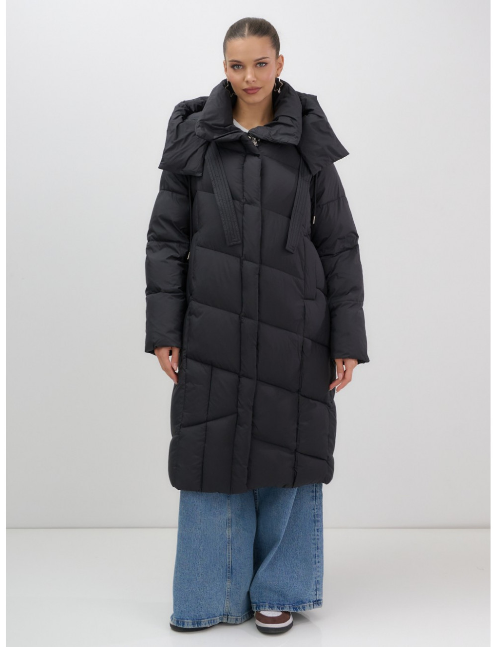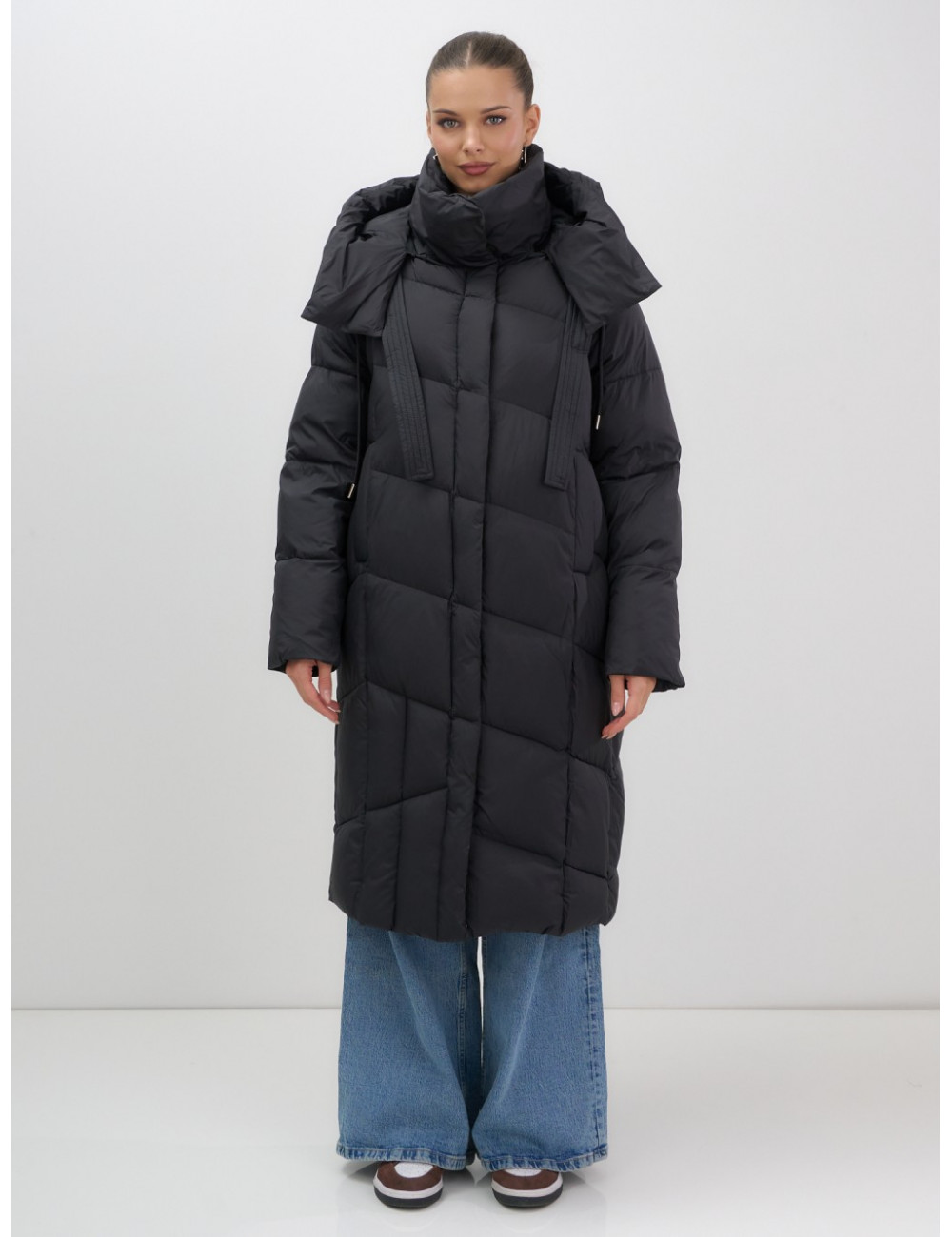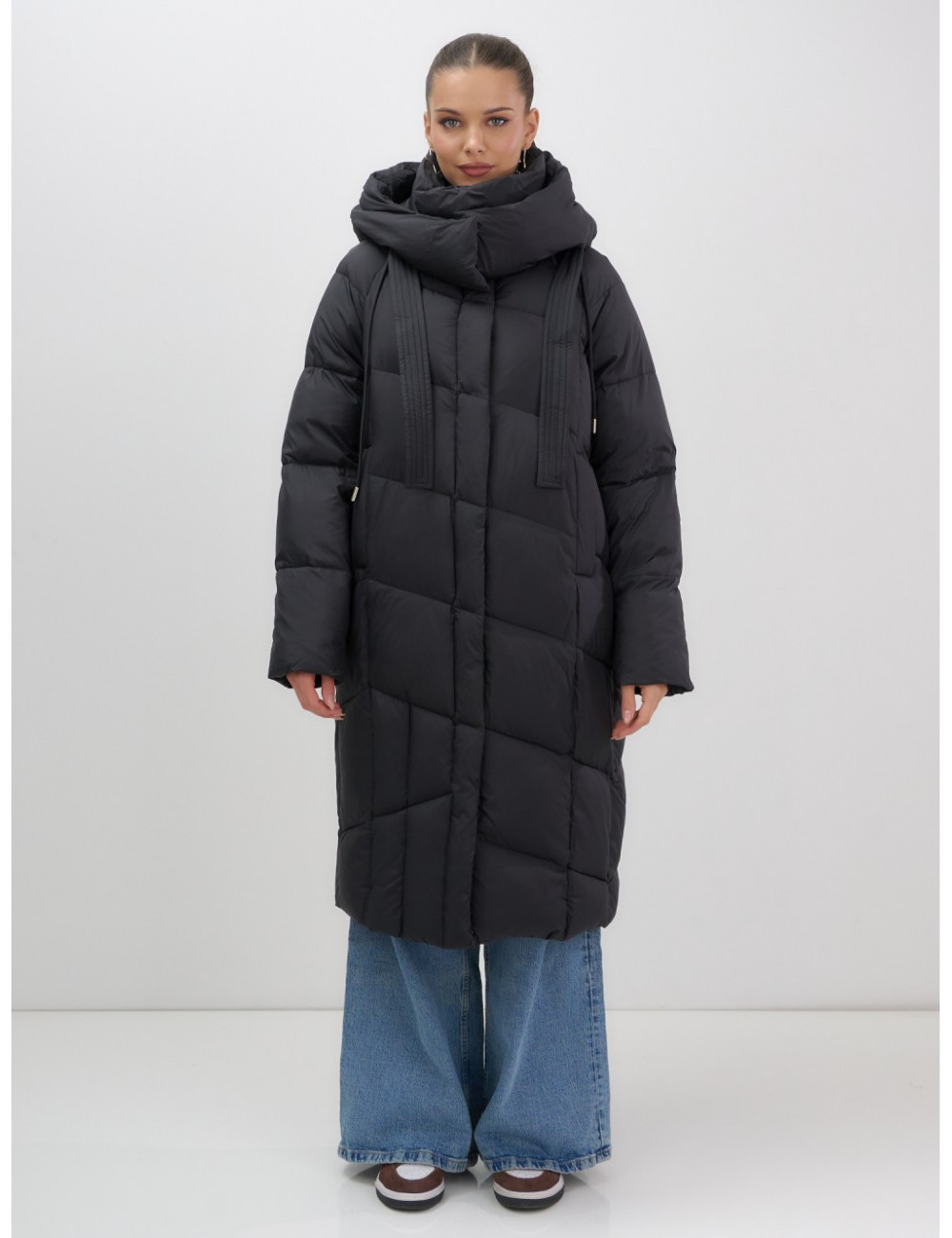 - Дизайн: элегантный и современный стиль подойдёт для любого случая — от офисных будней до повседневных выходов. Удлинённый крой ниже колена с прямым и свободным покроем создаёт эффект одеяла, что делает пуховик не только тёплым, но и невероятно уютным.