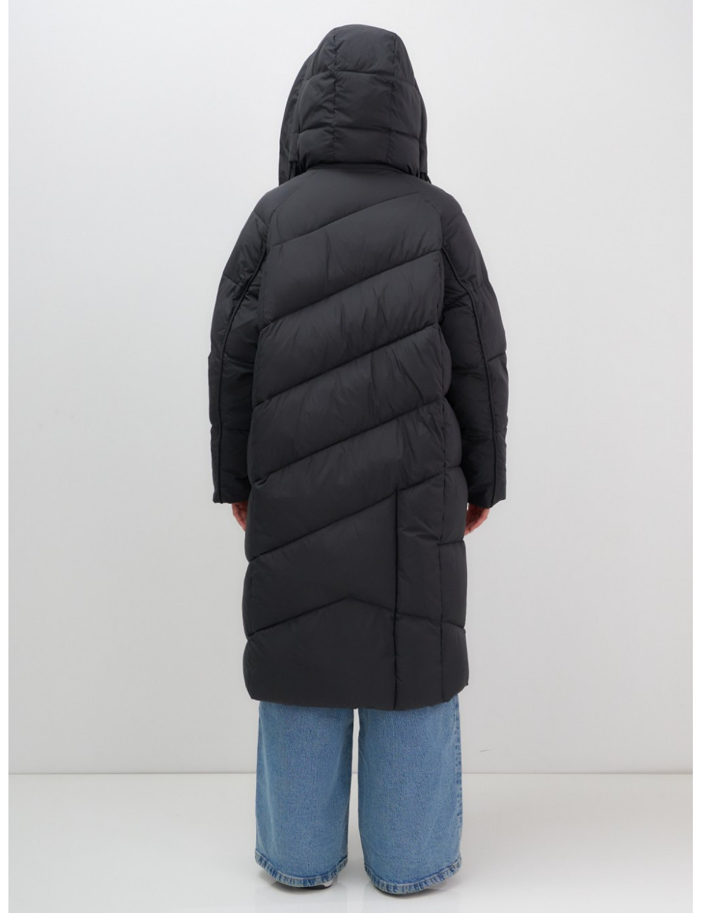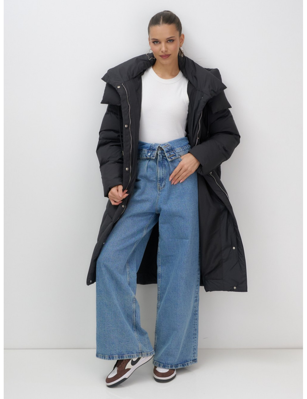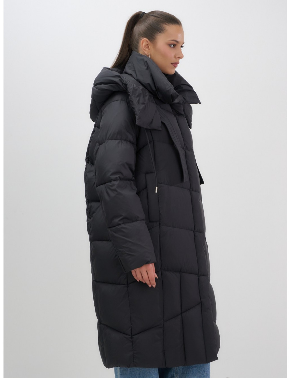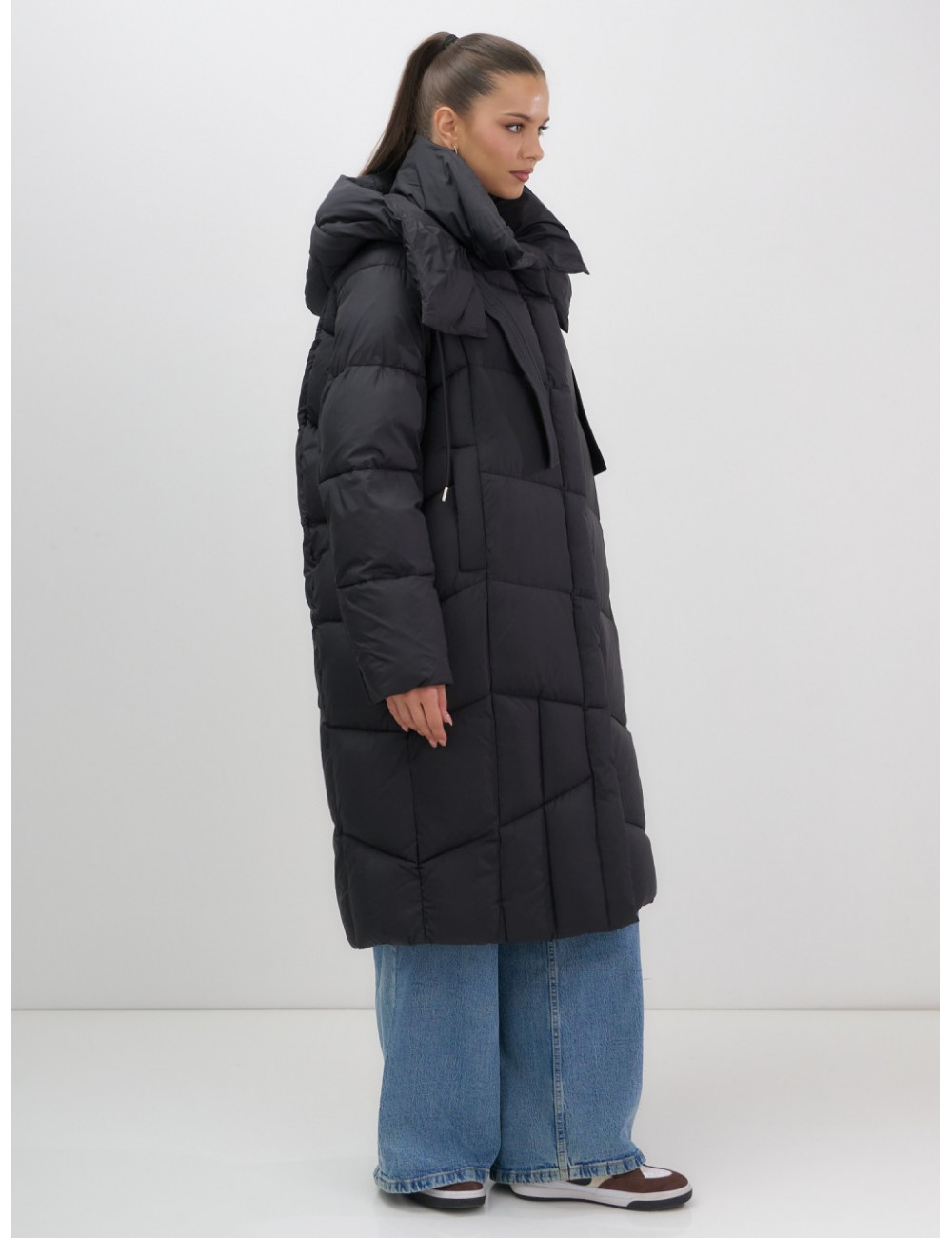 - Дизайн: элегантный и современный стиль подойдёт для любого случая — от офисных будней до повседневных выходов. Удлинённый крой ниже колена с прямым и свободным покроем создаёт эффект одеяла, что делает пуховик не только тёплым, но и невероятно уютным.