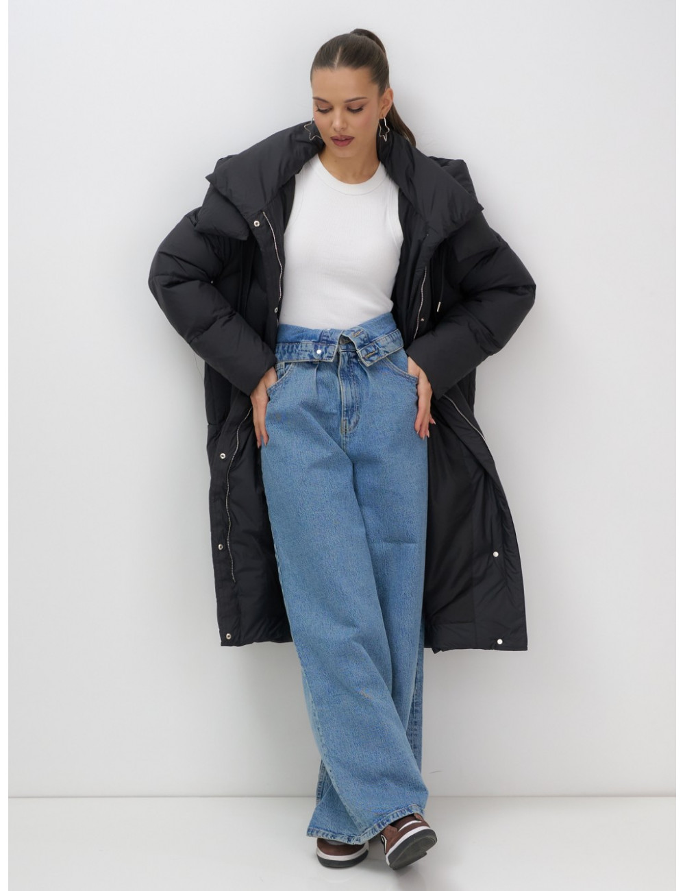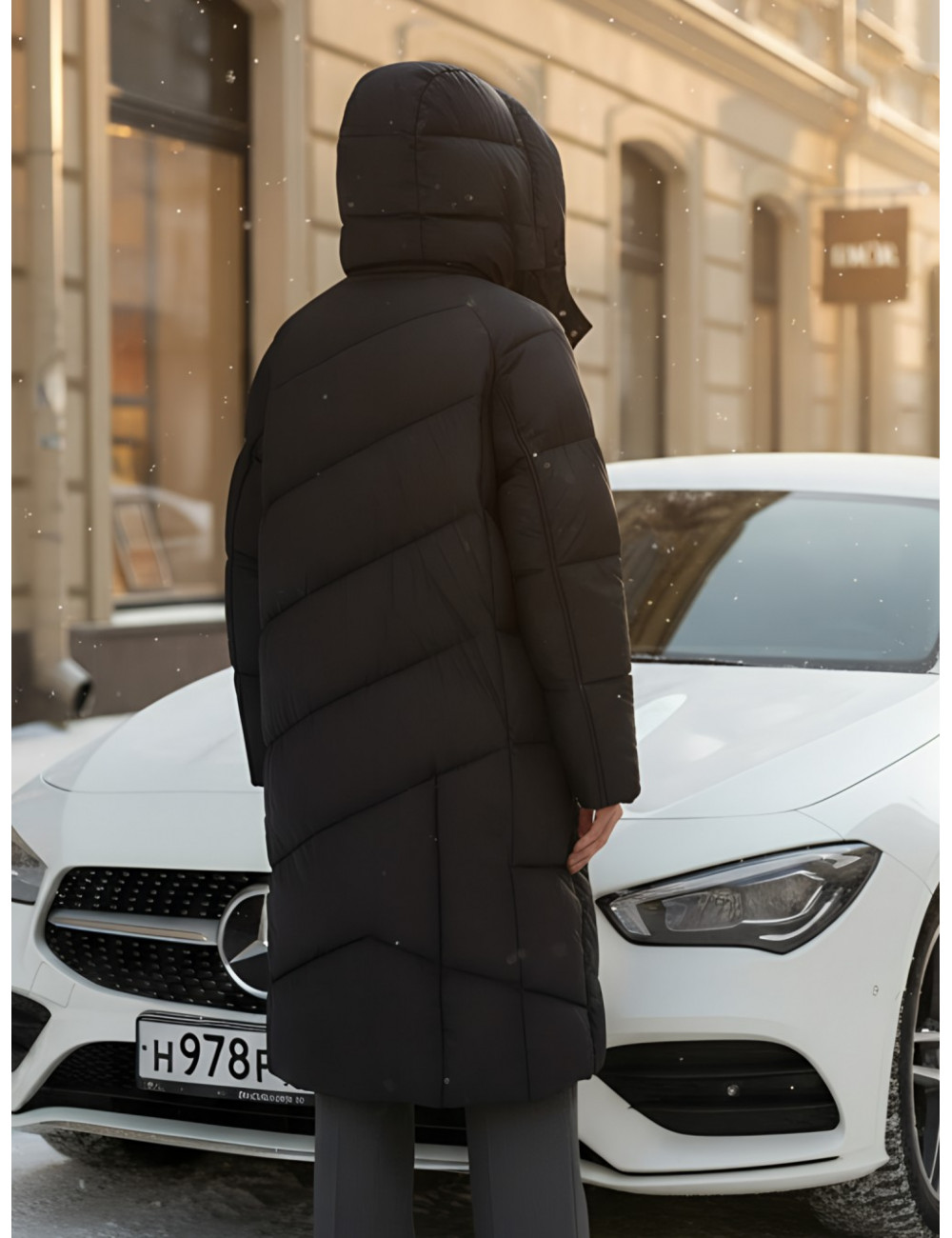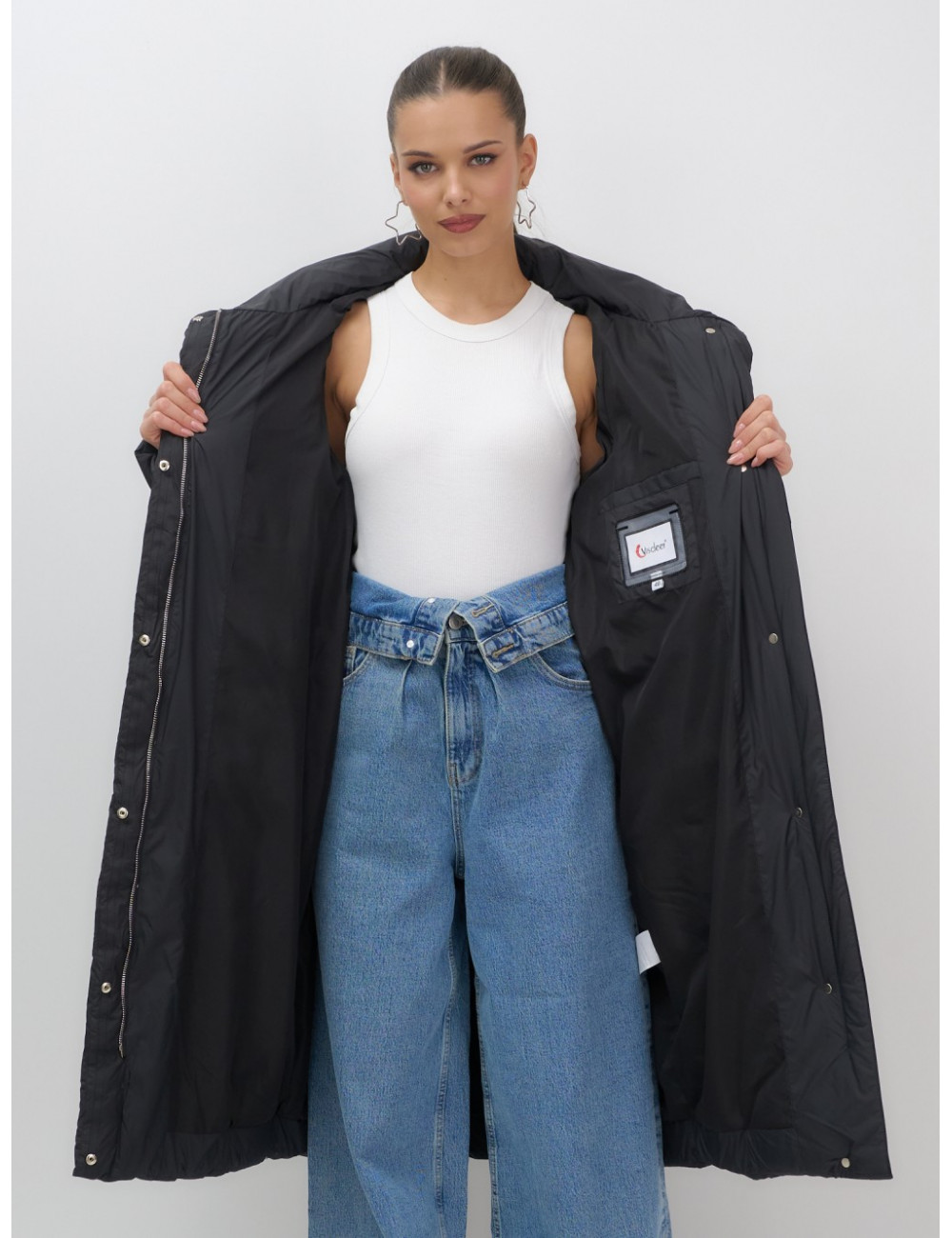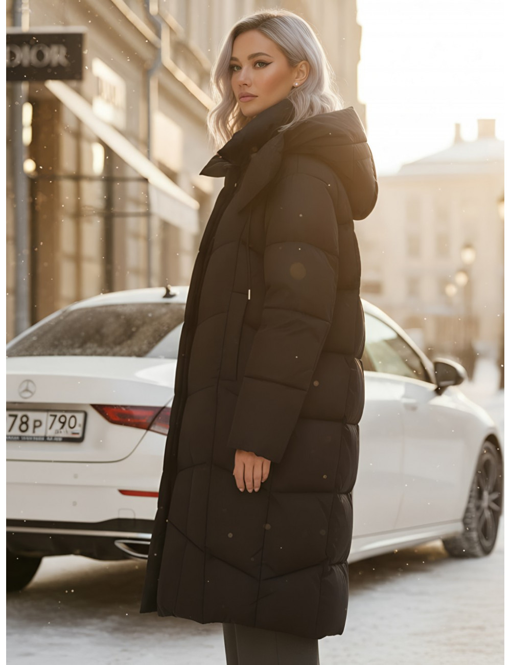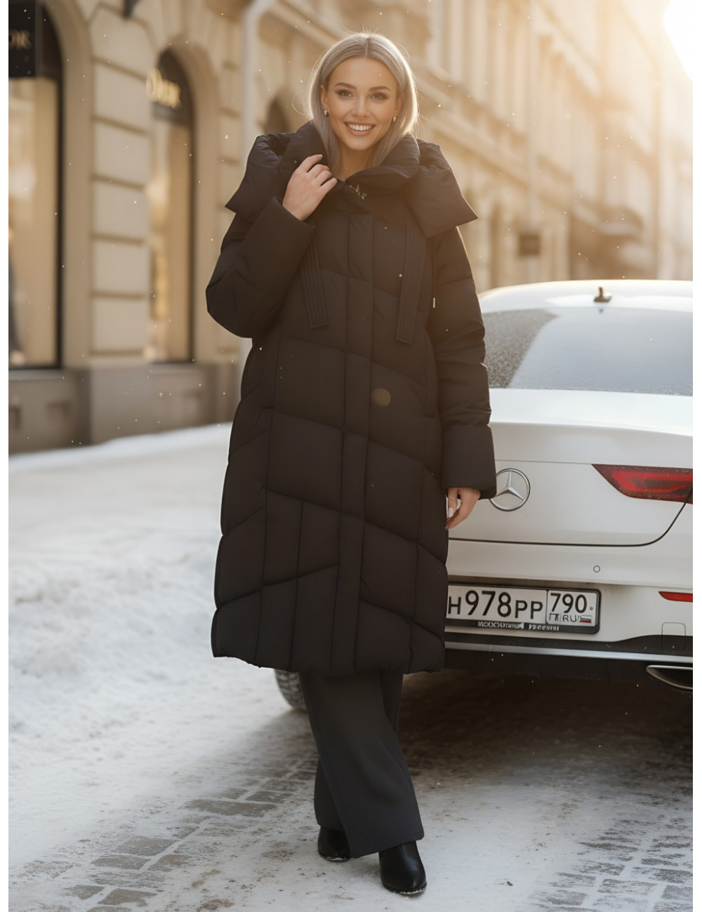 - Дизайн: элегантный и современный стиль подойдёт для любого случая — от офисных будней до повседневных выходов. Удлинённый крой ниже колена с прямым и свободным покроем создаёт эффект одеяла, что делает пуховик не только тёплым, но и невероятно уютным.