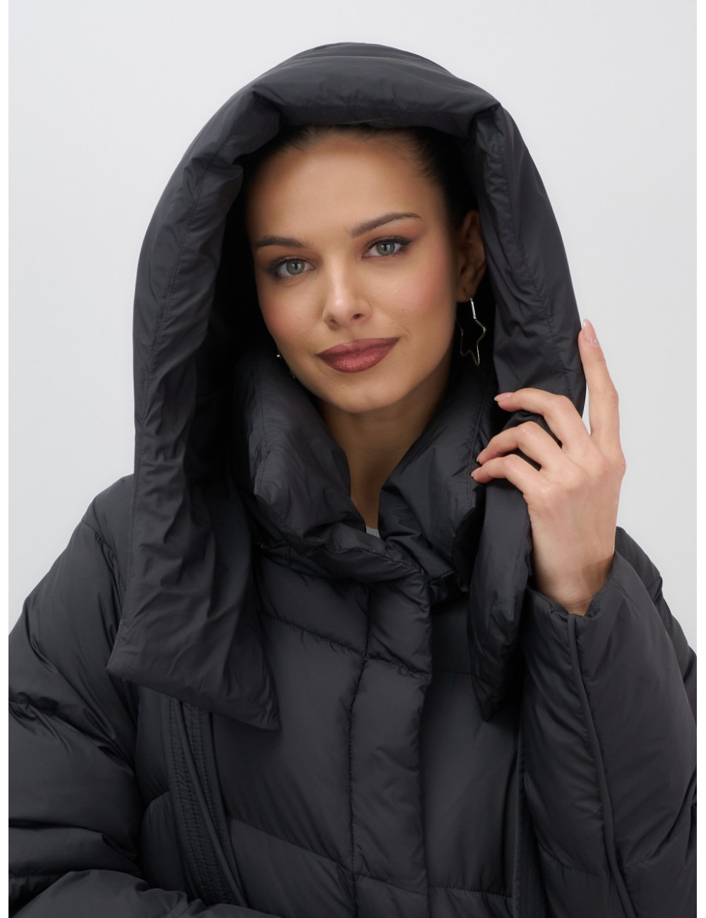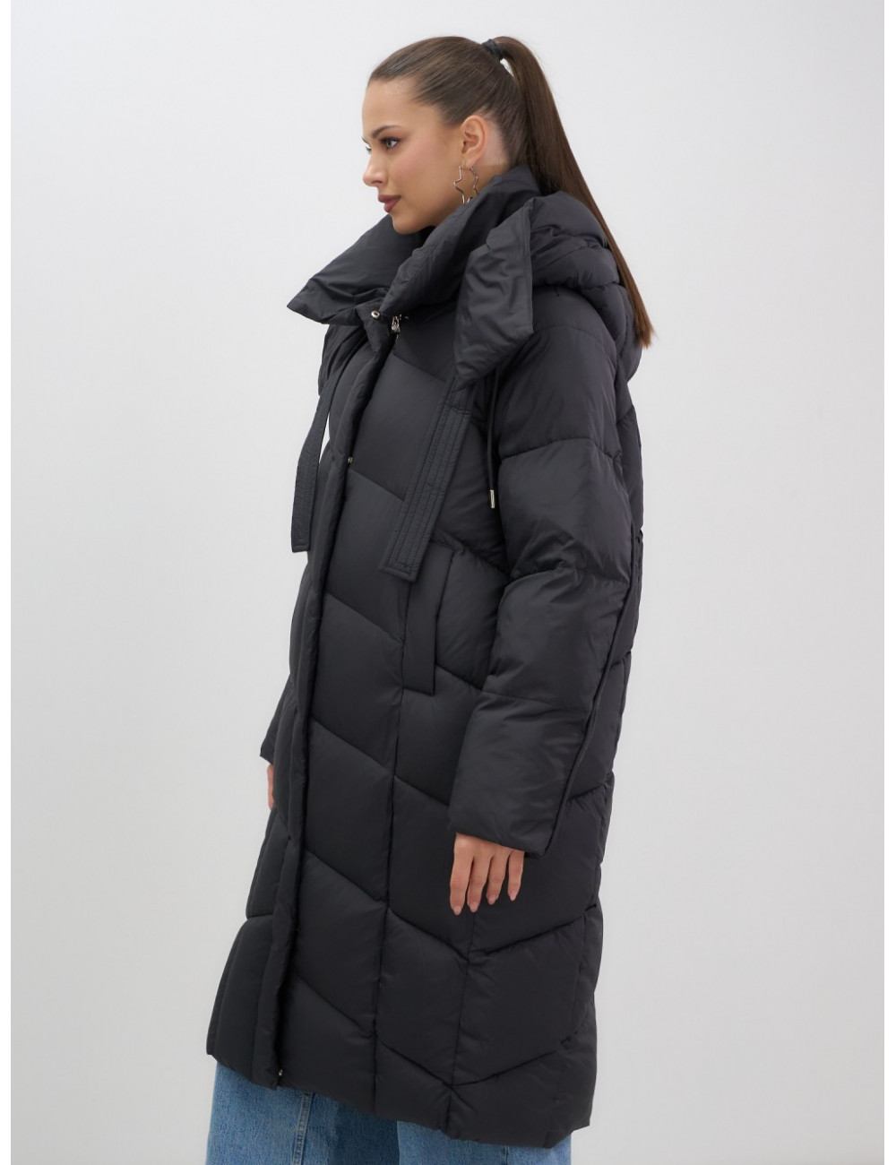 Длинный женский пуховик с капюшоном для зимы