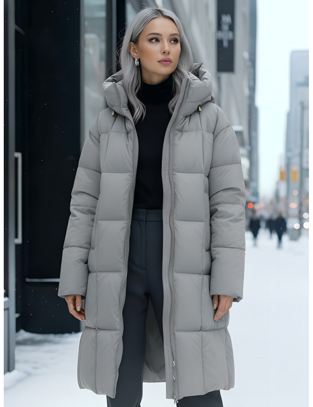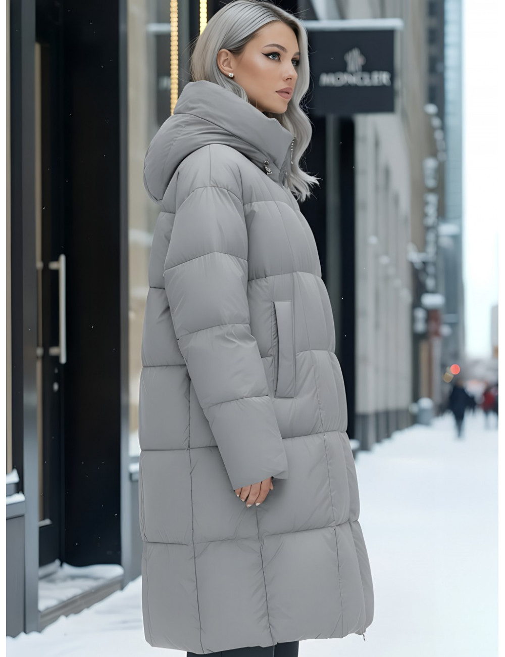 Не упустите возможность добавить этот универсальный пуховик в ваш гардероб! Заказывайте прямо сейчас и наслаждайтесь зимой в полной мере! Доставка Длинный женский пуховик с капюшоном, серый. по Тюмени и Тюменской области СДЭК