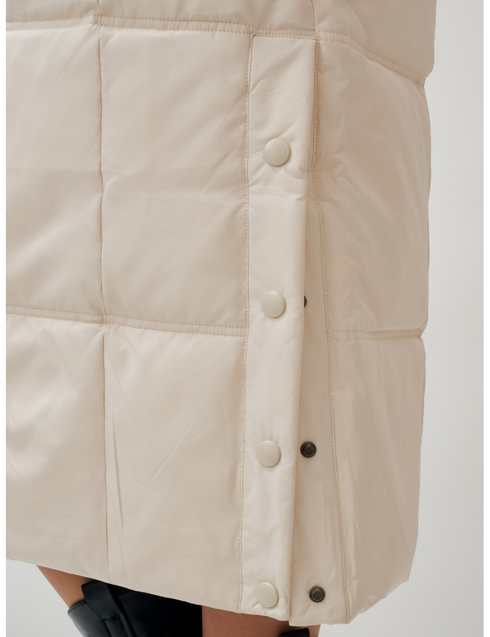Несъёмный регулируемый капюшон позволяет легко подстроить его под свои нужды, обеспечивая максимальный комфорт и тепло. Боковые прорези на кнопках (примерно 30–40 см) дают свободу движений и добавляют оригинальности вашему образу.