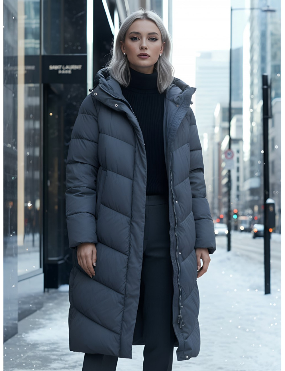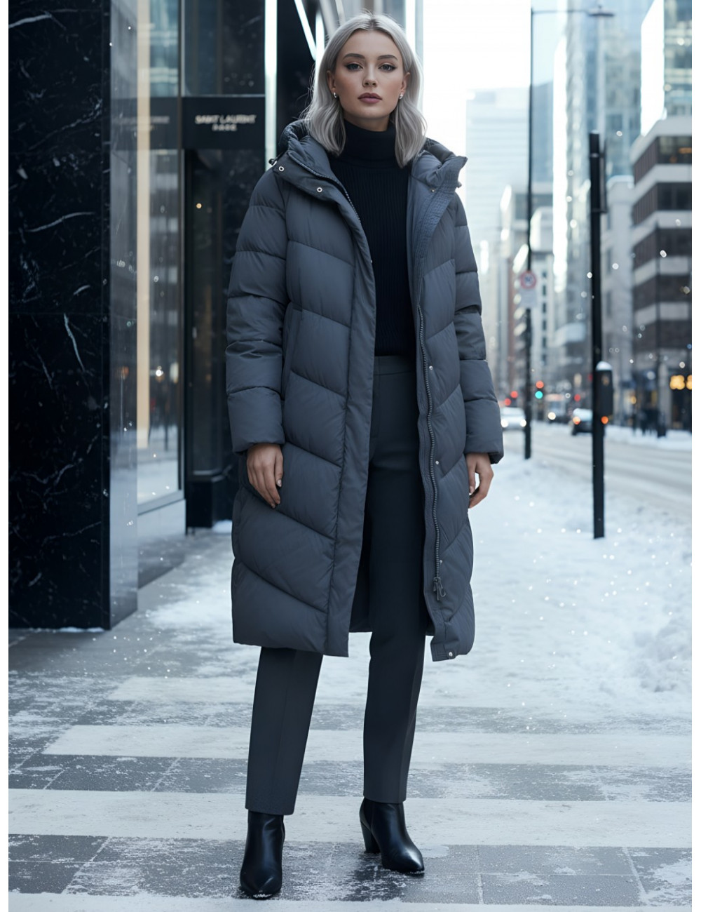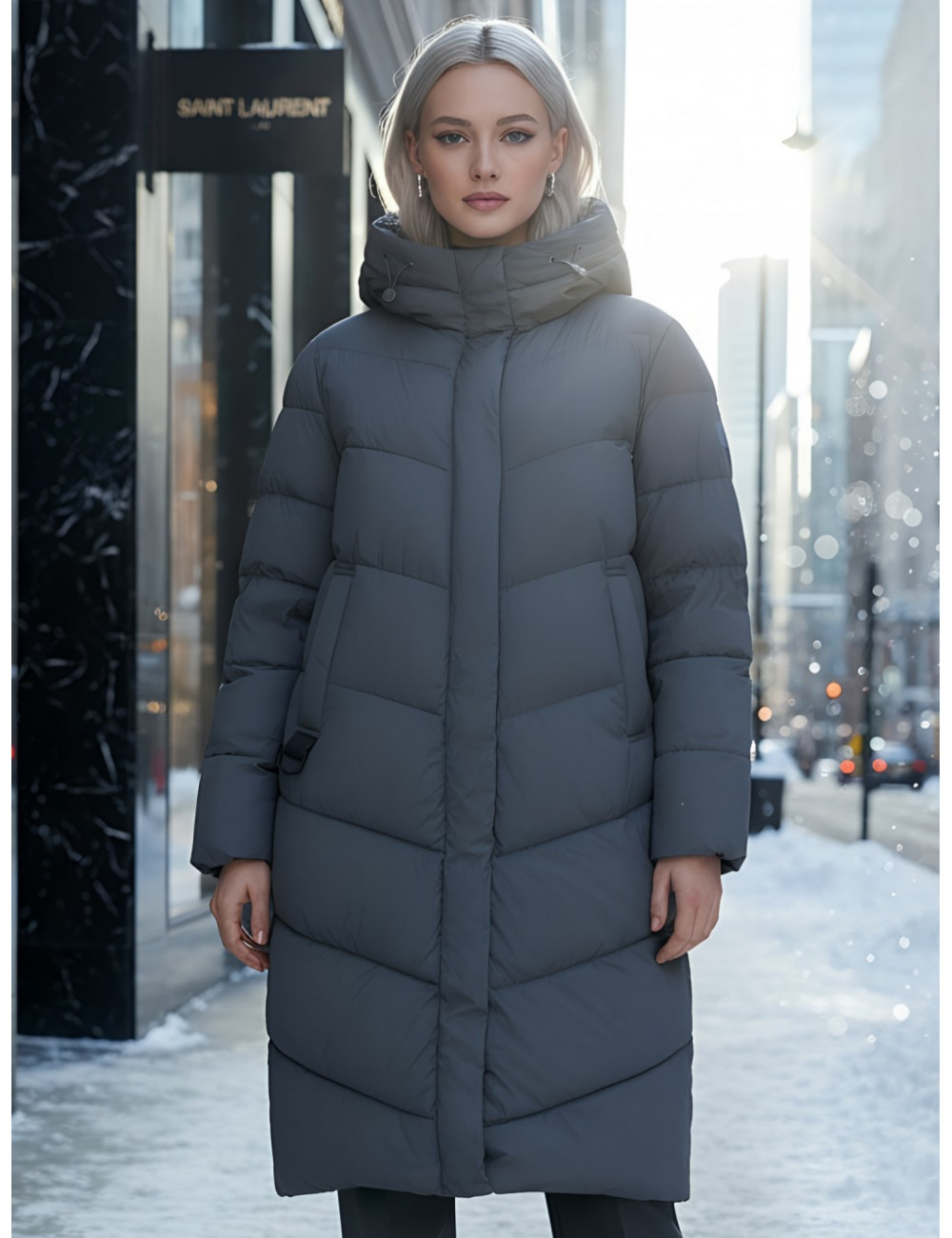 Не упустите возможность приобрести зимний утеплённый пуховик от Ketsi и оставайтесь в тренде этой осенью и зимой! Доставка Длинный женский пуховик с капюшоном, тёмно-серый. по Тюмени и Тюменской области СДЭК