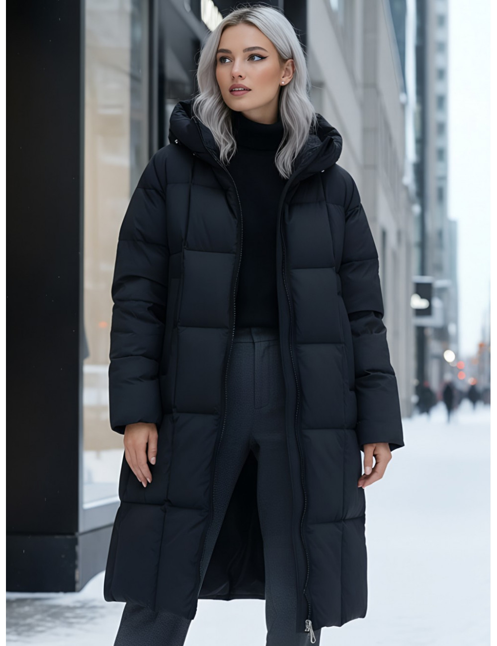 Позвольте себе наслаждаться зимой в полной мере с пуховиком от Ketsi! Доставка Длинный пуховик женский чёрный утеплённый с капюшоном. по Тюмени и Тюменской области СДЭК