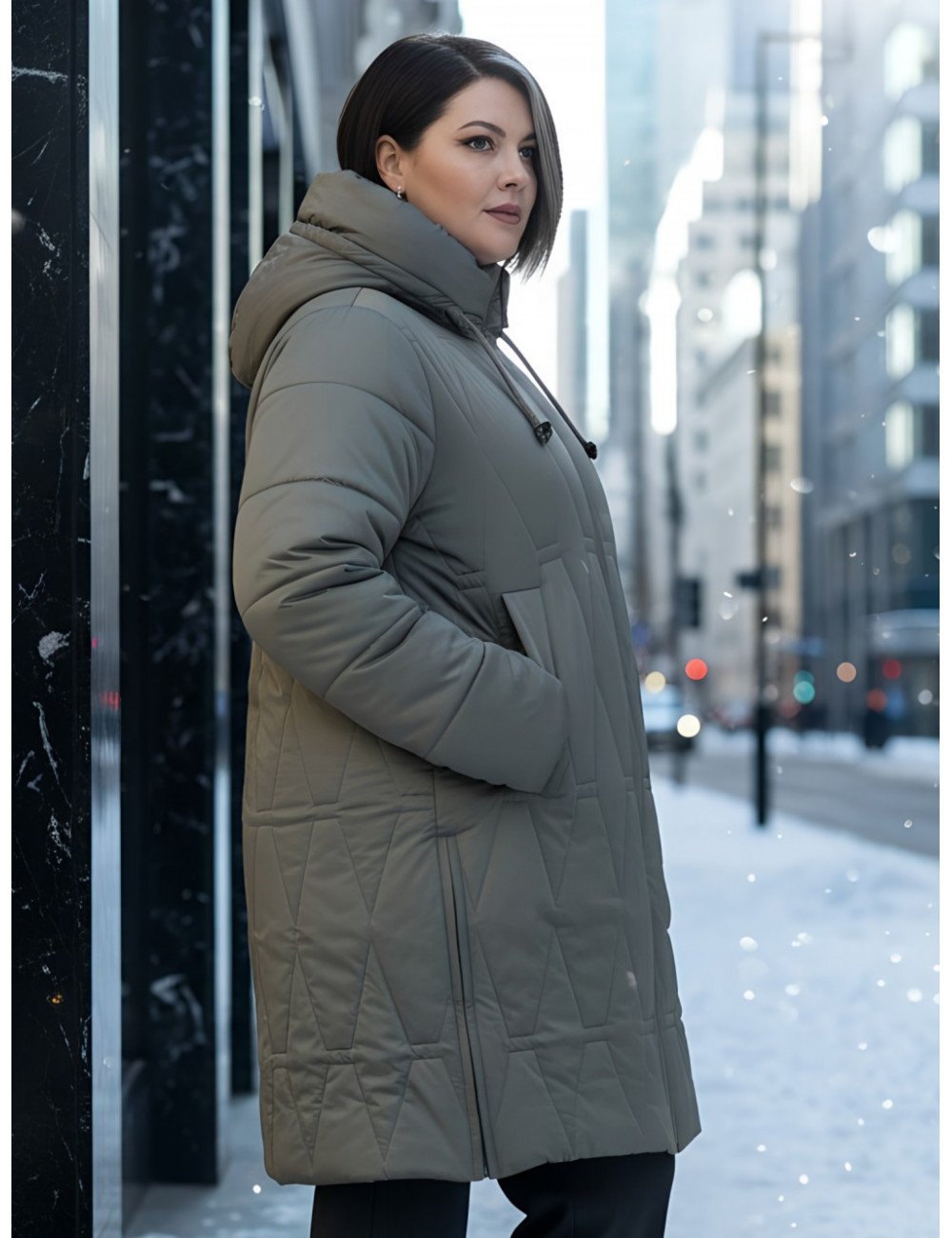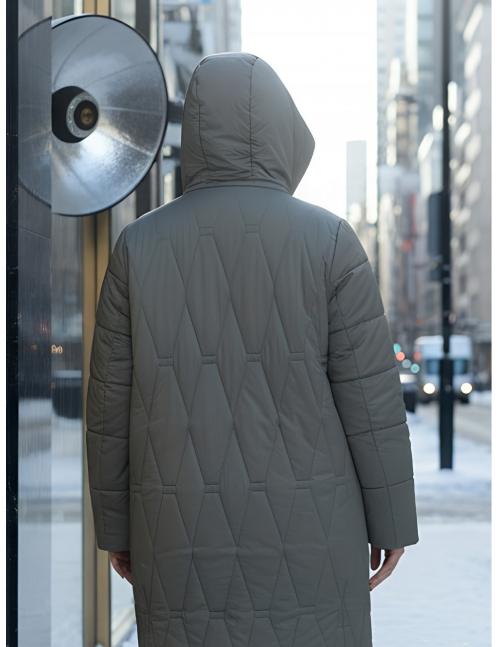 Зимний утеплённый пуховик от Ketsi — это идеальный выбор для тех, кто ценит комфорт и стиль в холодное время года. Свободный крой и удлинённая длина до колена создают стильный силуэт, а капюшон с фиксатором защищает от ветра.
