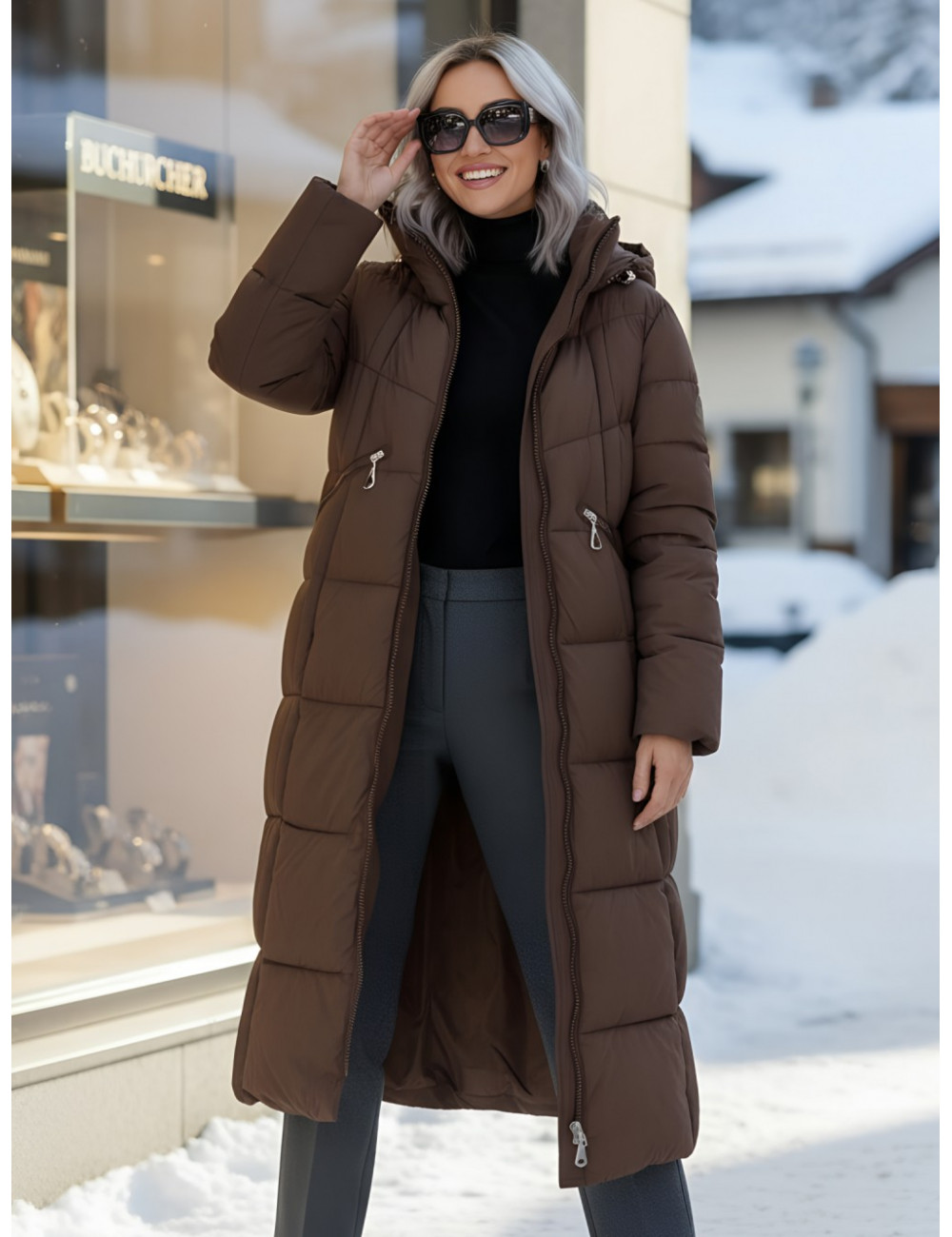 Не упустите возможность стать обладательницей этого стильного и тёплого пуховика от Ketsi! Он обеспечит вам тепло и защиту в любую погоду, позволяя вам оставаться в тренде. Закажите сейчас и наслаждайтесь качеством и комфортом в холодные дни! Доставка Длинный пуховик для женщин коричневый утеплённый с капюшоном по Тюмени и Тюменской области СДЭК