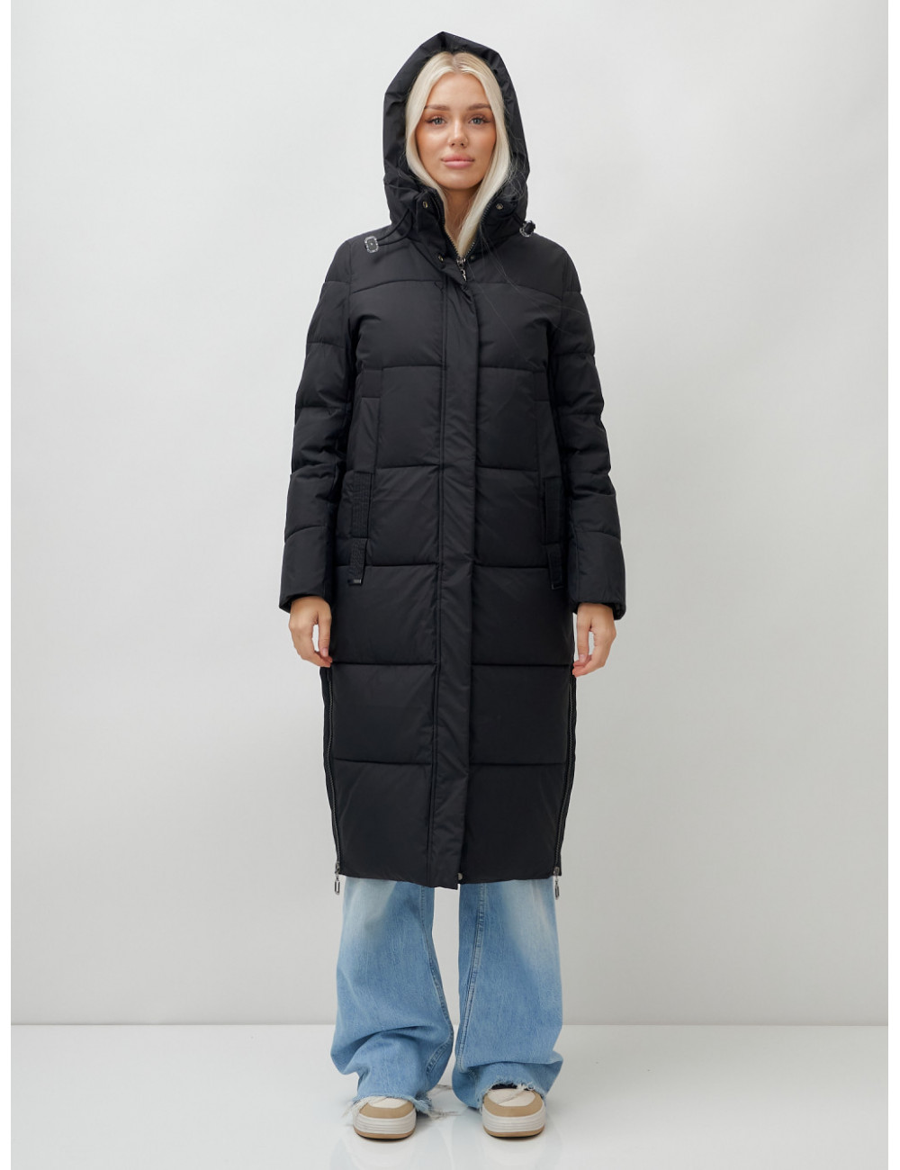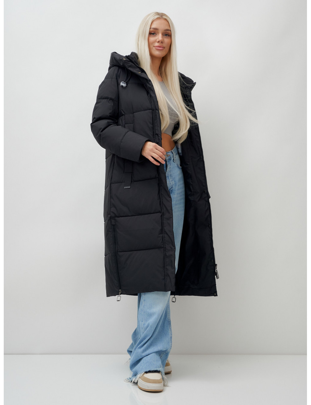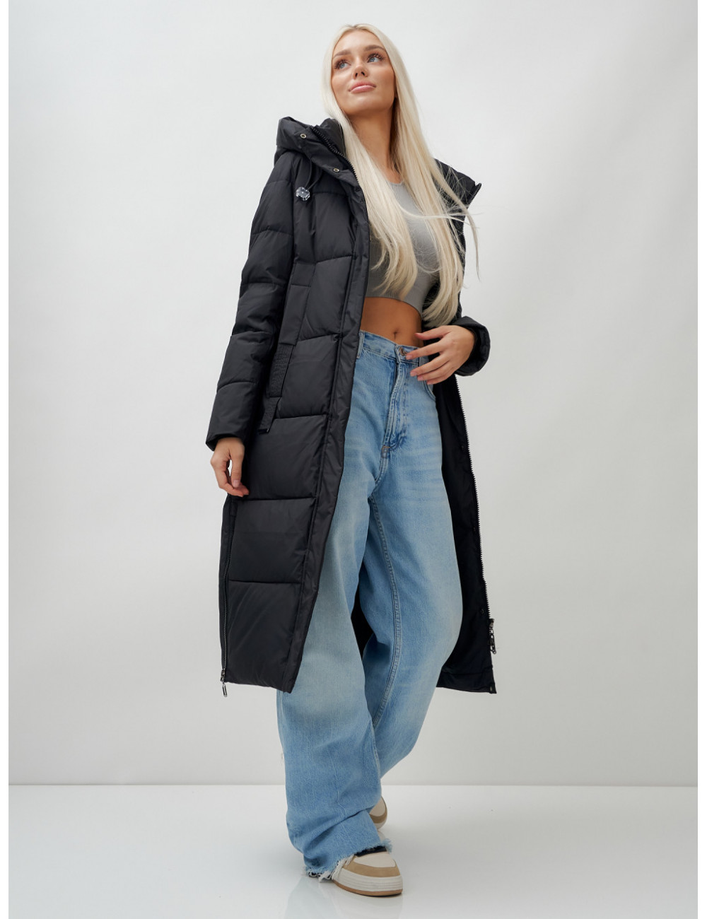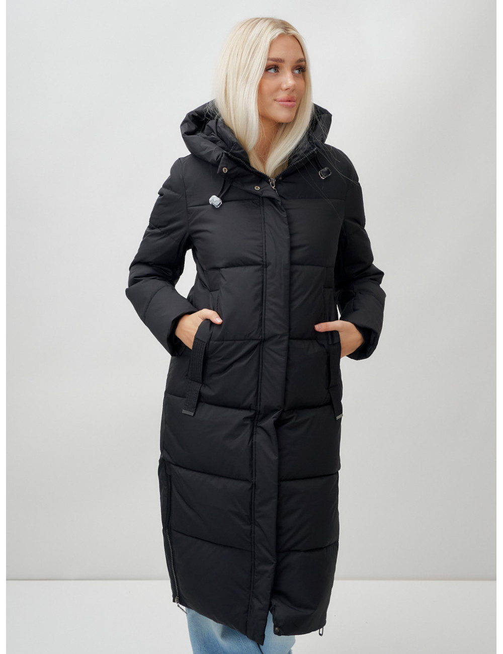 Доставка Длинный пуховик женский чёрный утеплённый с капюшоном. по Тюмени и Тюменской области СДЭК