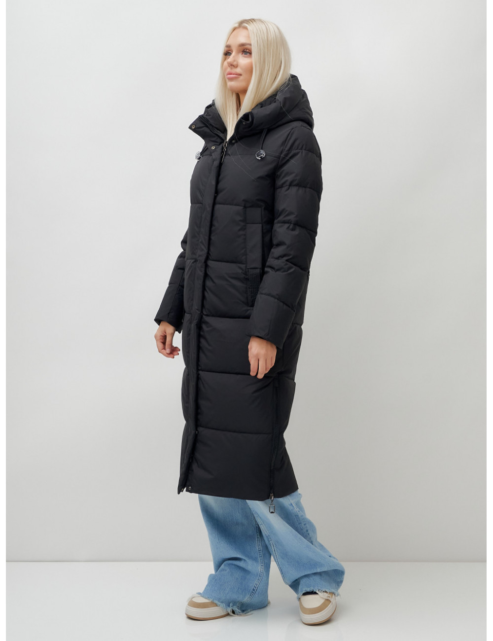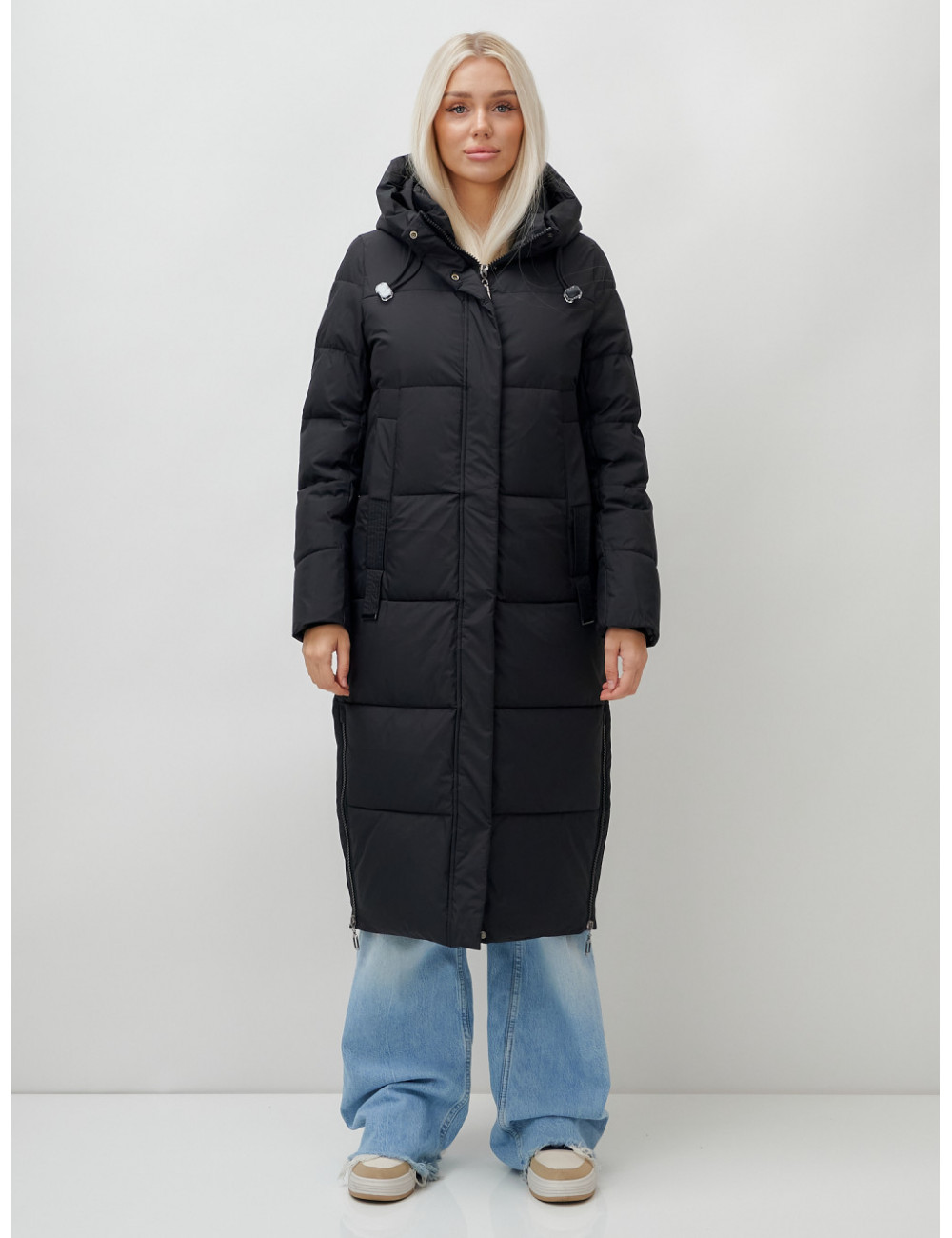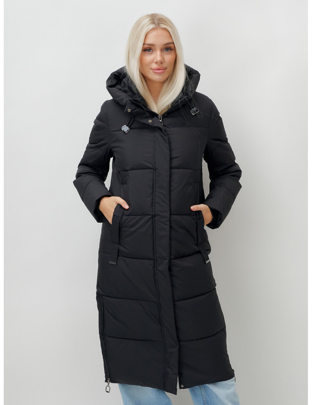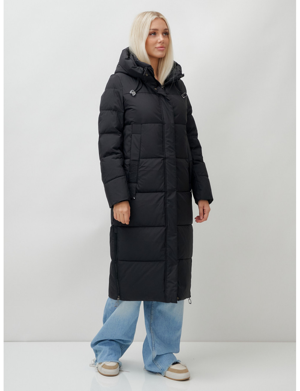 Доставка Длинный пуховик женский чёрный утеплённый с капюшоном. по Тюмени и Тюменской области СДЭК