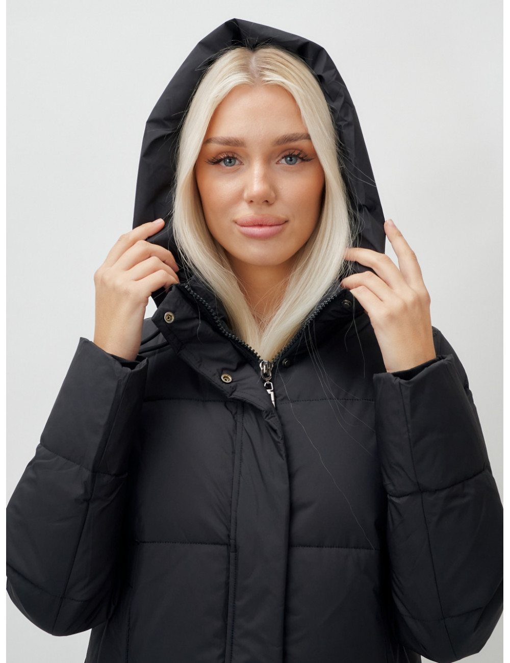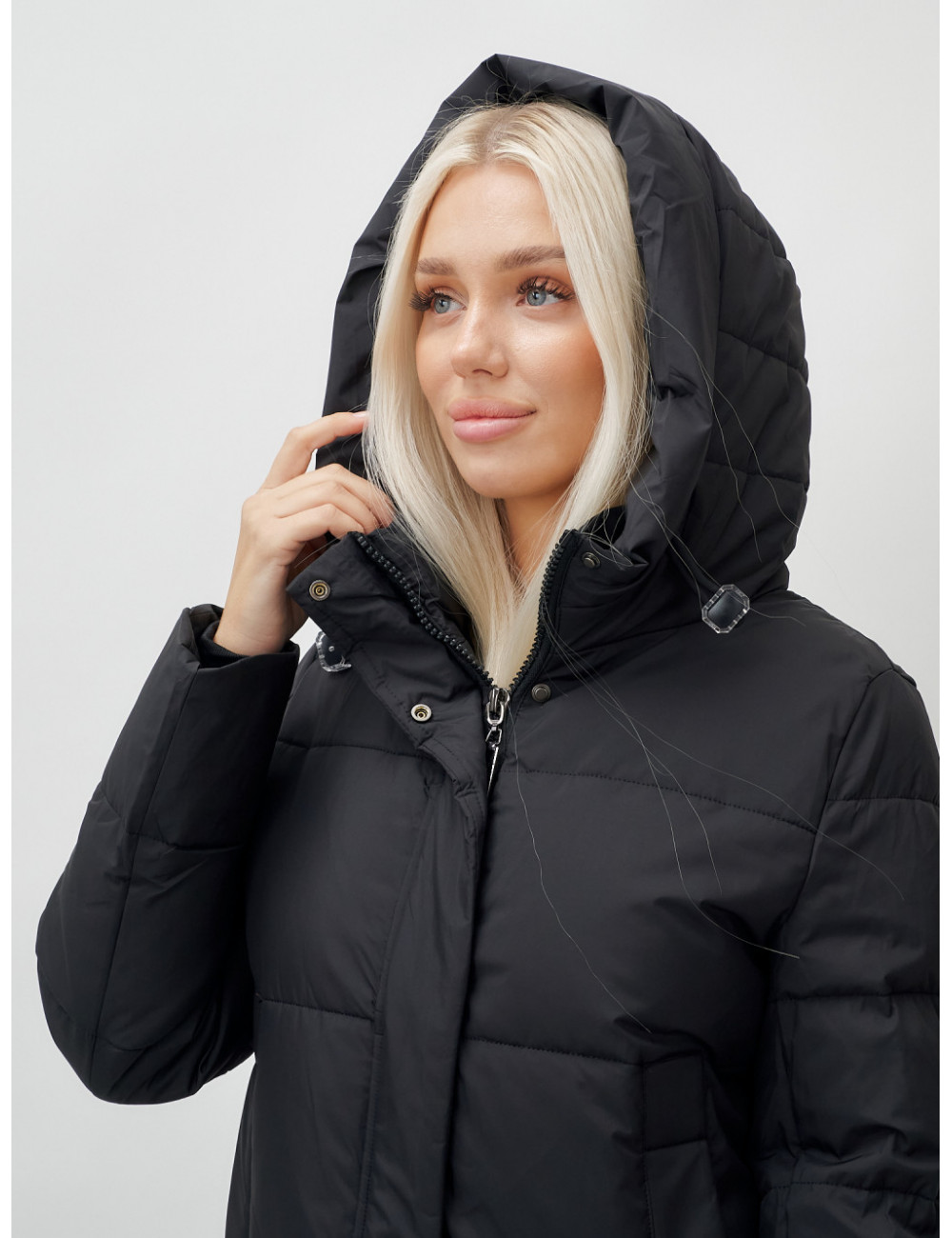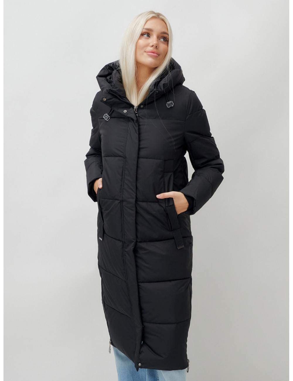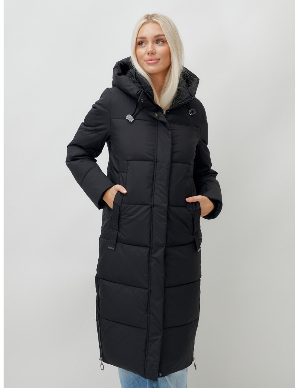 Доставка Длинный пуховик женский чёрный утеплённый с капюшоном. по Тюмени и Тюменской области СДЭК