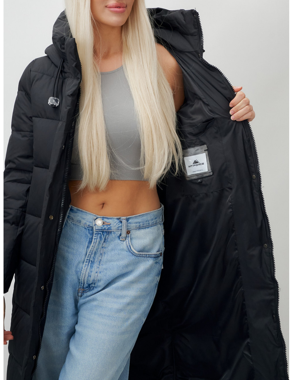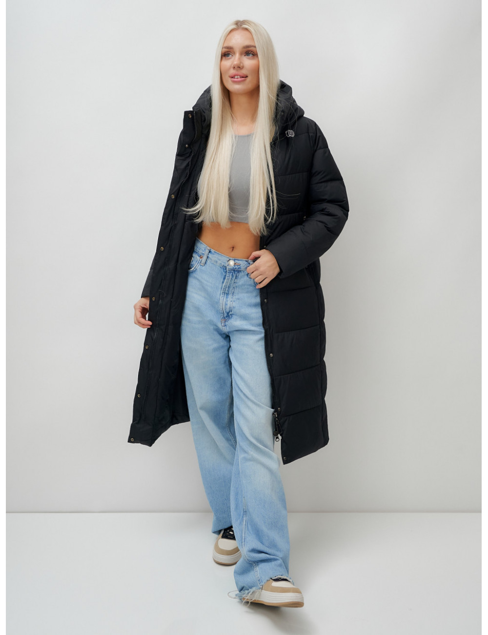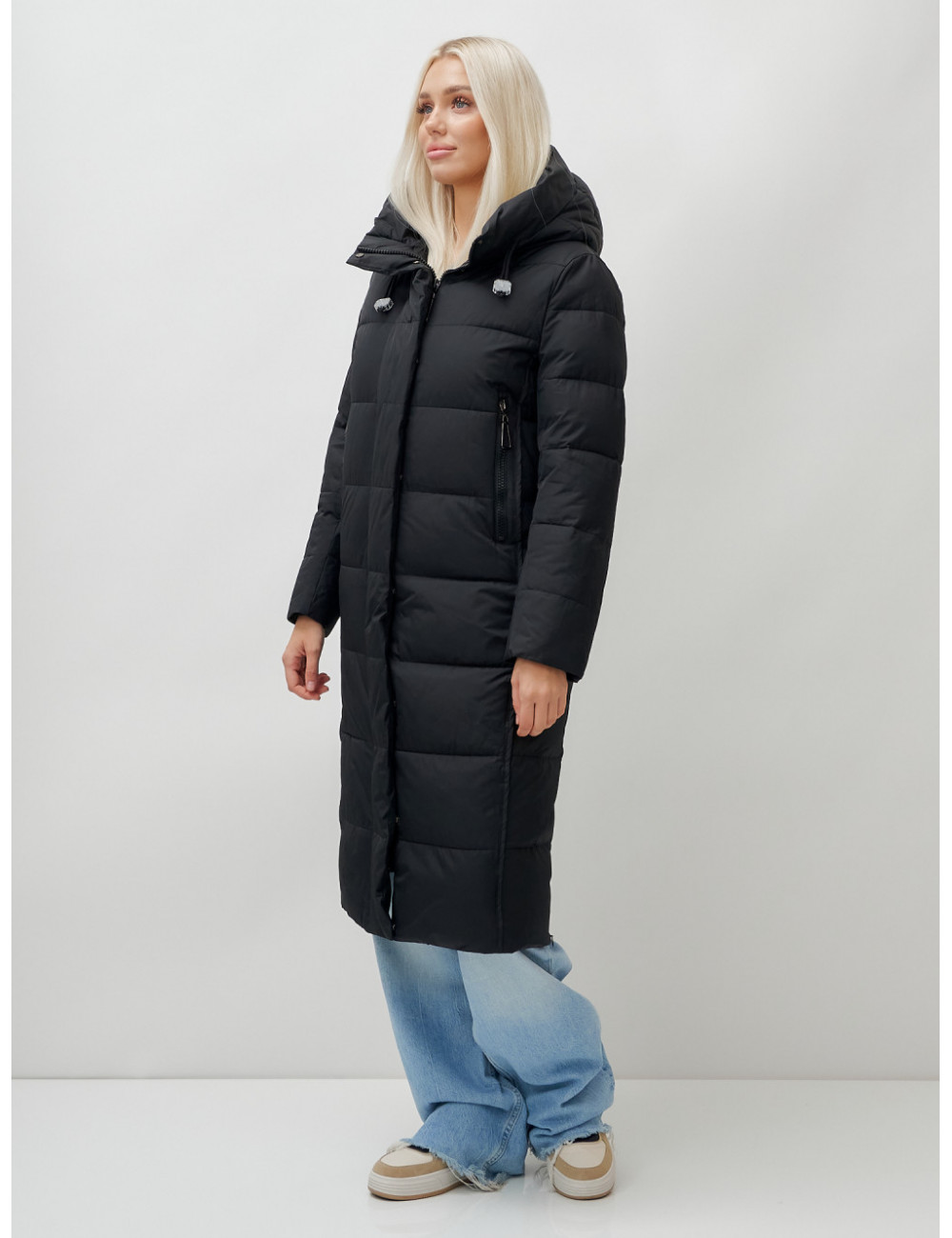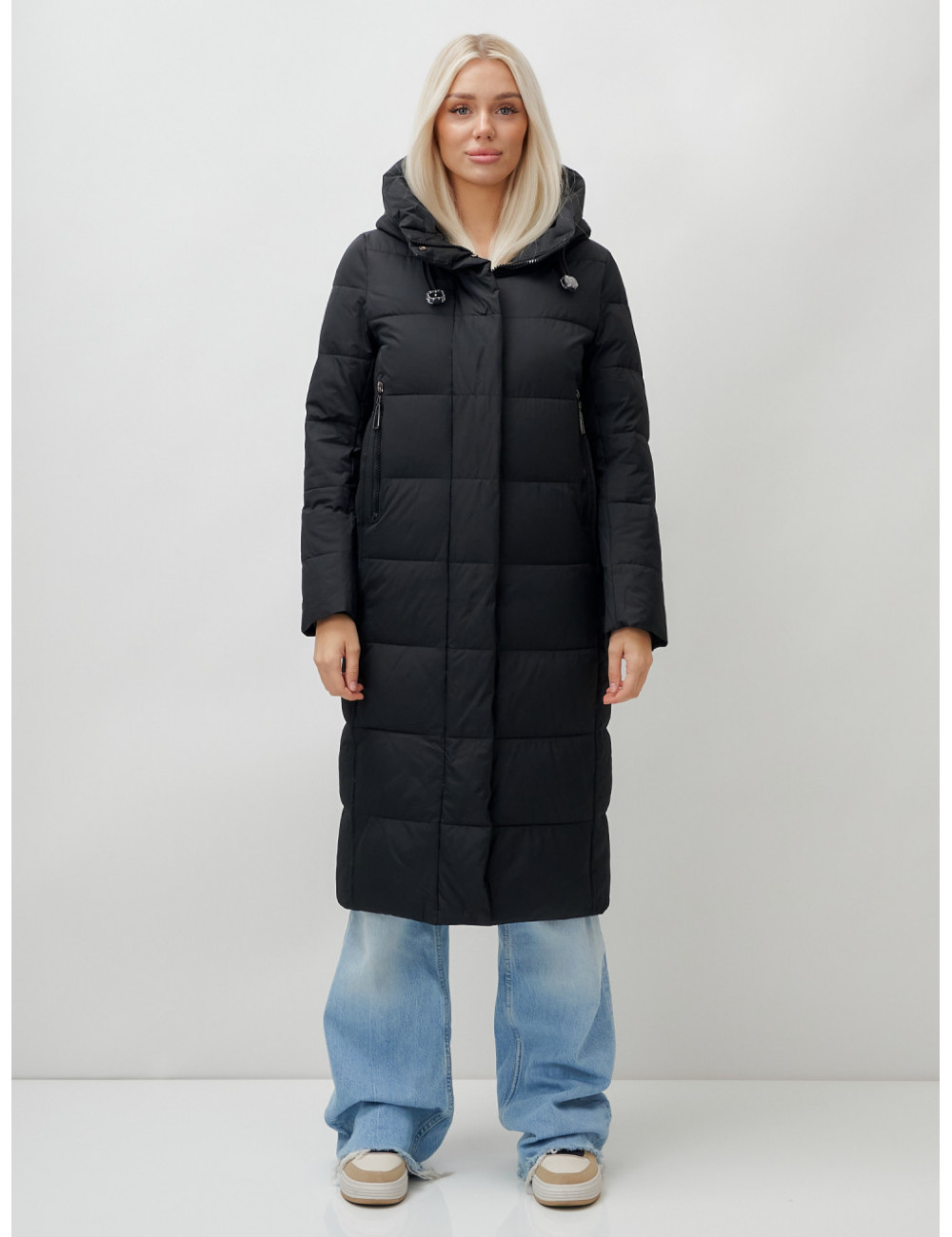 Прямой покрой, боковой разрез на молнии, трикотажные манжеты и утеплённые карманы делают пуховик удобным и практичным. Доставка Длинный пуховик женский утеплённый с капюшоном, чёрный по Тюмени и Тюменской области СДЭК
