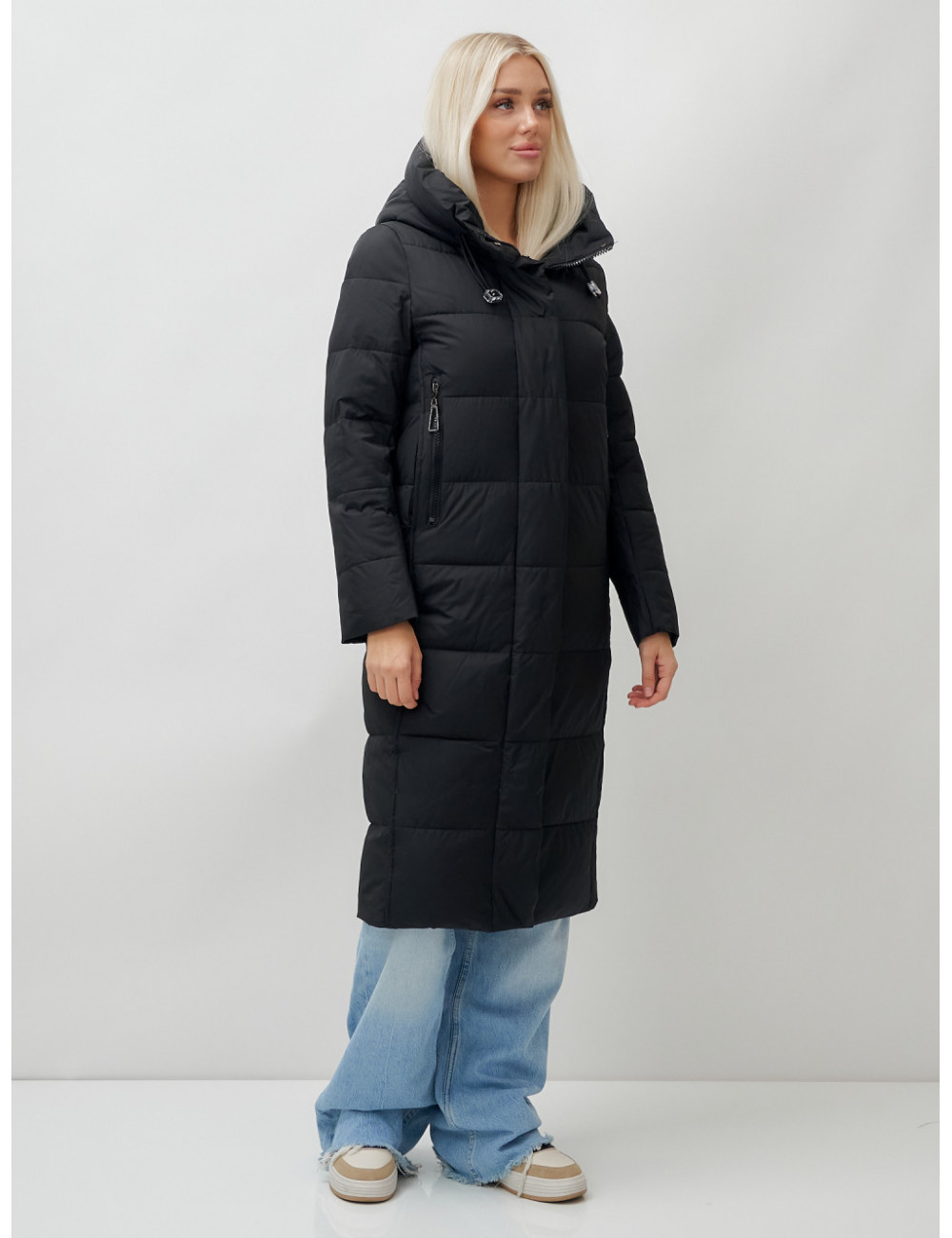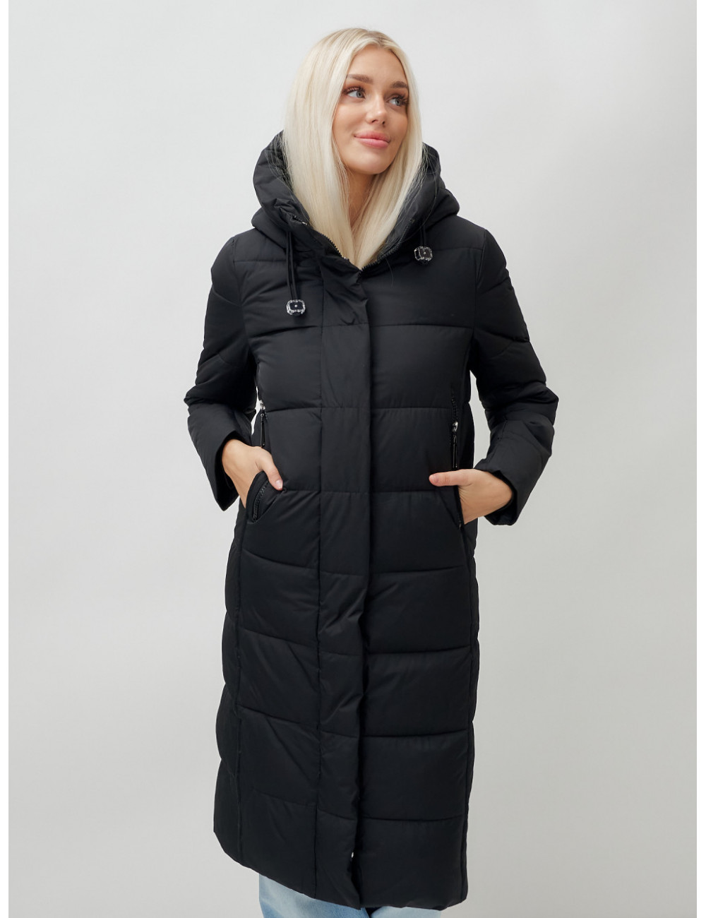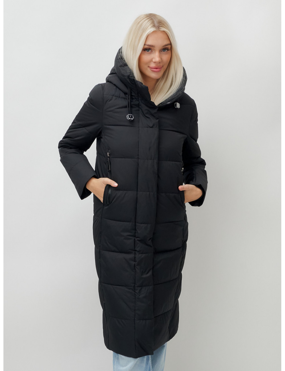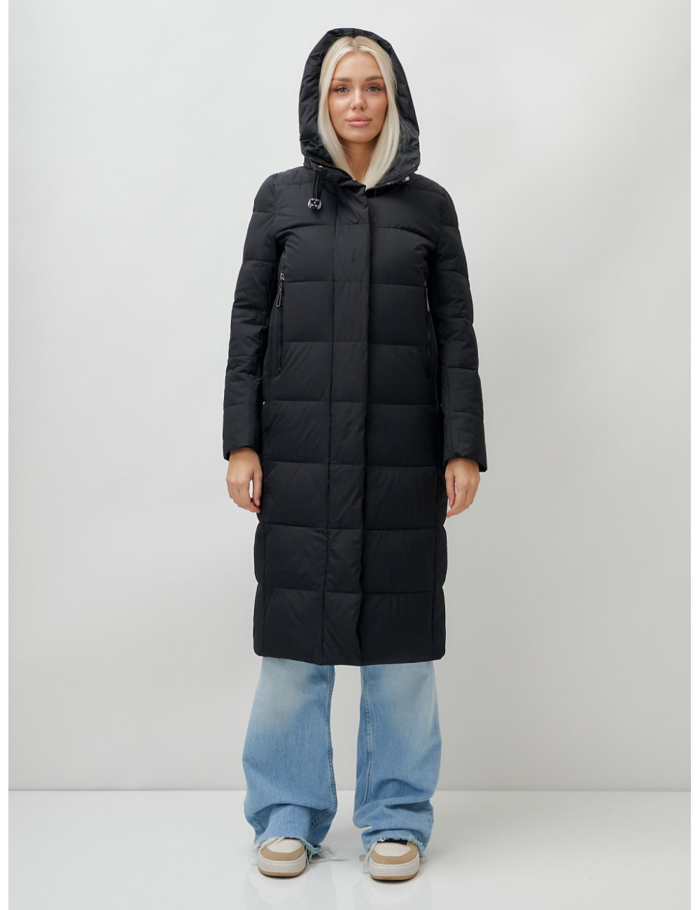 Прямой покрой, боковой разрез на молнии, трикотажные манжеты и утеплённые карманы делают пуховик удобным и практичным. Доставка Длинный пуховик женский утеплённый с капюшоном, чёрный по Тюмени и Тюменской области СДЭК