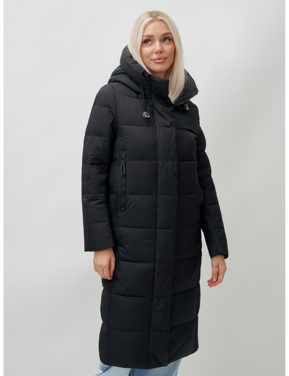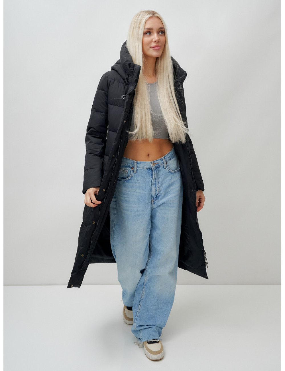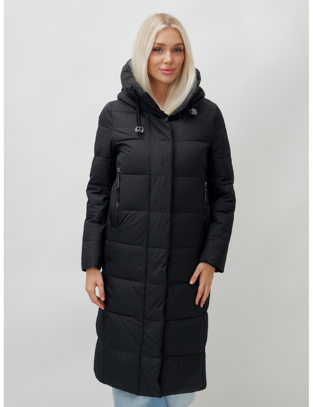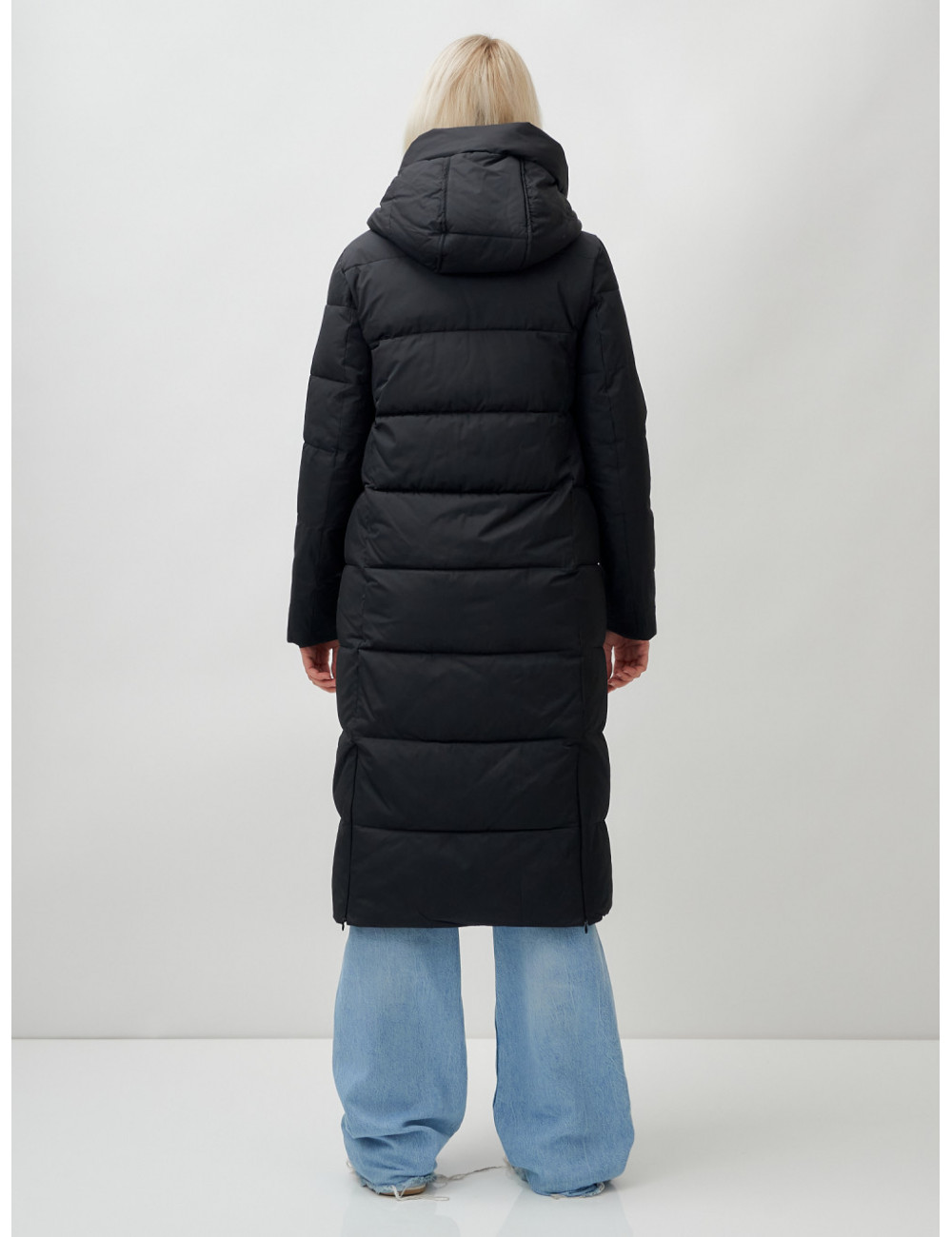 Прямой покрой, боковой разрез на молнии, трикотажные манжеты и утеплённые карманы делают пуховик удобным и практичным. Доставка Длинный пуховик женский утеплённый с капюшоном, чёрный по Тюмени и Тюменской области СДЭК