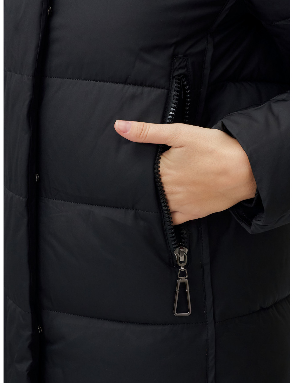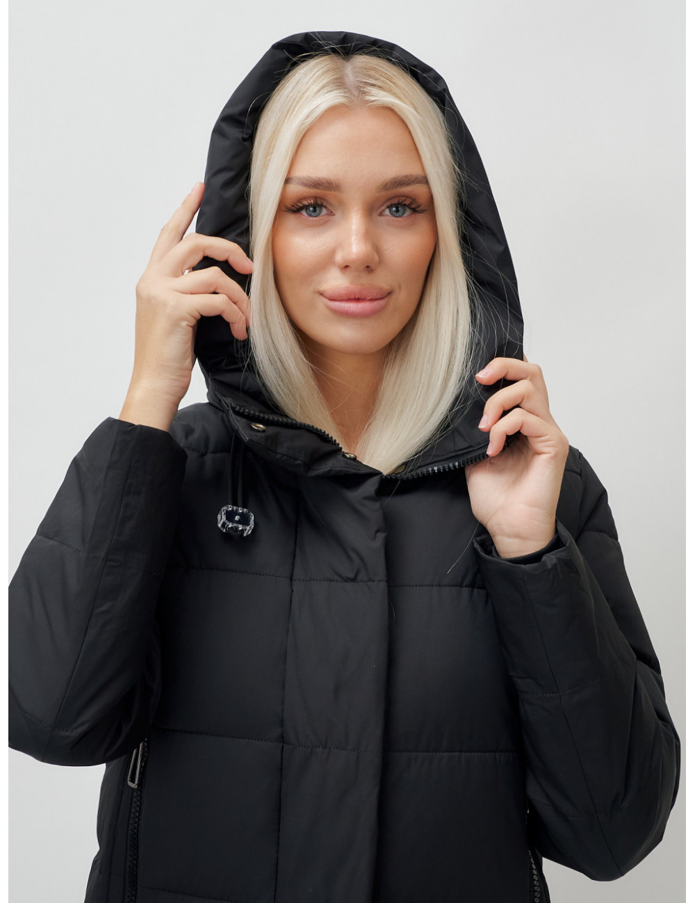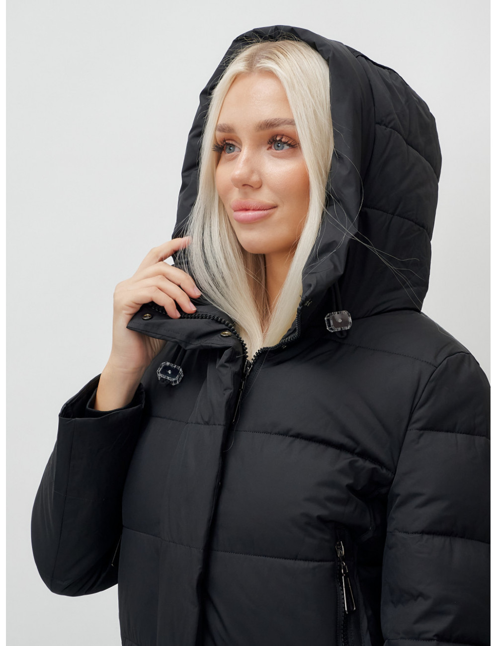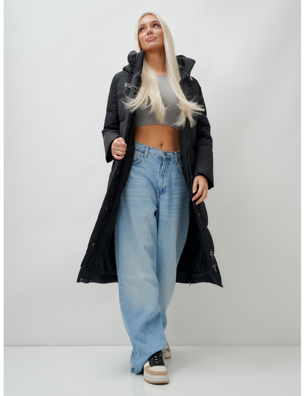 Прямой покрой, боковой разрез на молнии, трикотажные манжеты и утеплённые карманы делают пуховик удобным и практичным. Доставка Длинный пуховик женский утеплённый с капюшоном, чёрный по Тюмени и Тюменской области СДЭК