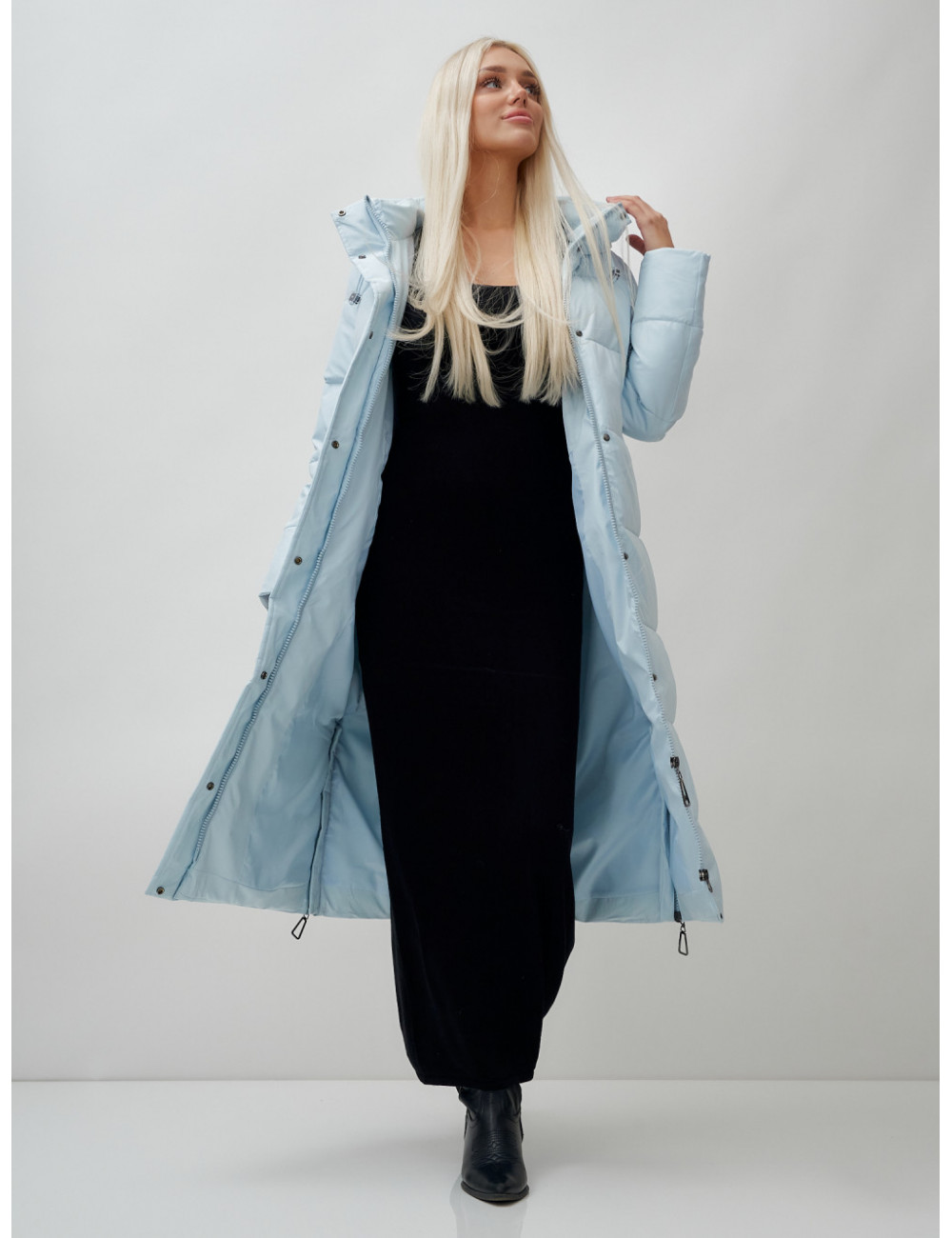 Длинный пуховик от Ketsi станет вашим надёжным спутником в холодное время года. Будьте стильными и защищёнными с нашим уникальным предложением — комфорт и элегантность теперь всегда с вами! Доставка Длинный пуховик женский голубой с капюшоном зимний утеплённый стёганый по Тюмени и Тюменской области СДЭК