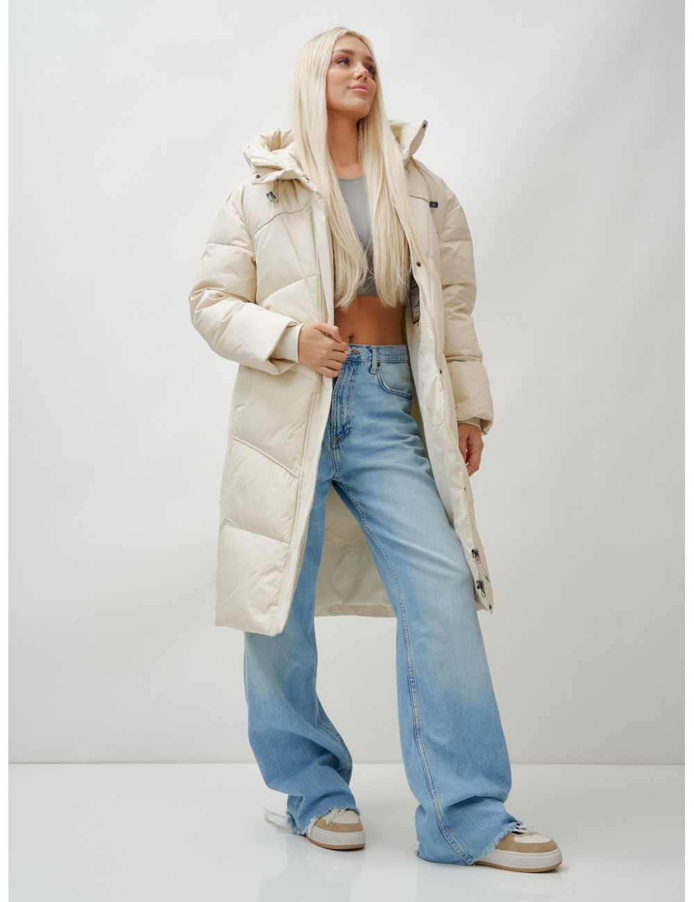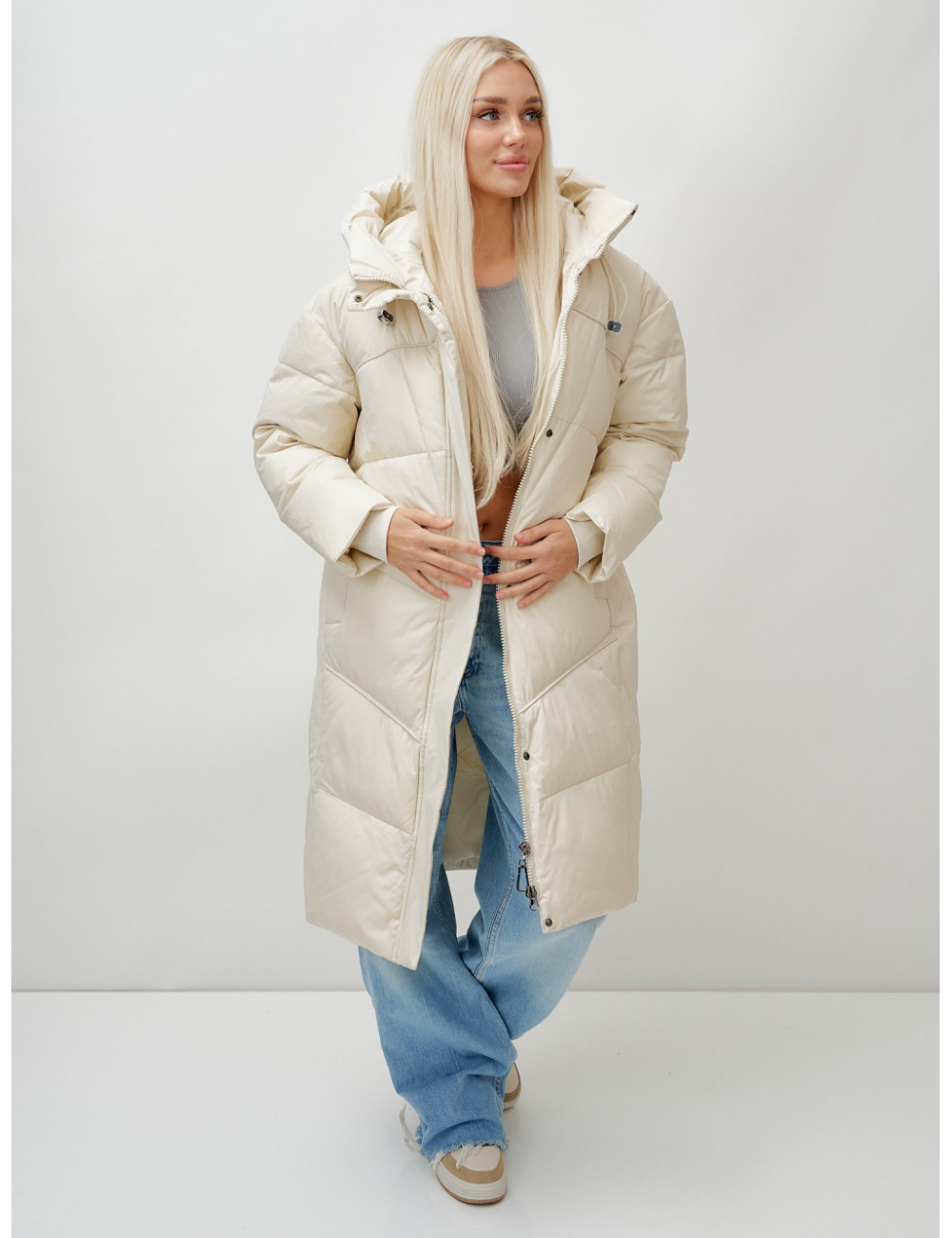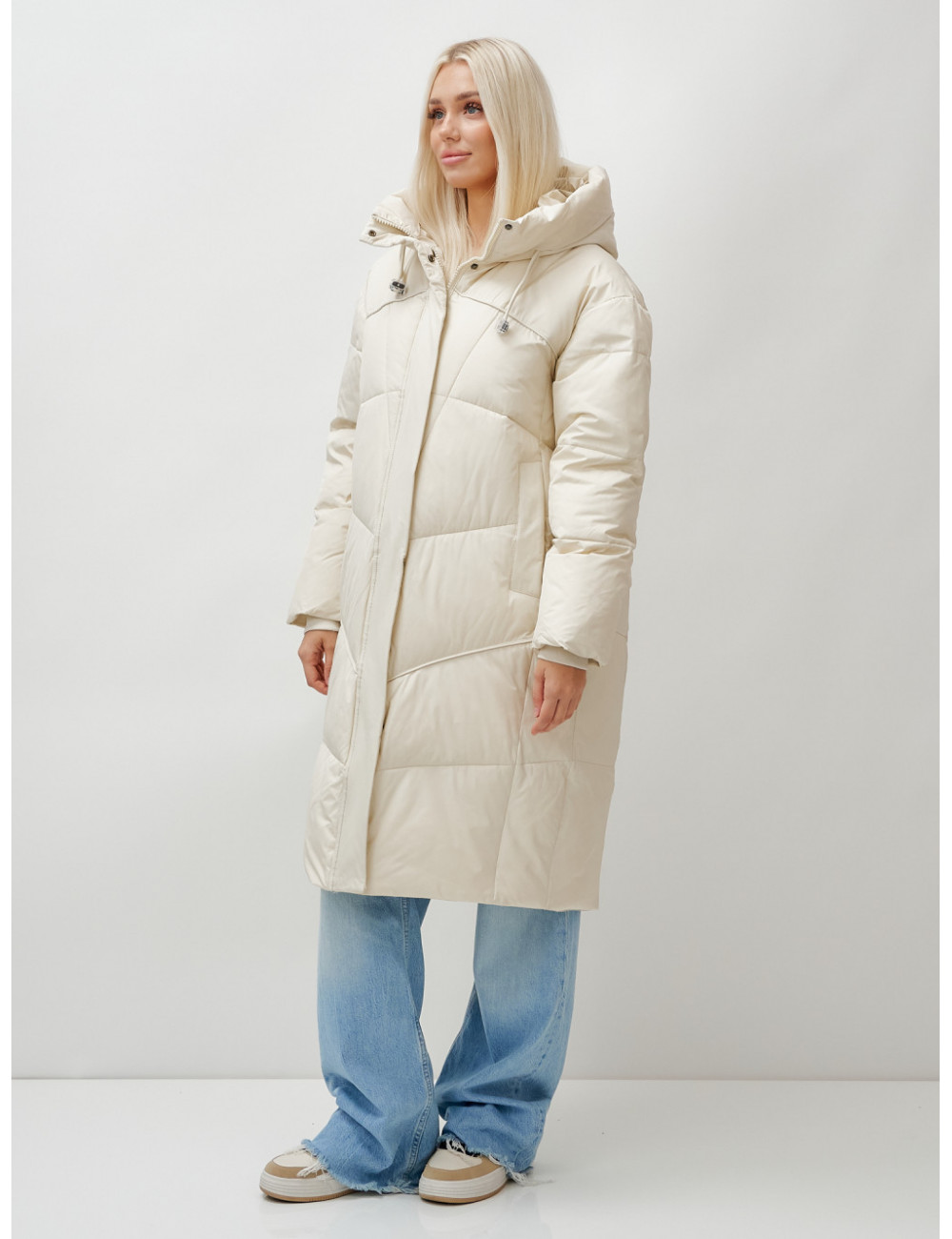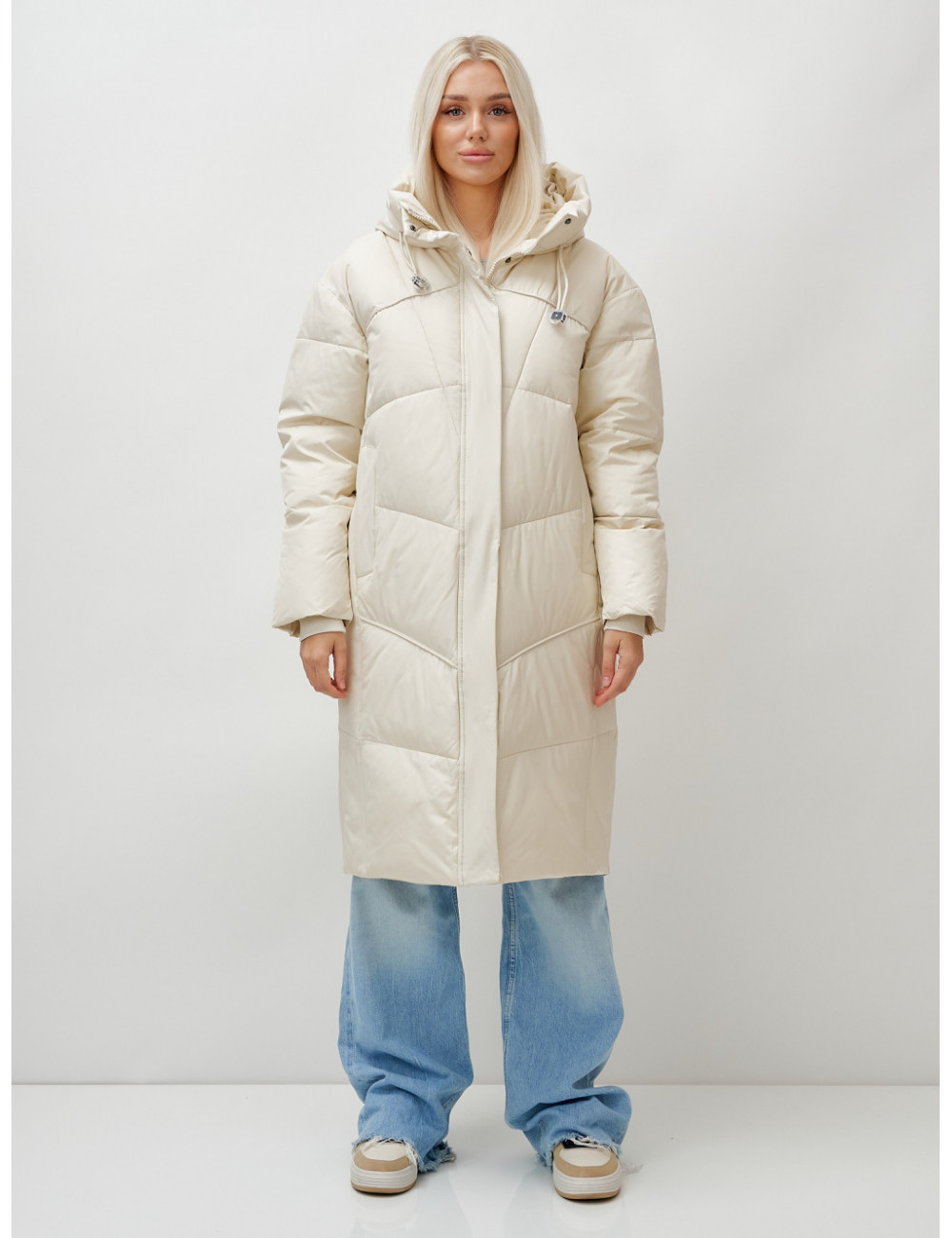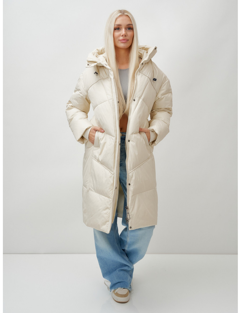Доставка Длинный женский пуховик с капюшоном, бежевый. по Тюмени и Тюменской области СДЭК