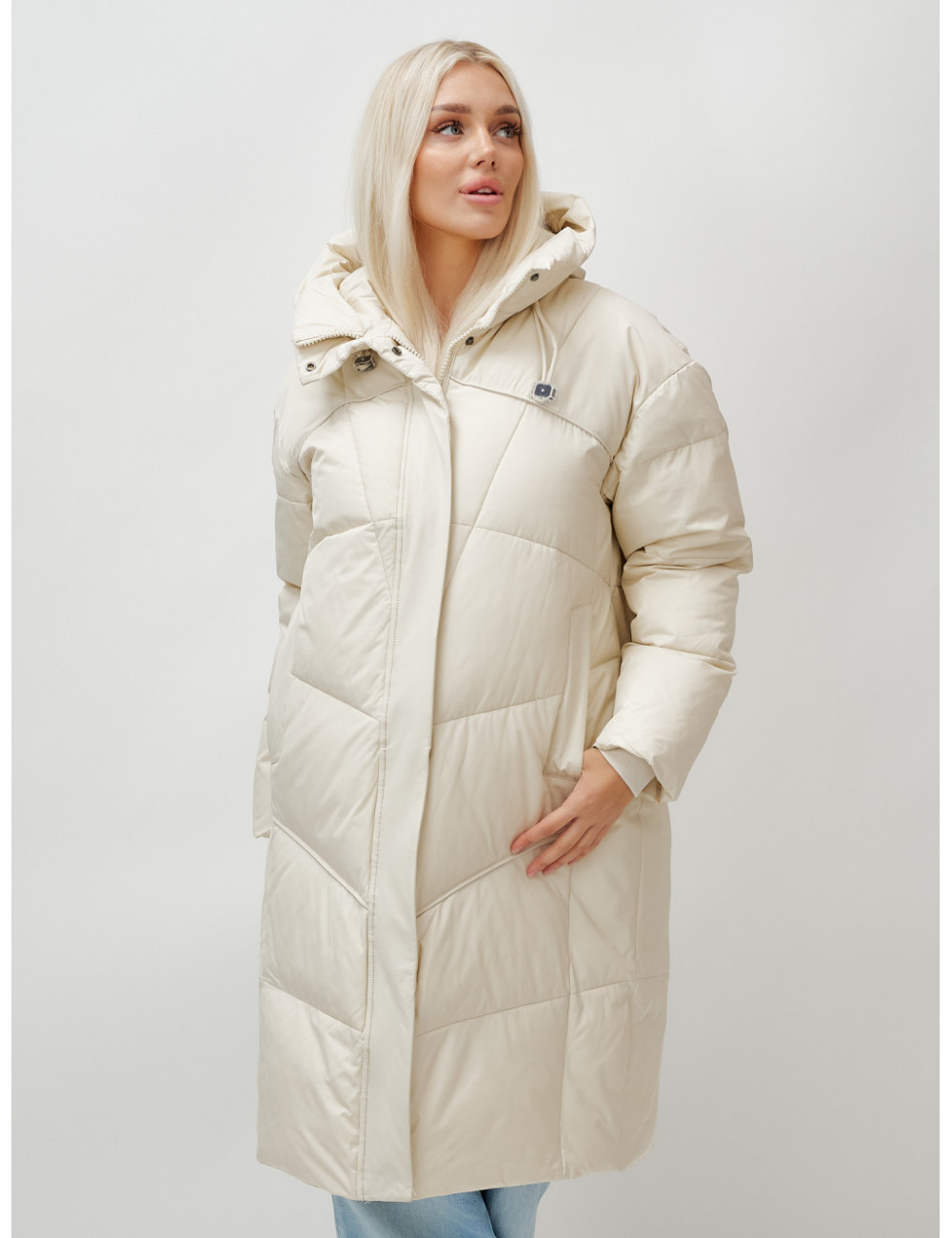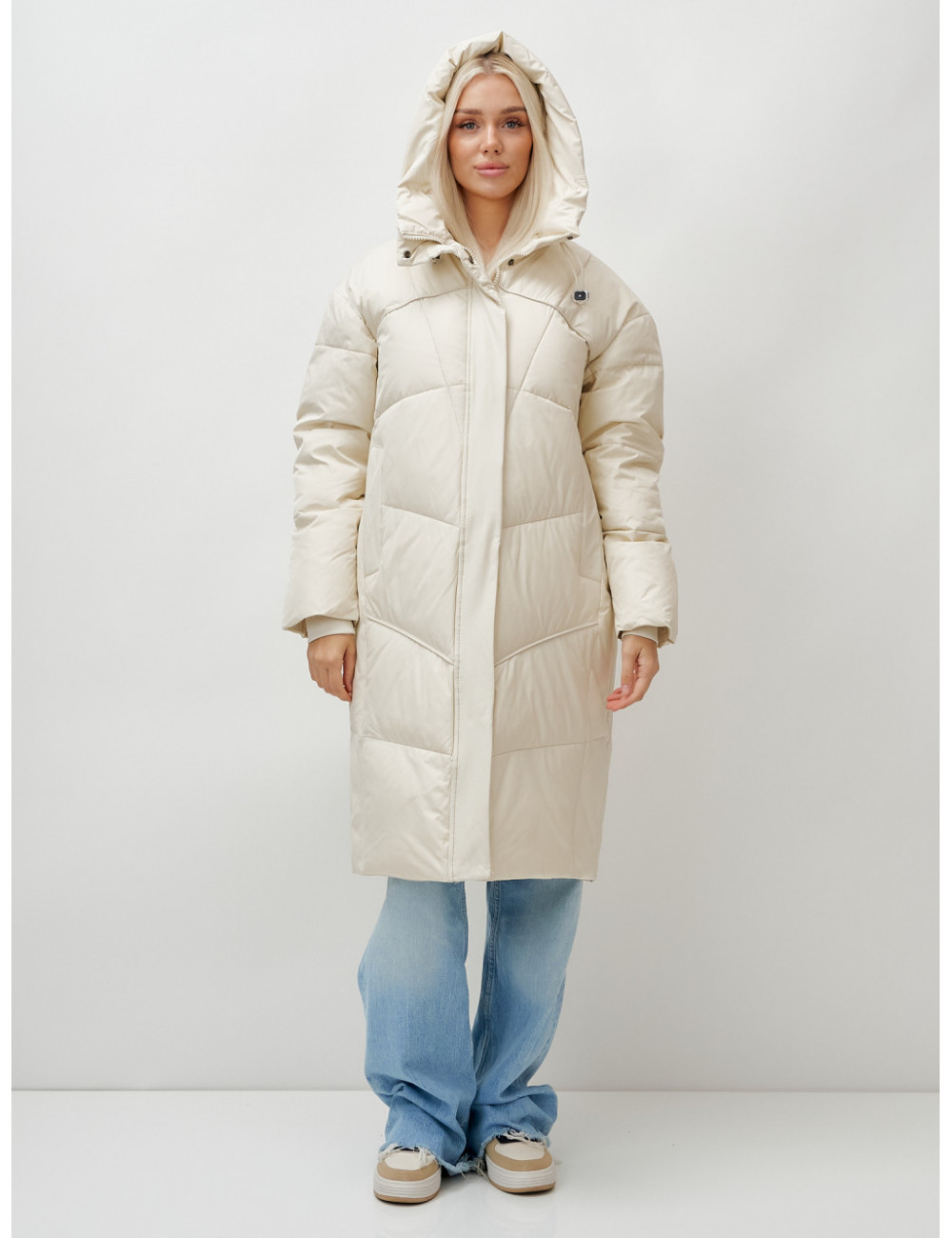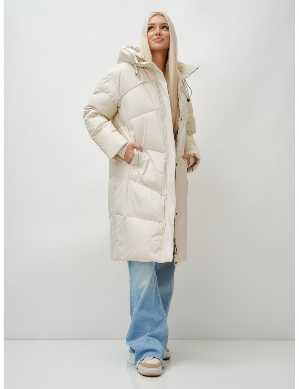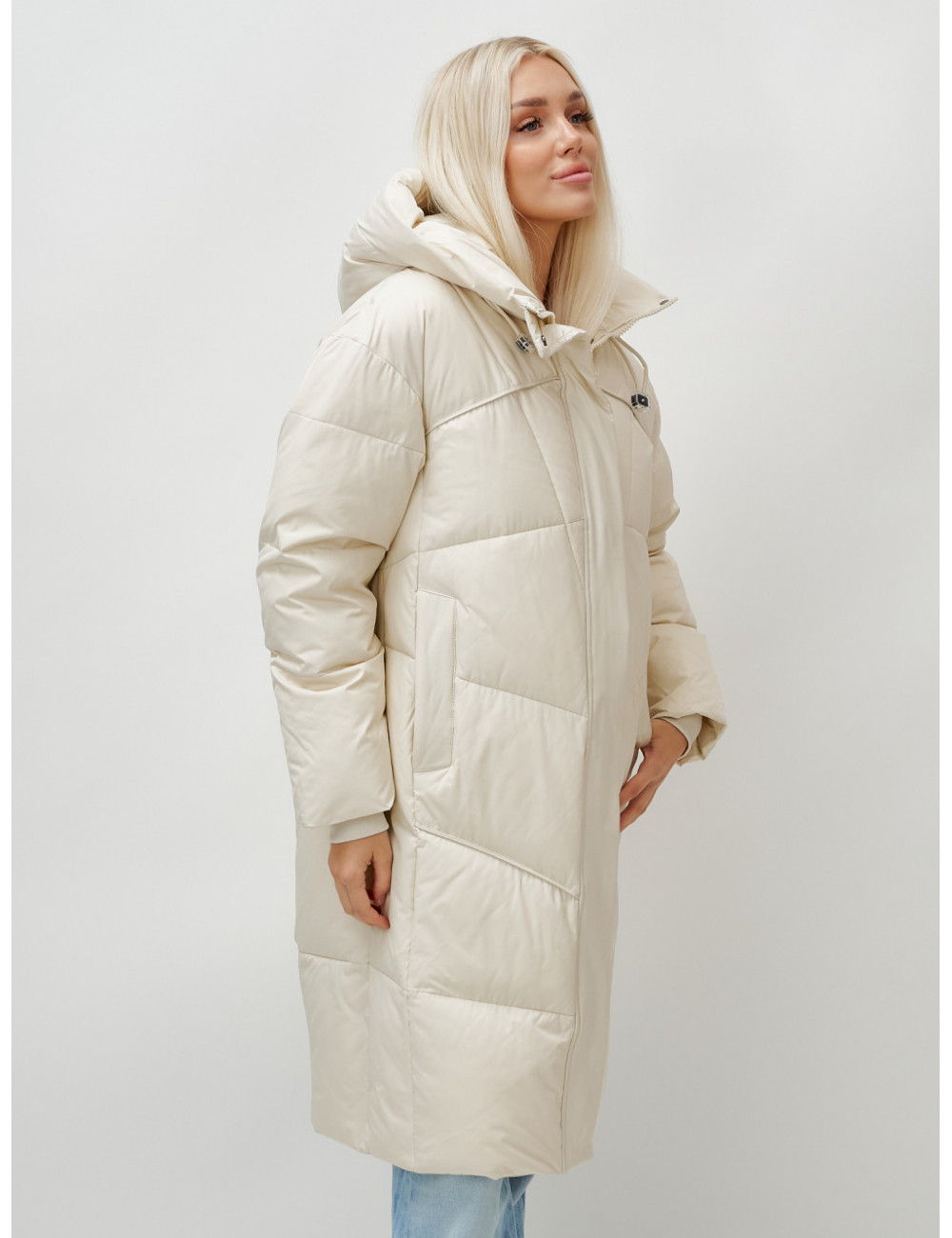 Доставка Длинный женский пуховик с капюшоном, бежевый. по Тюмени и Тюменской области СДЭК