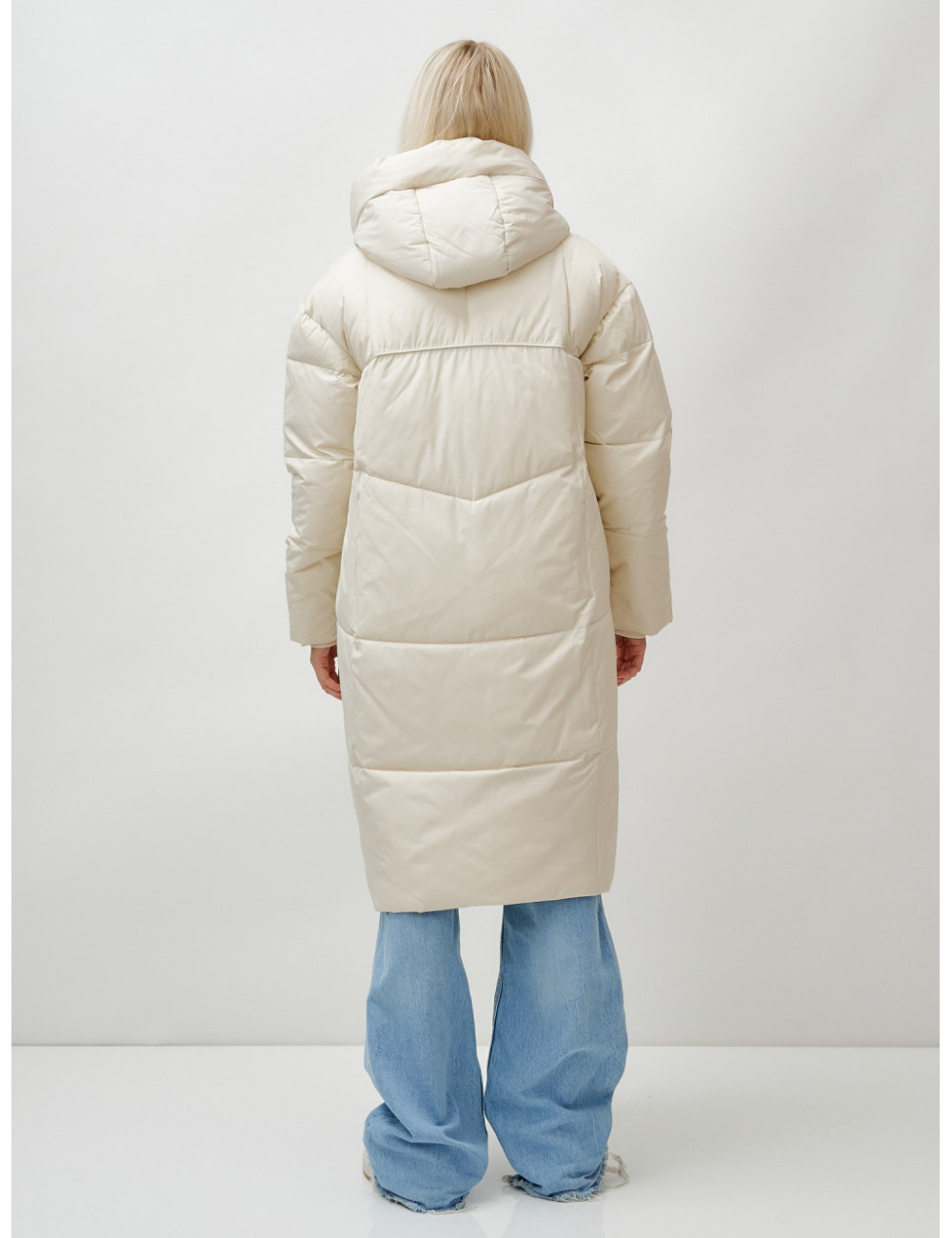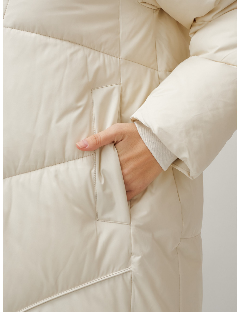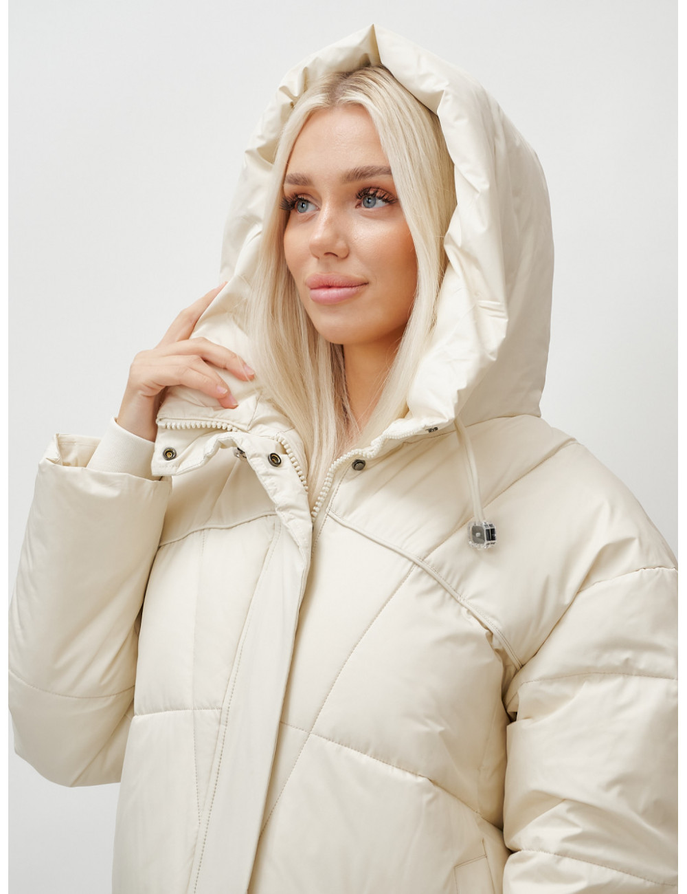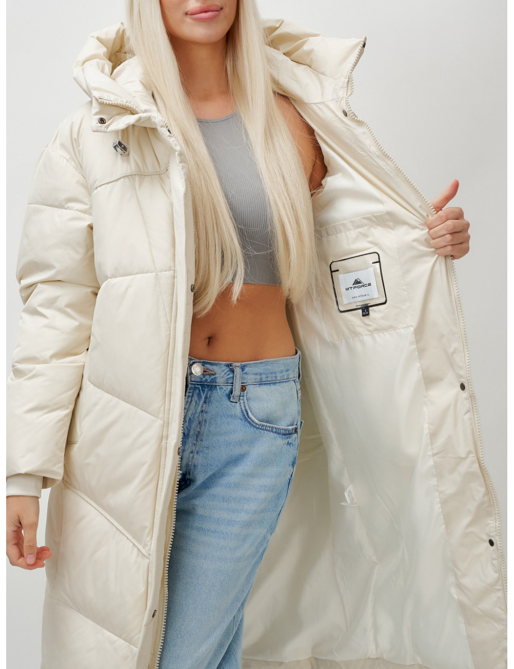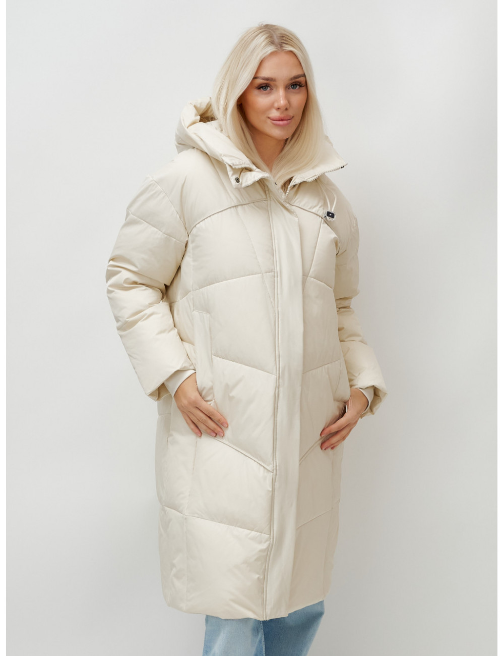 Доставка Длинный женский пуховик с капюшоном, бежевый. по Тюмени и Тюменской области СДЭК