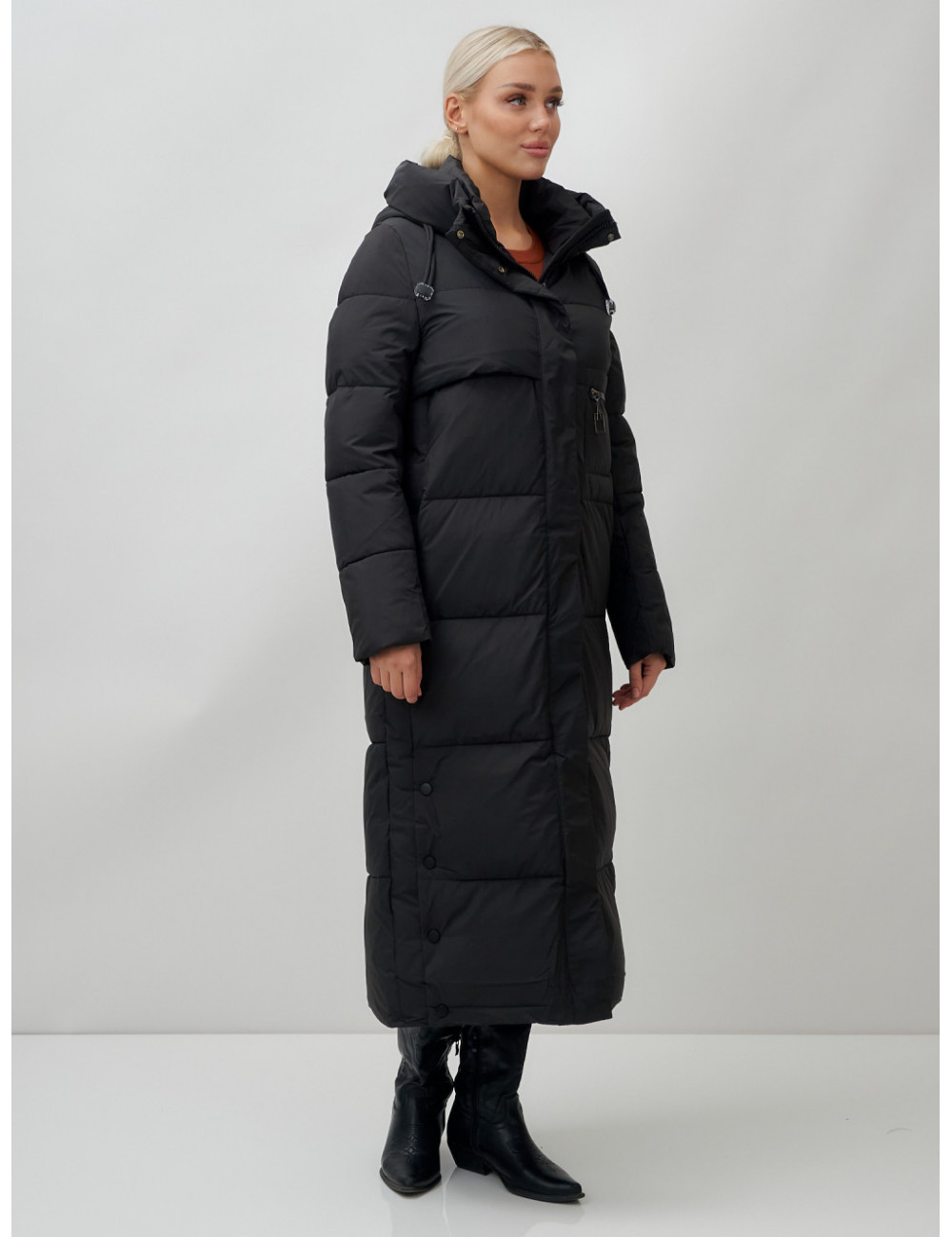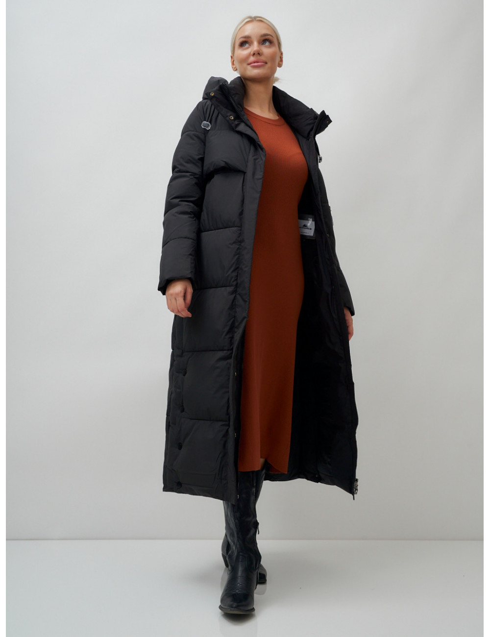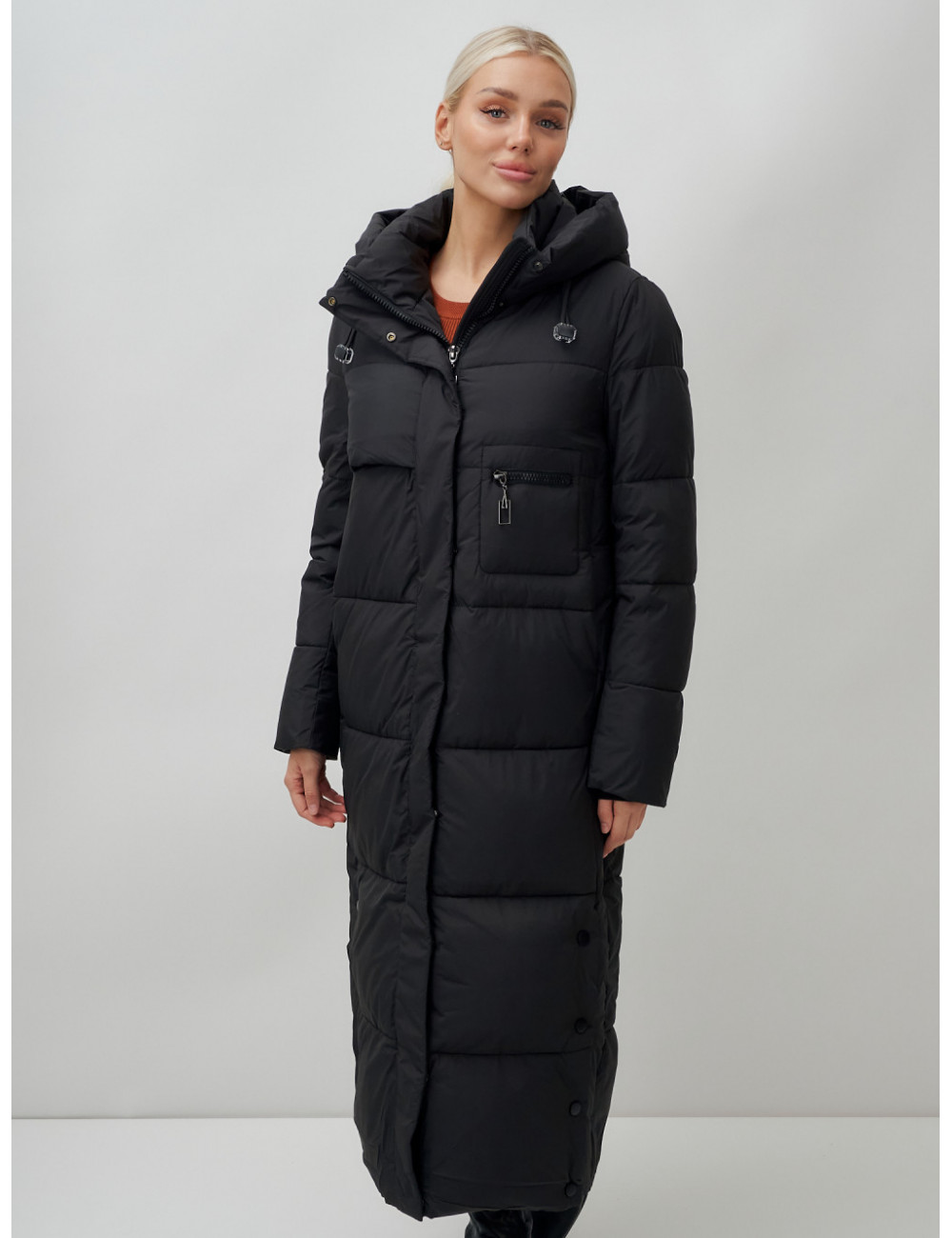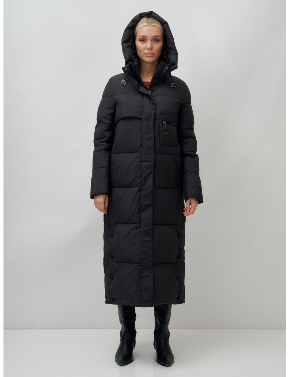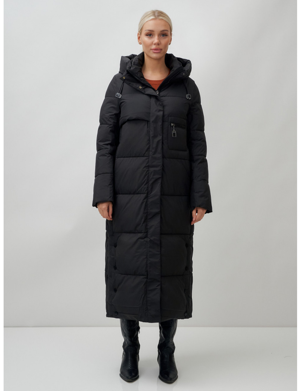 Доставка Длинный пуховик женский зимний с капюшоном чёрный по Тюмени и Тюменской области СДЭК