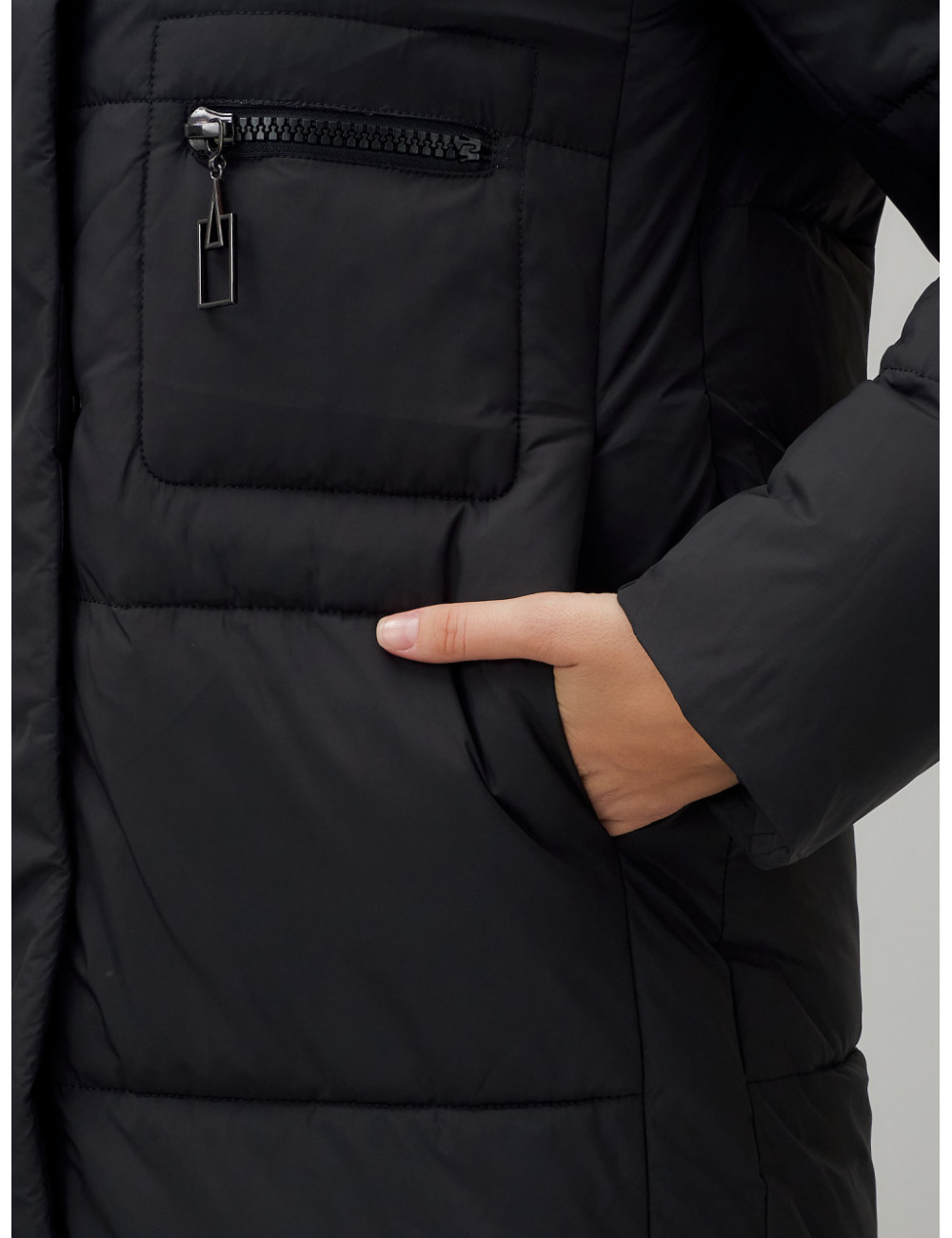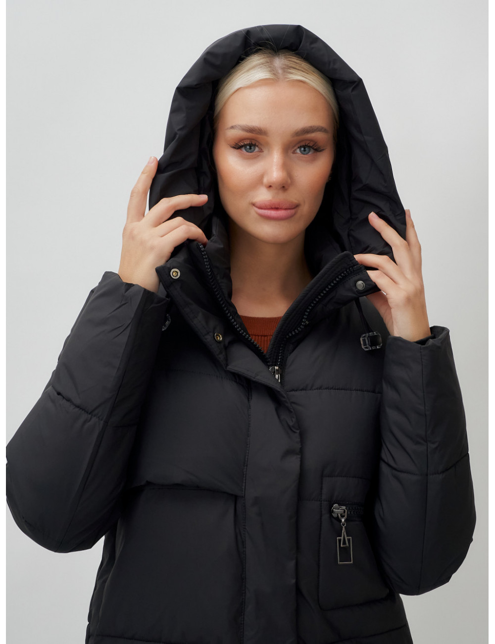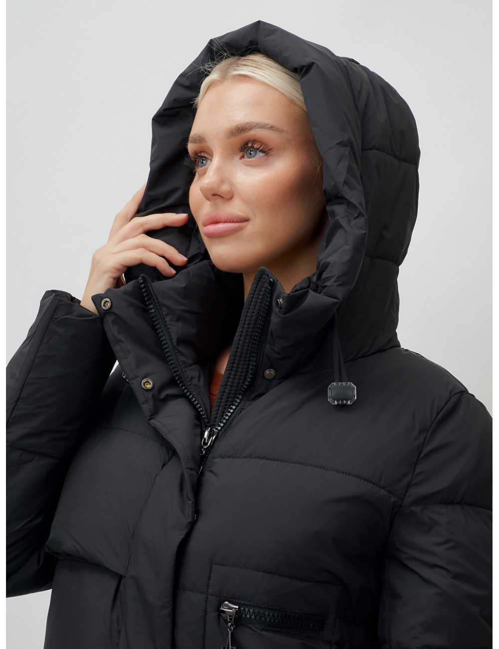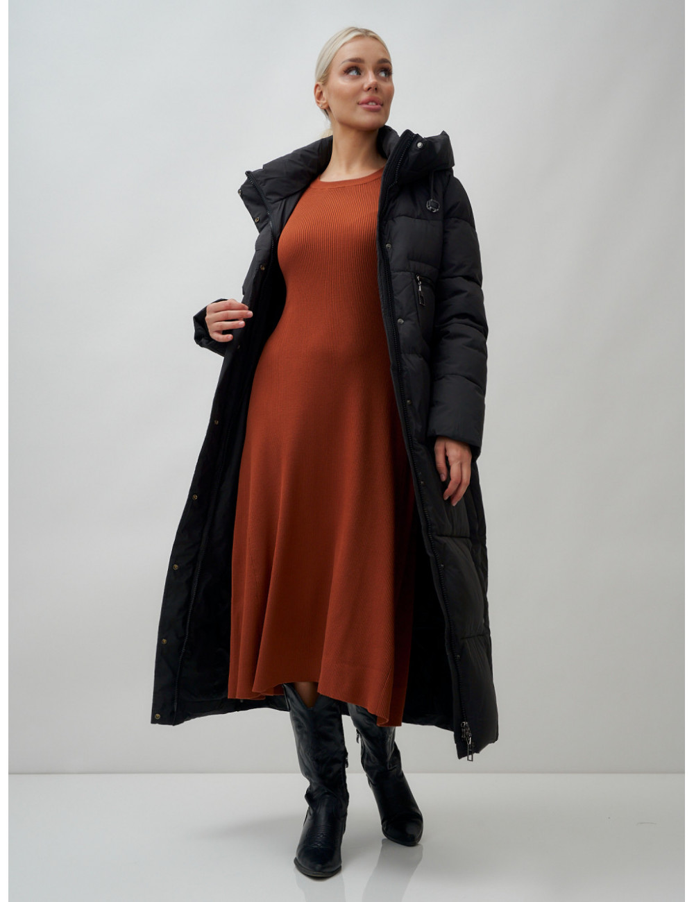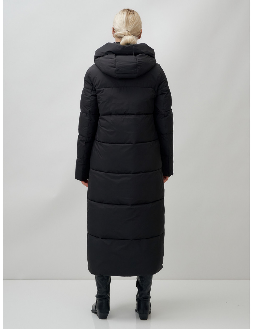 Доставка Длинный пуховик женский зимний с капюшоном чёрный по Тюмени и Тюменской области СДЭК