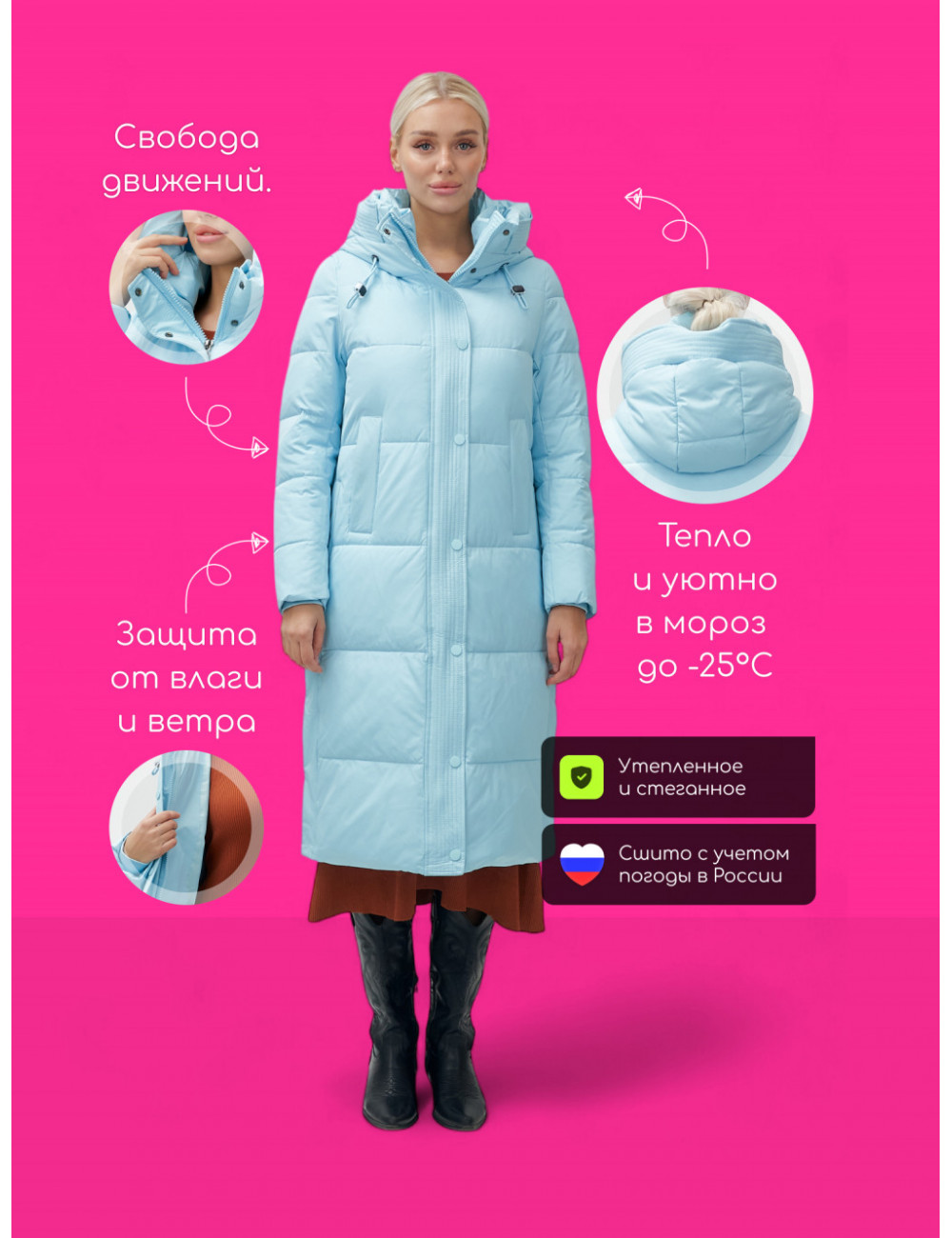 Подарите себе не только защиту от холода, но и уверенное излучение стиля с пуховиком от Ketsi. Выбирая этот пуховик, вы выбираете комфорт, качество и элегантность. Доставка Длинный пуховик женский голубой с капюшоном зимний утеплённый стёганый по Тюмени и Тюменской области СДЭК