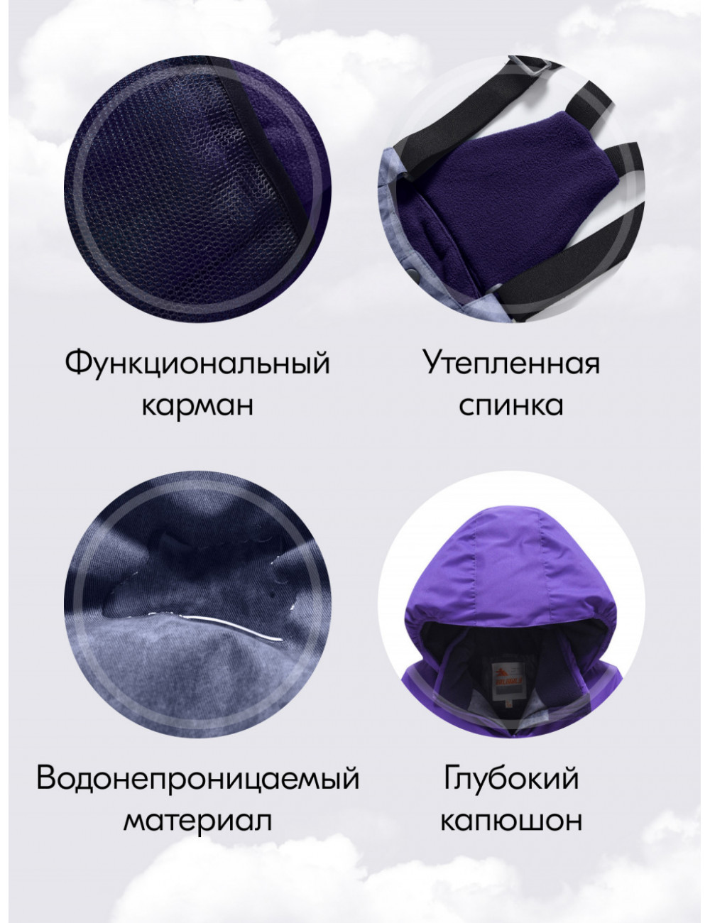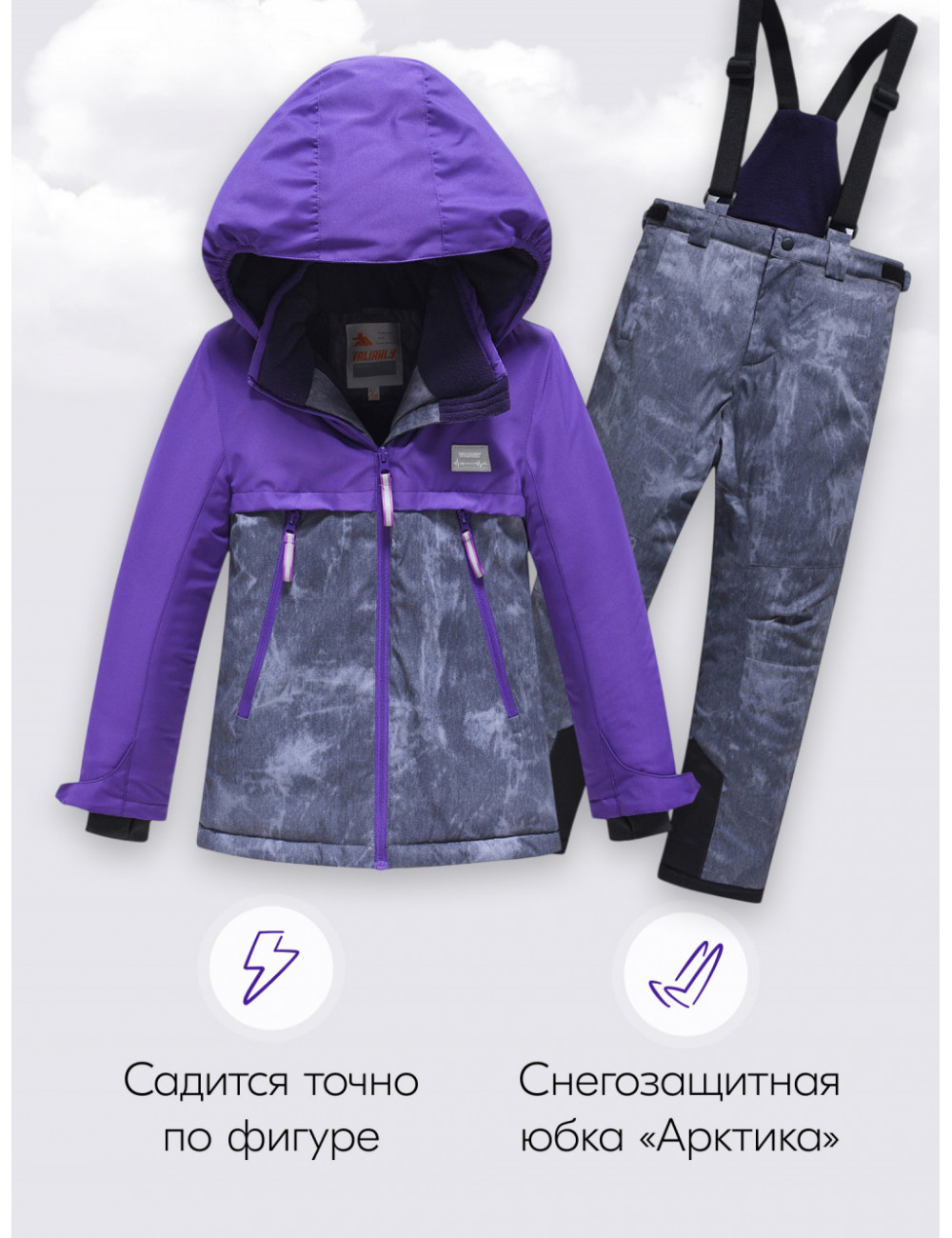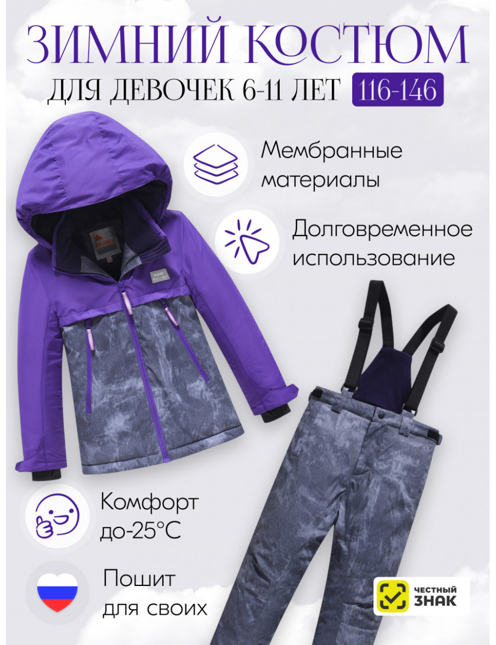 Костюм можно сочетать с термобельём и дополнительными утеплёнными элементами для создания многослойного образа, который обеспечит дополнительную защиту от холода. Доставка по Москве и Московской области Горнолыжный костюм зимний для девочки фиолетовый