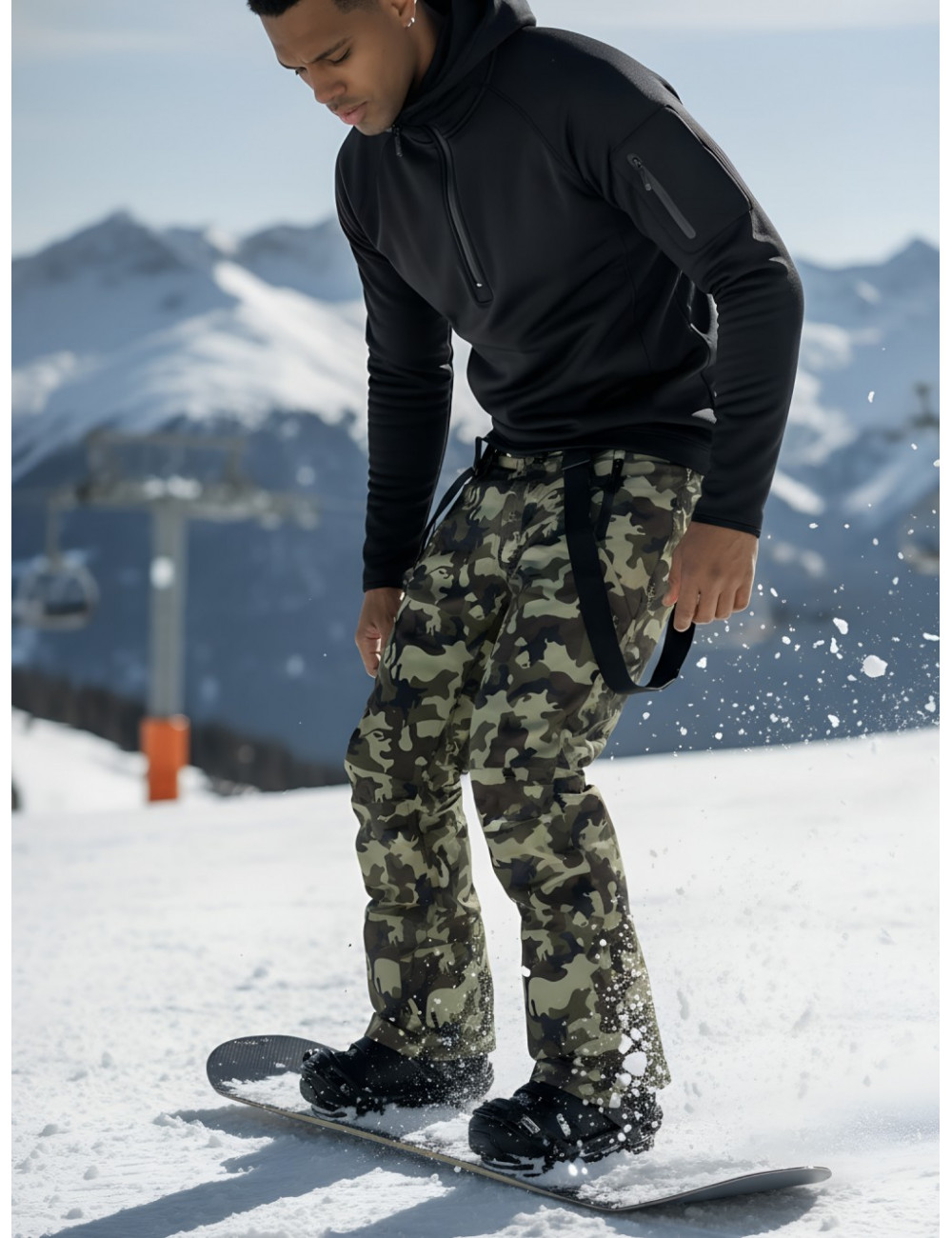 Функциональные детали, такие как средняя посадка, съёмные регулируемые бретели и утеплённая спинка, обеспечивают дополнительный комфорт. Удобные карманы и молнии на штанинах позволяют хранить мелкие предметы и регулировать ширину брюк. Внутренняя подкладка из полиэстера дополнительно защищает от холода и ветра.