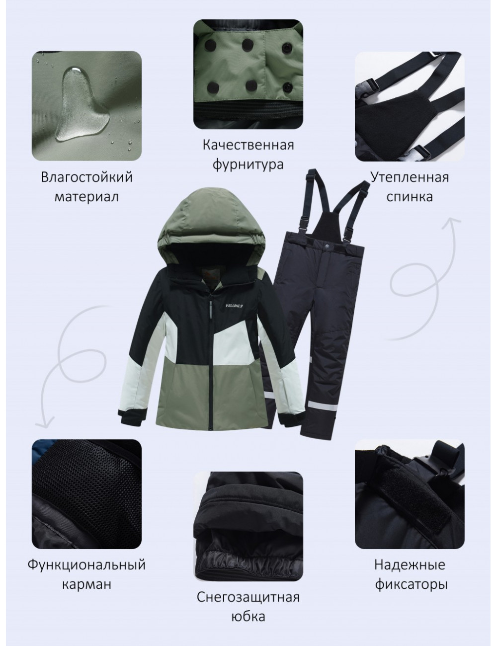 Костюм обеспечивает высокий уровень защиты от холода и ветра, комфорт при носке, безопасность благодаря светоотражающим элементам и стильный дизайн.
