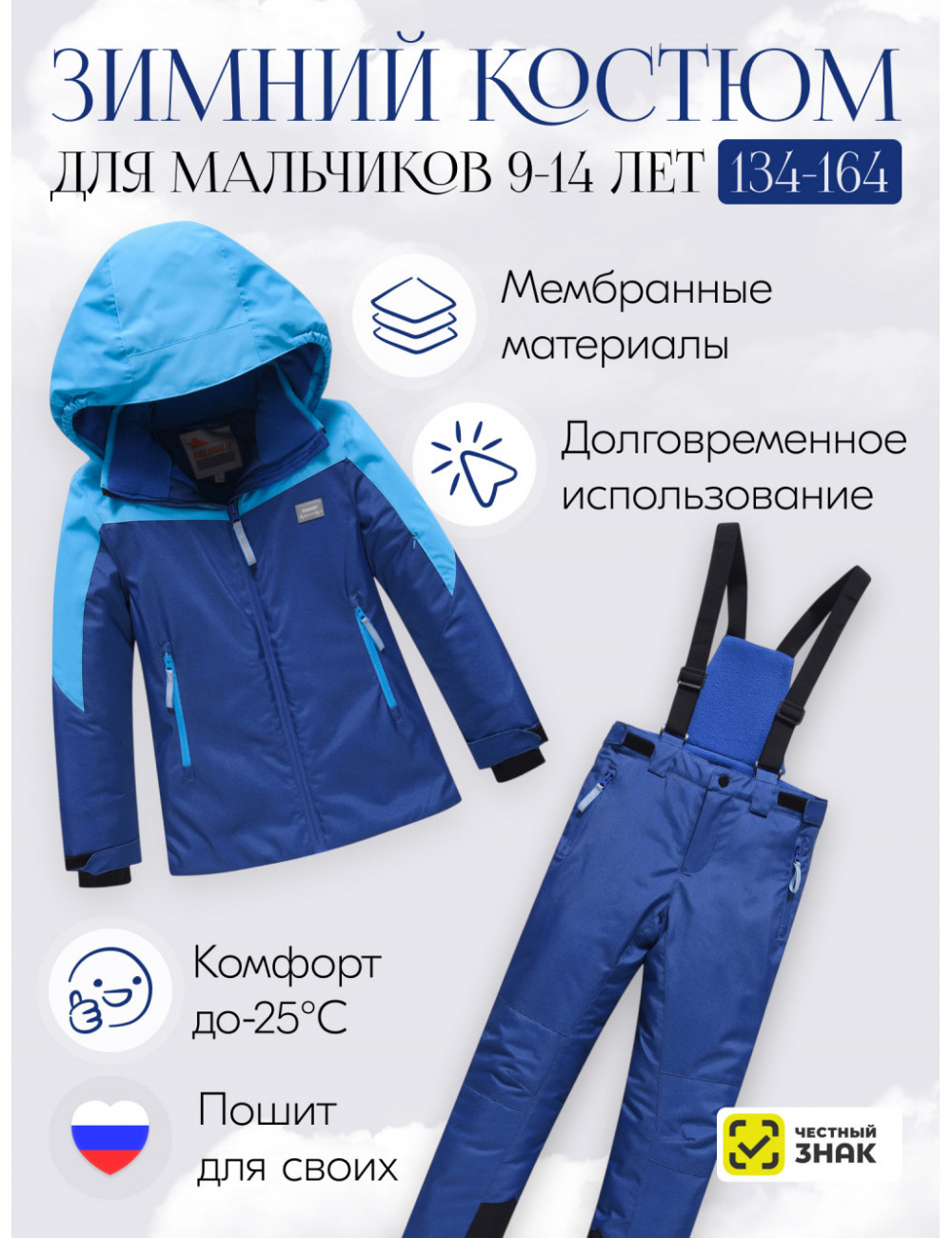 Купить за 19152 ₽ в Тюмени Горнолыжный костюм зимний для мальчика синего цвета Горнолыжный зимний костюм для мальчиков-подростков