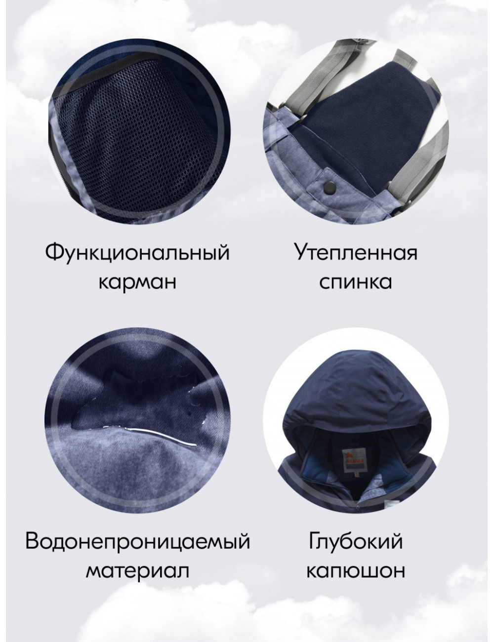 Особенности модели | family look, ветрозащита, водоотталкивающий материал, гипоаллергенный материал, дышащий материал, вареный эффект |