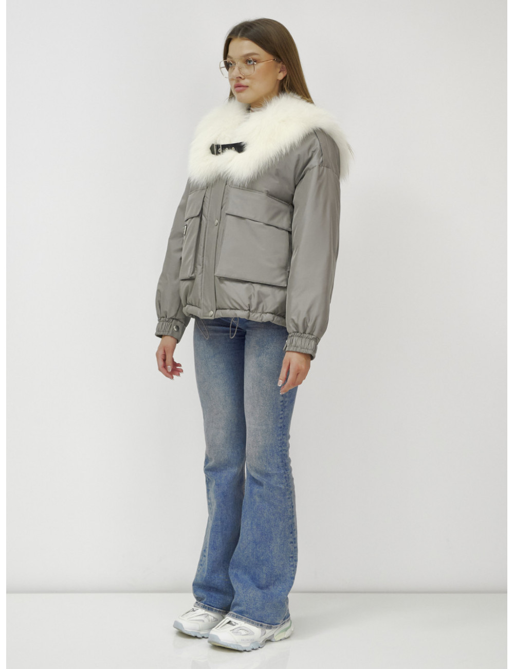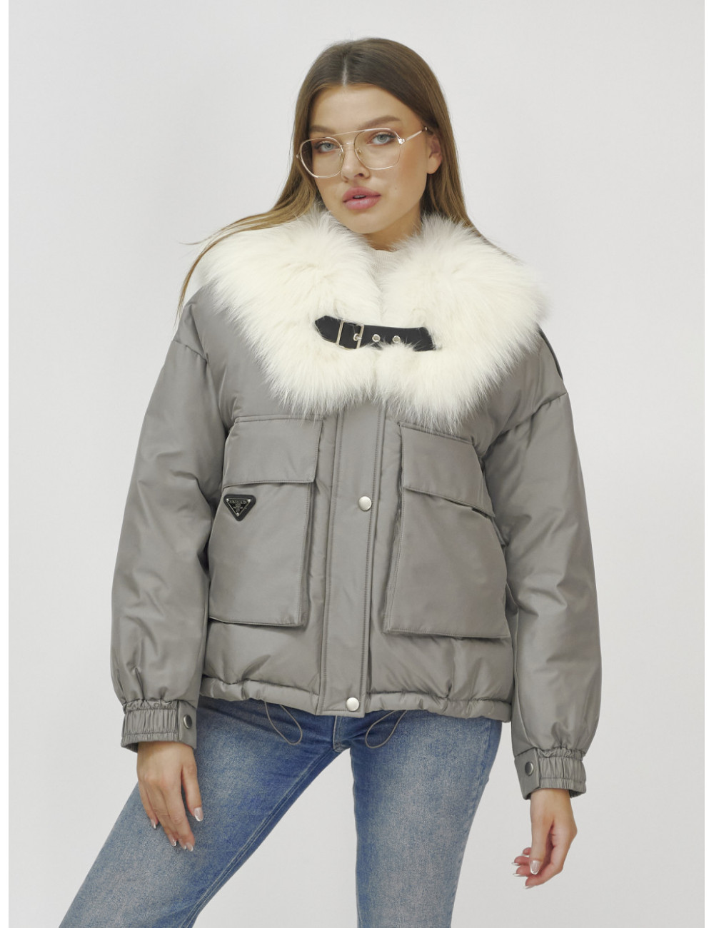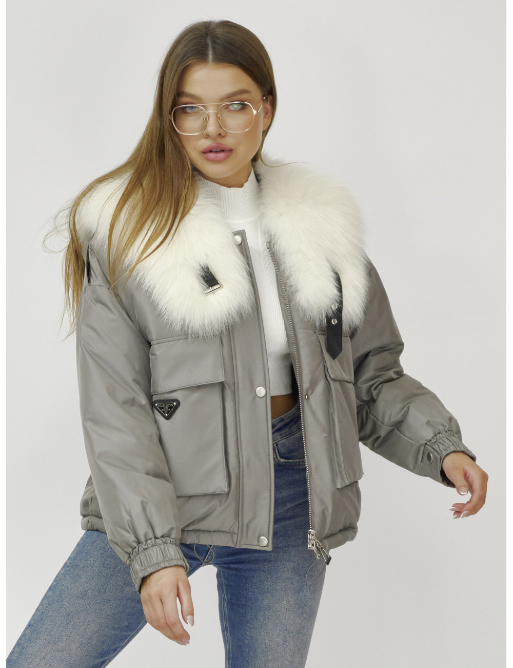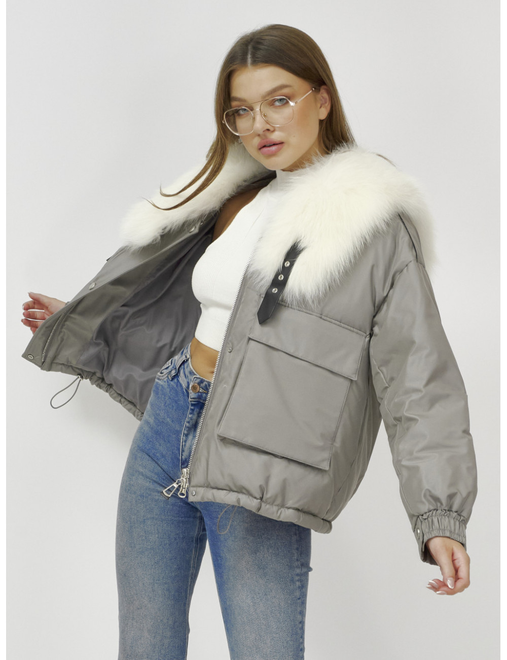 Не упустите возможность подчеркнуть свою индивидуальность и оставаться в тепле этой зимой! Доставка по Москве и Московской области Куртка-бомбер Ангел с мехом песца премиум-класса, серый.