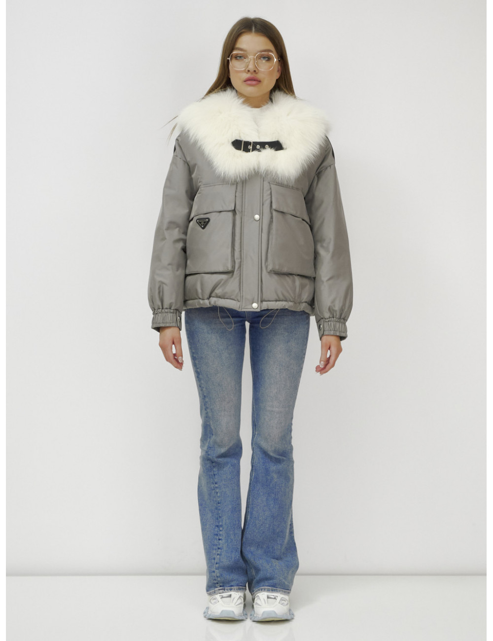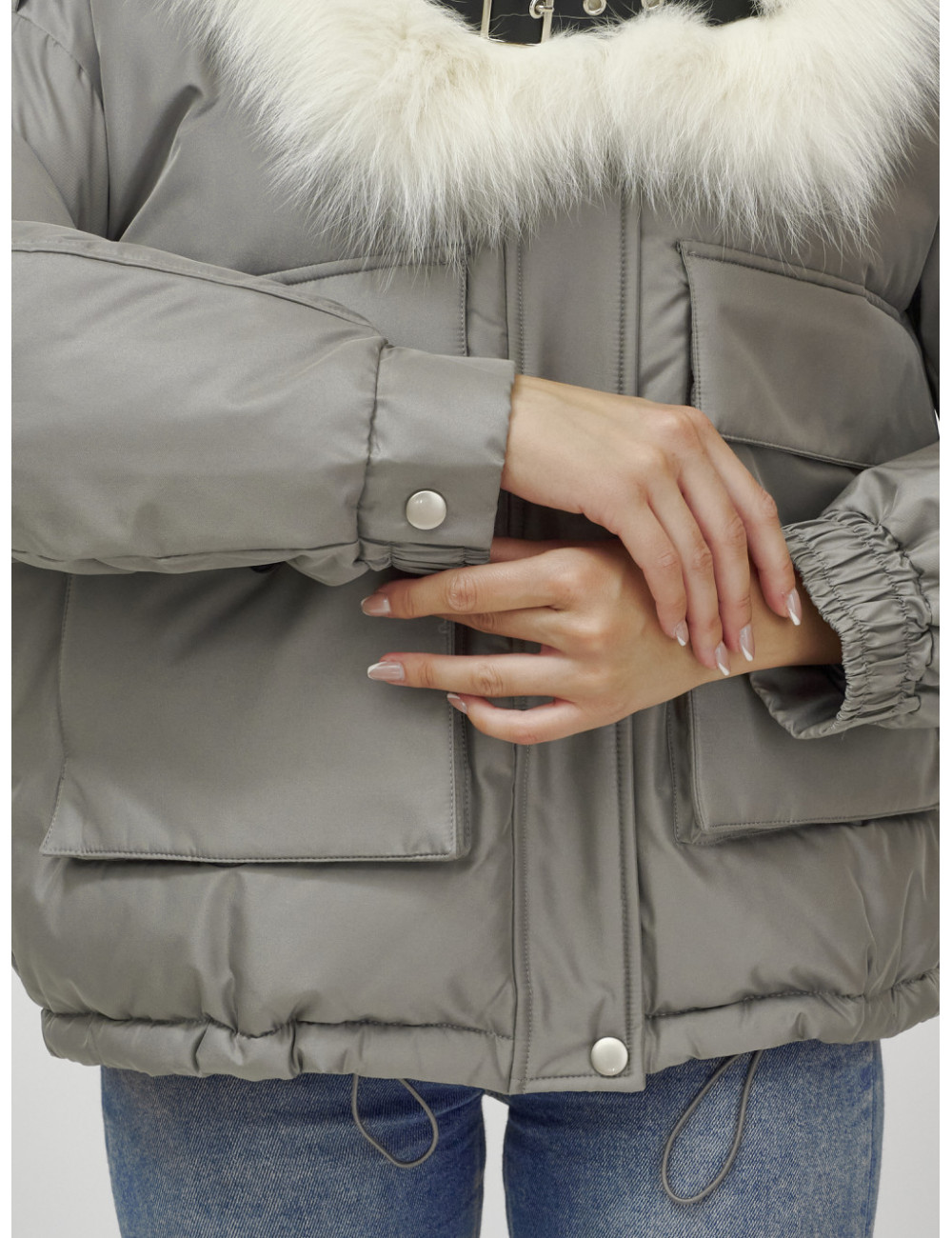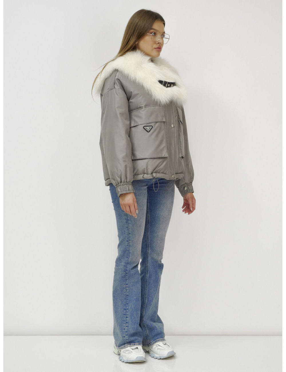 Не упустите возможность подчеркнуть свою индивидуальность и оставаться в тепле этой зимой! Доставка по Москве и Московской области Куртка-бомбер Ангел с мехом песца премиум-класса, серый.
