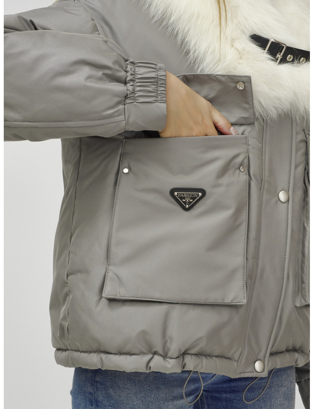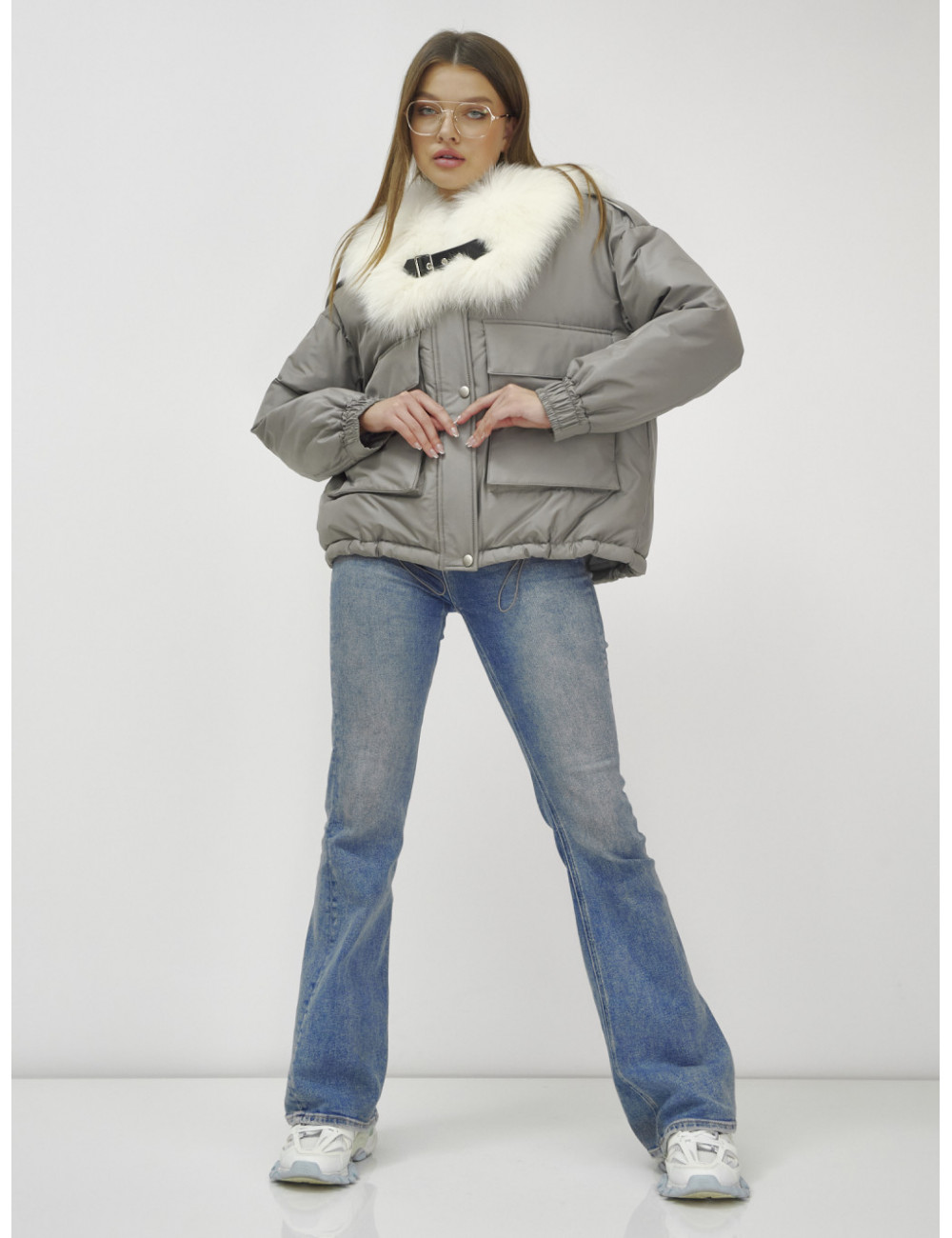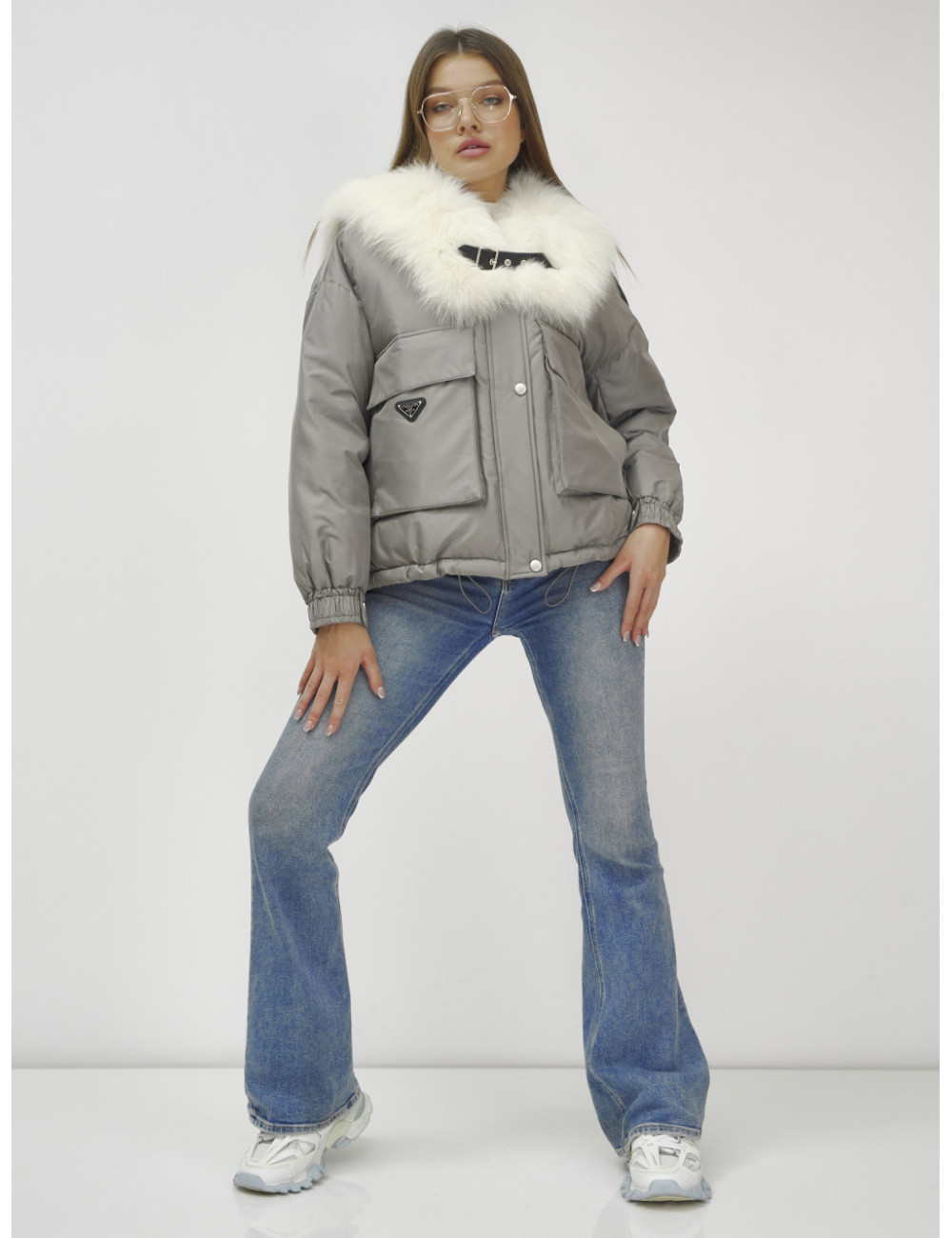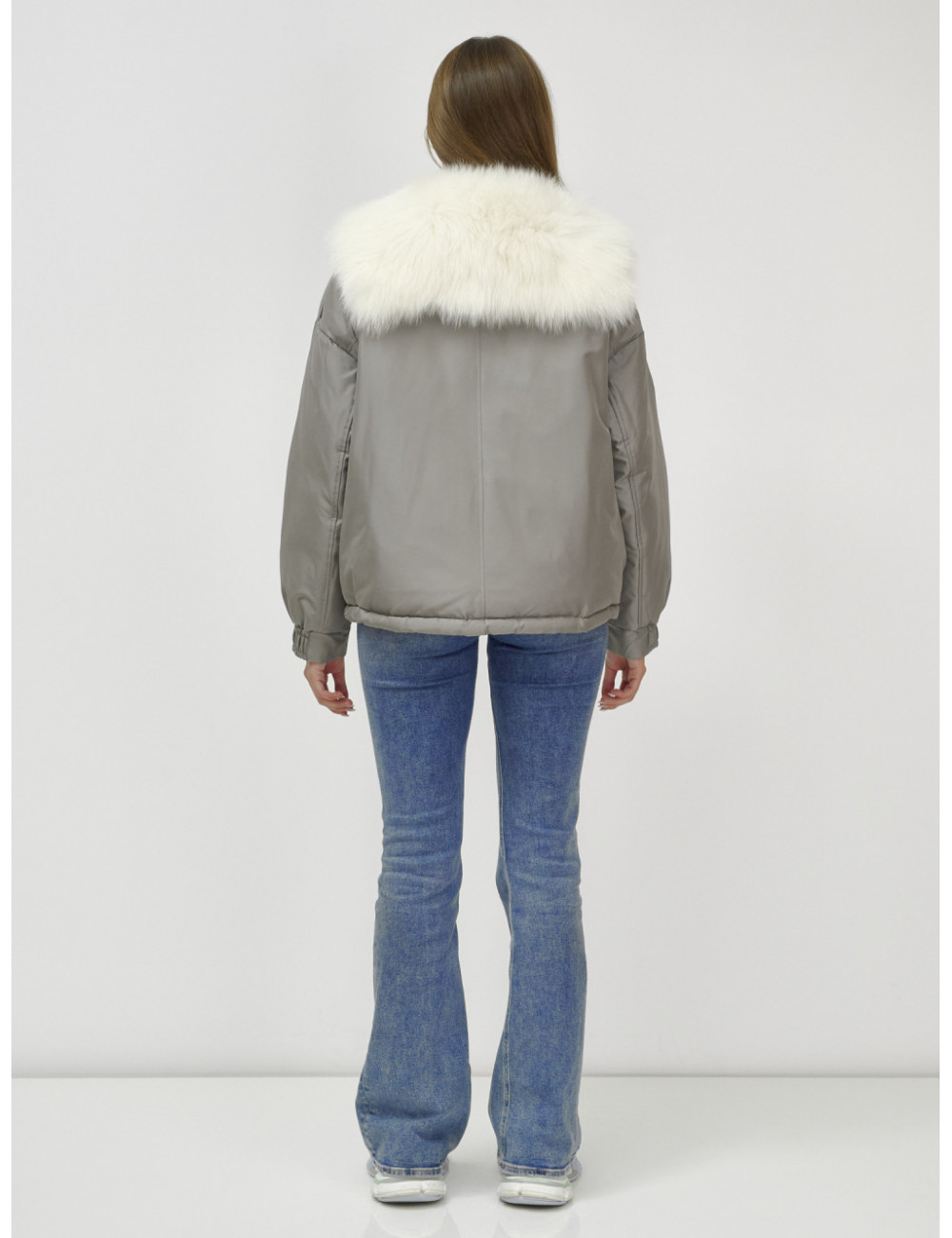 Не упустите возможность подчеркнуть свою индивидуальность и оставаться в тепле этой зимой! Доставка по Москве и Московской области Куртка-бомбер Ангел с мехом песца премиум-класса, серый.