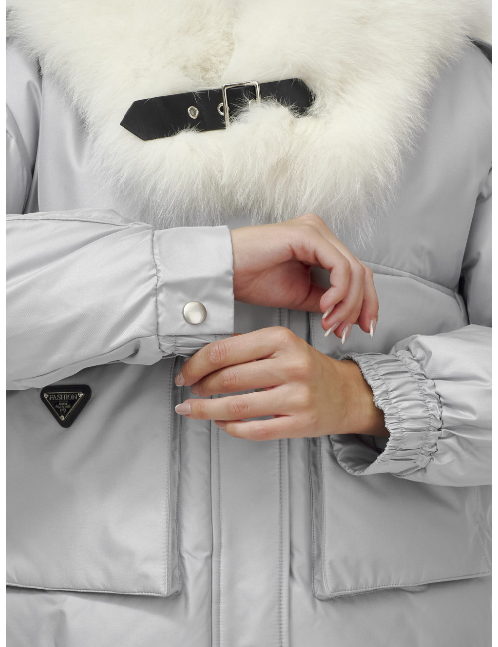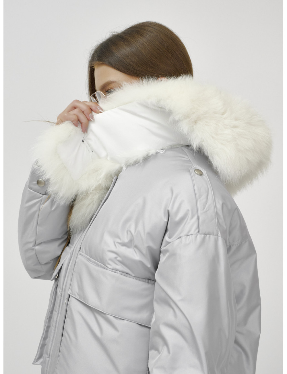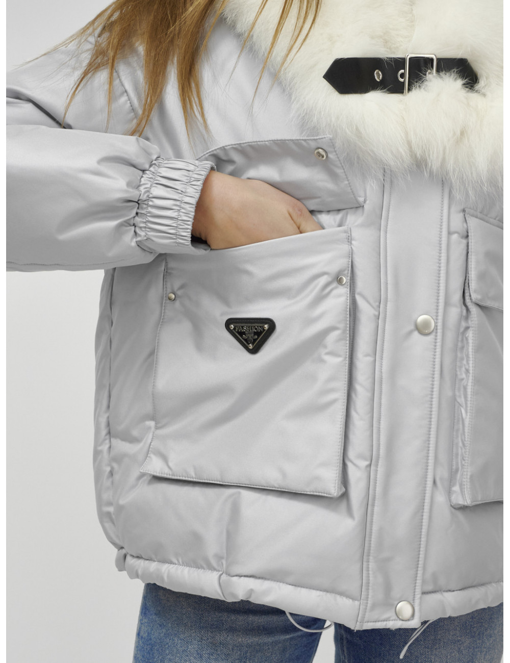 Куртка также станет отличным выбором для зимних поездок и активного отдыха. Её можно надеть на горнолыжный курорт, в поход или на прогулку в парке. Благодаря качественным материалам и продуманному дизайну, она не только согреет вас в холод, но и подчеркнёт ваш индивидуальный стиль. Доставка по Москве и Московской области Куртка бомбер ангел с мехом песец премиум класса светло-серого оттенка