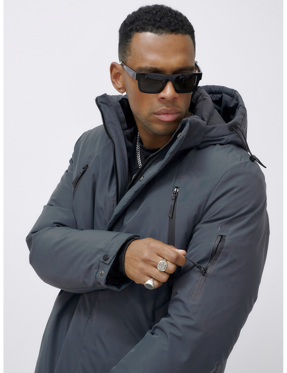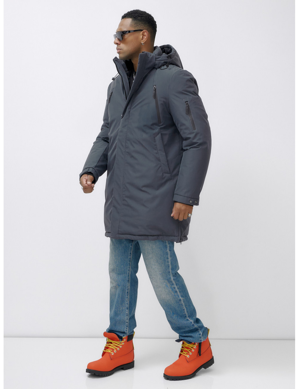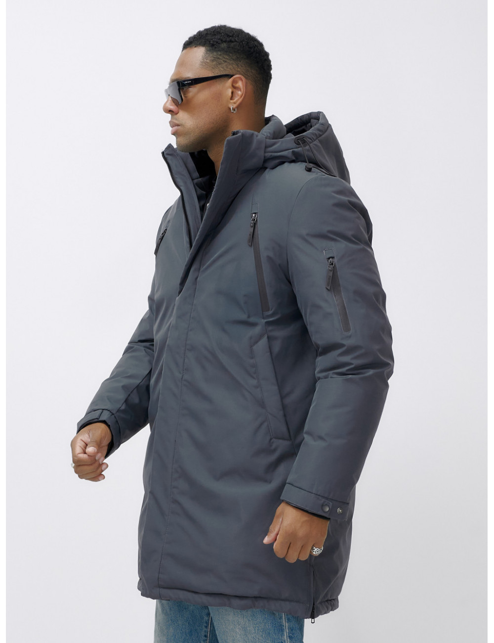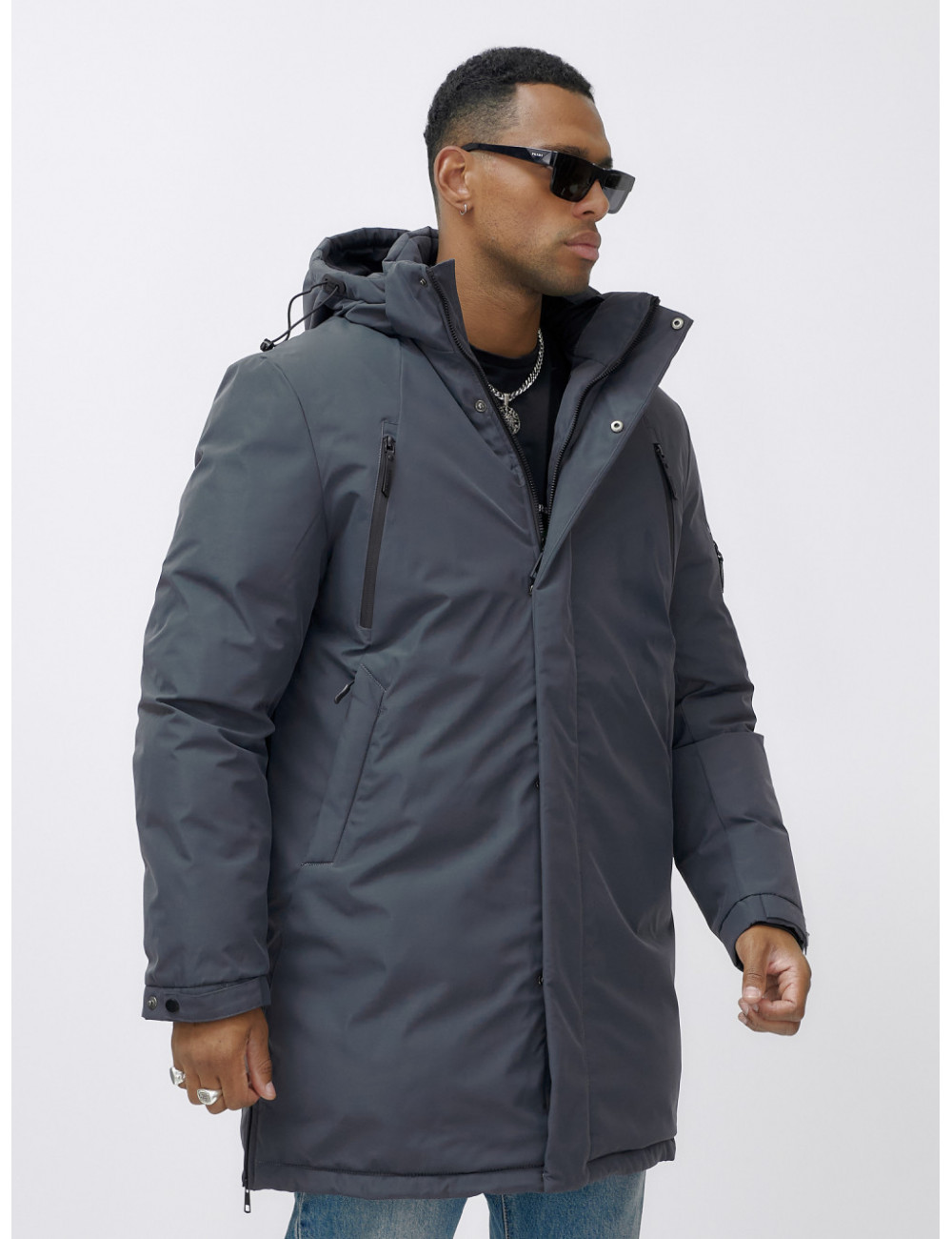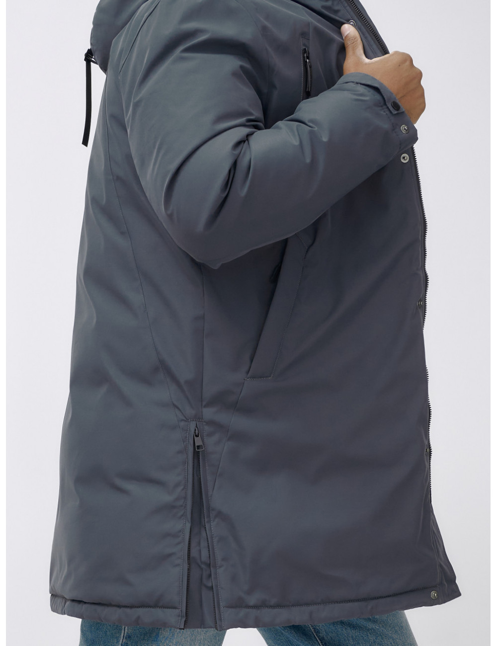 Доставка Мужская зимняя удлиненная парка темно-серого цвета. по Тюмени и Тюменской области СДЭК