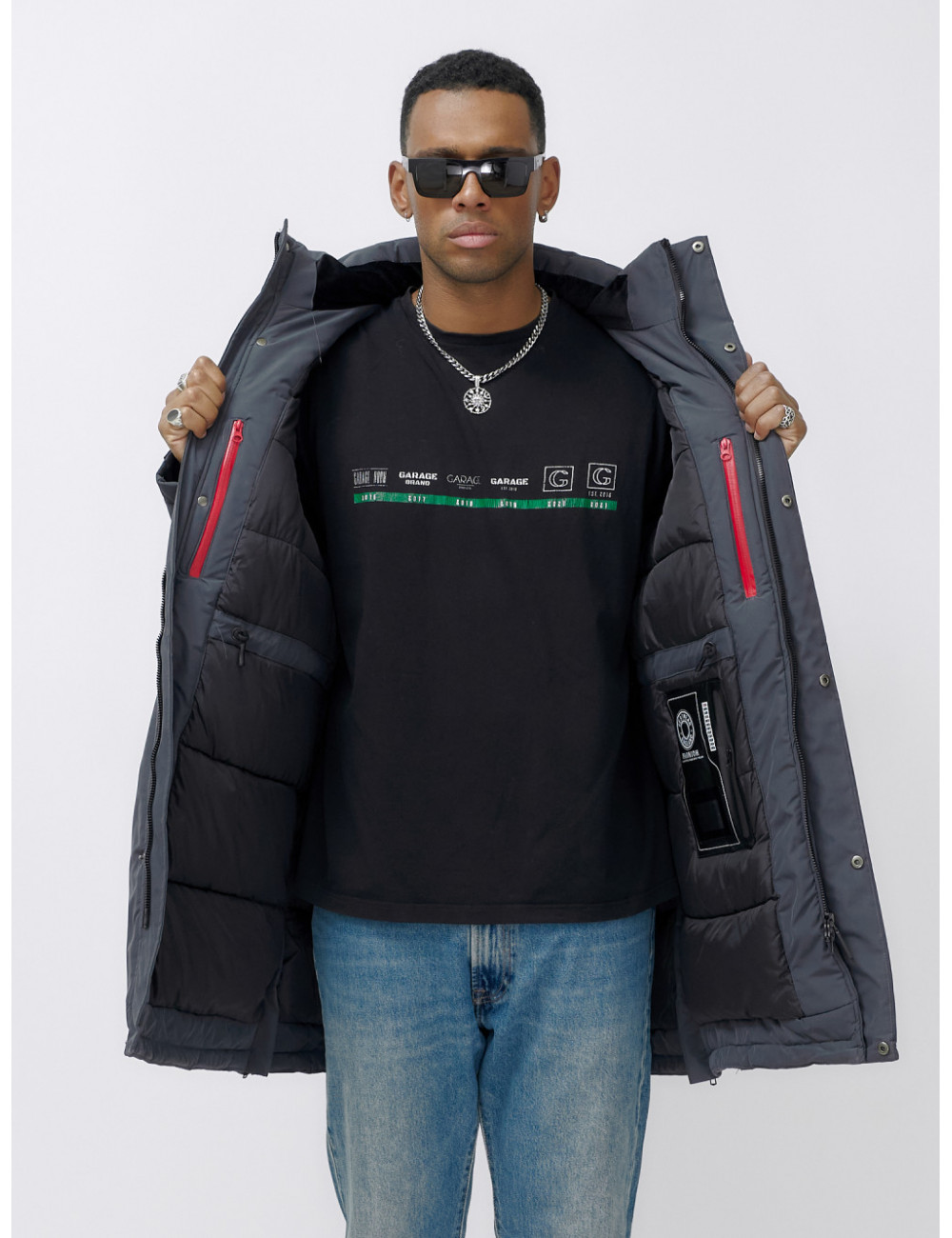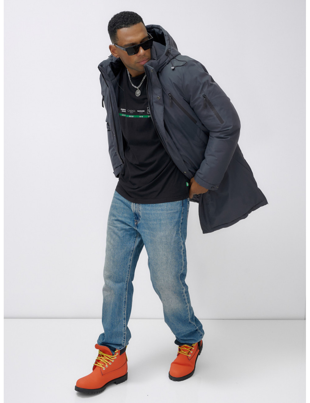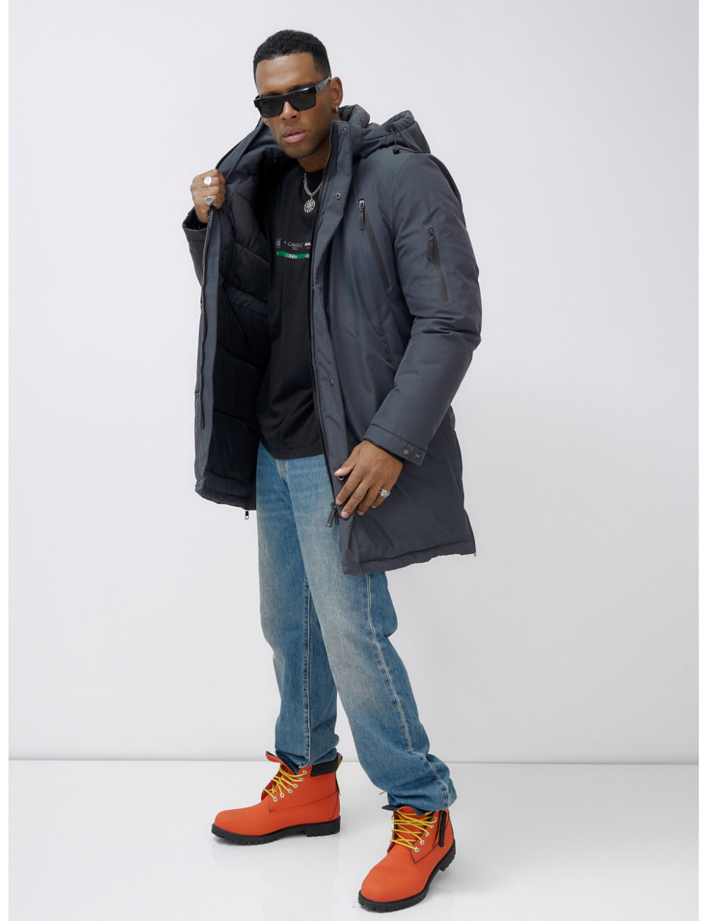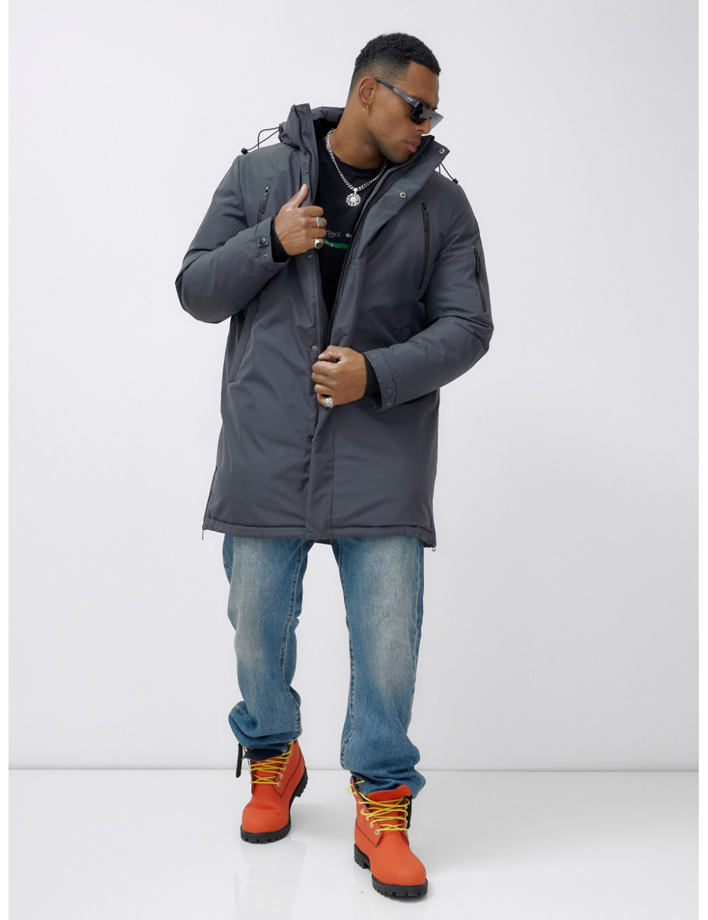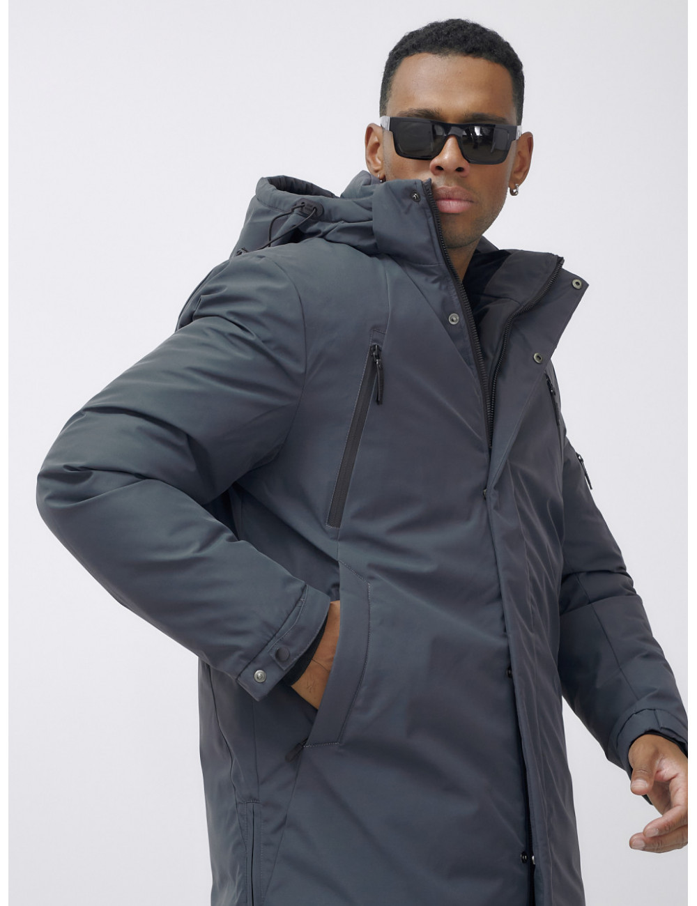 Доставка Мужская зимняя удлиненная парка темно-серого цвета. по Тюмени и Тюменской области СДЭК