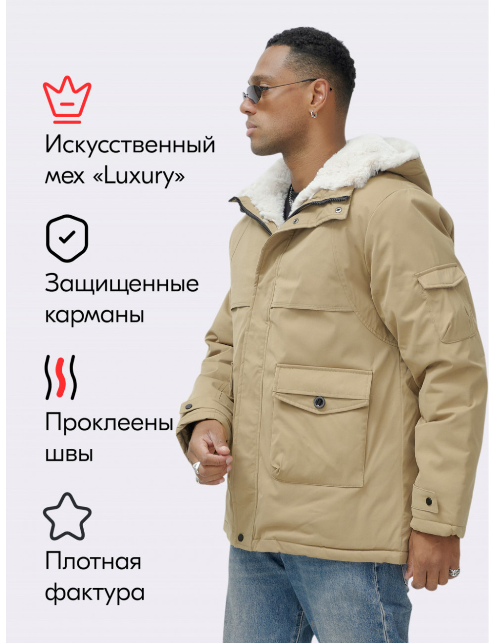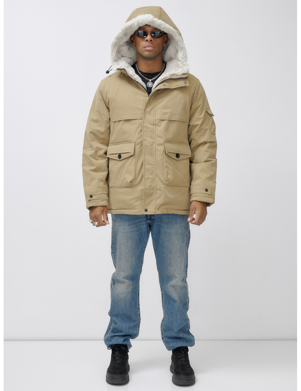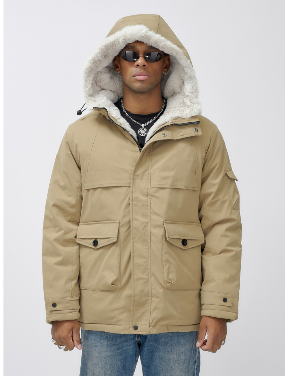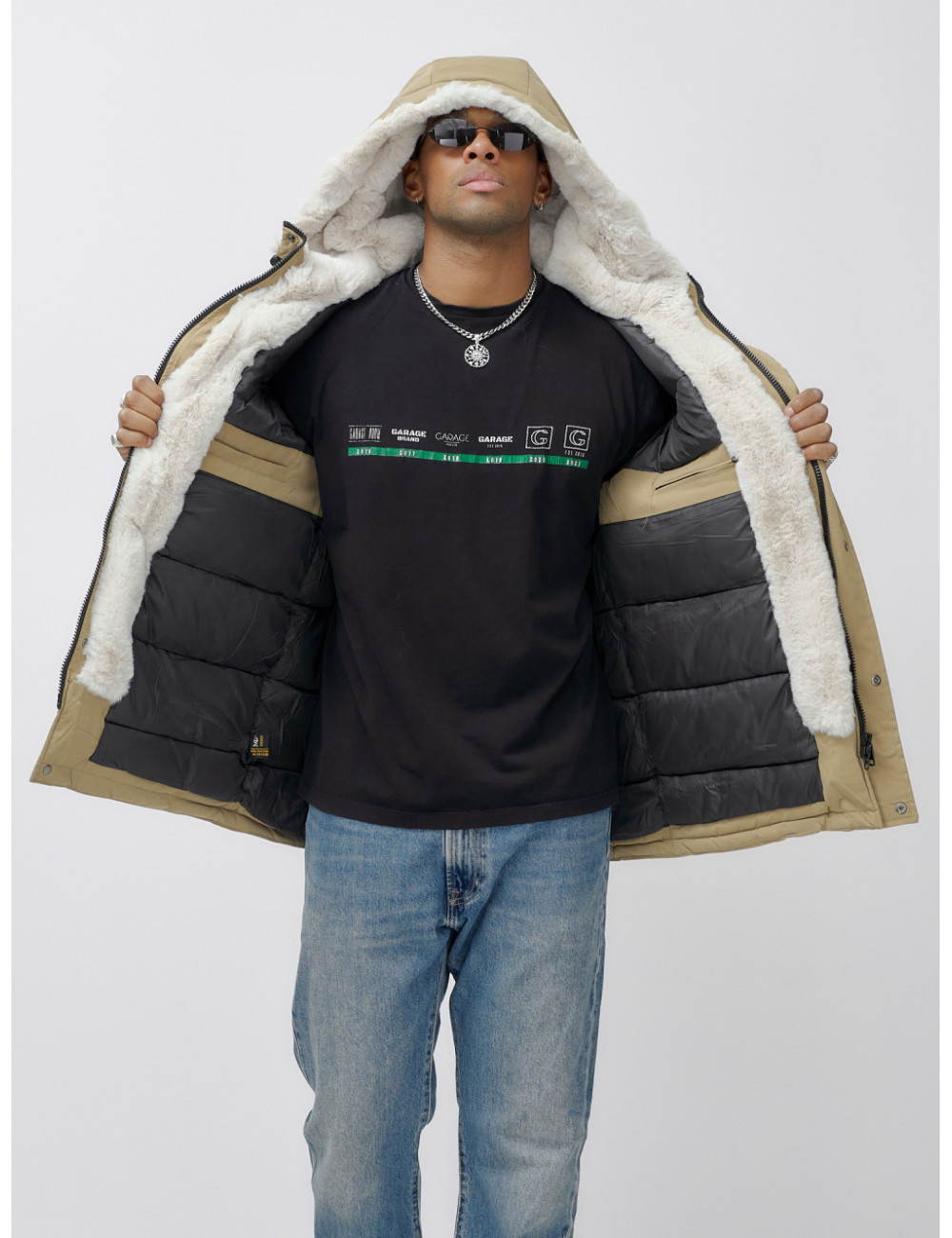 Доставка Мужская зимняя удлиненная парка с мехом горчичного оттенка. по Тюмени и Тюменской области СДЭК