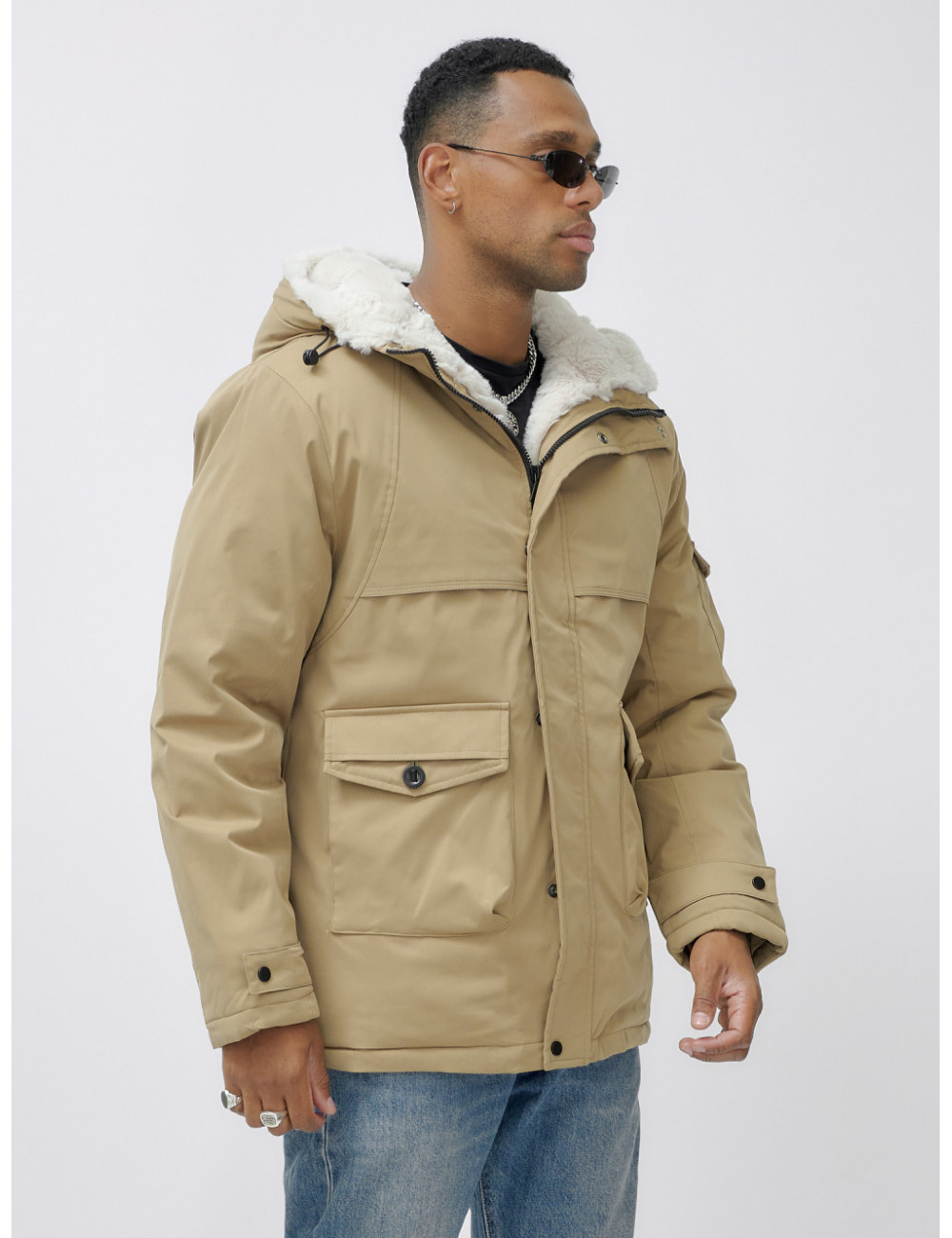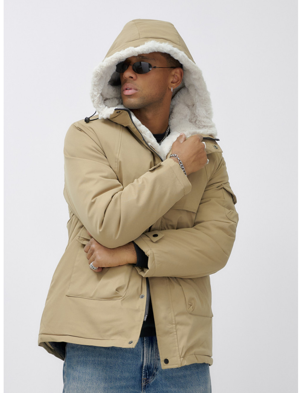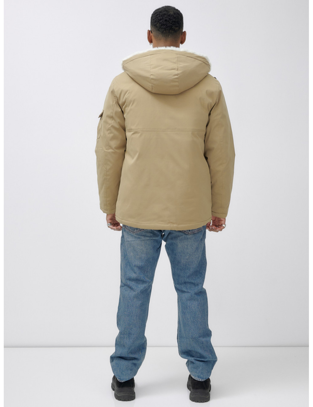 Доставка Мужская зимняя удлиненная парка с мехом горчичного оттенка. по Тюмени и Тюменской области СДЭК