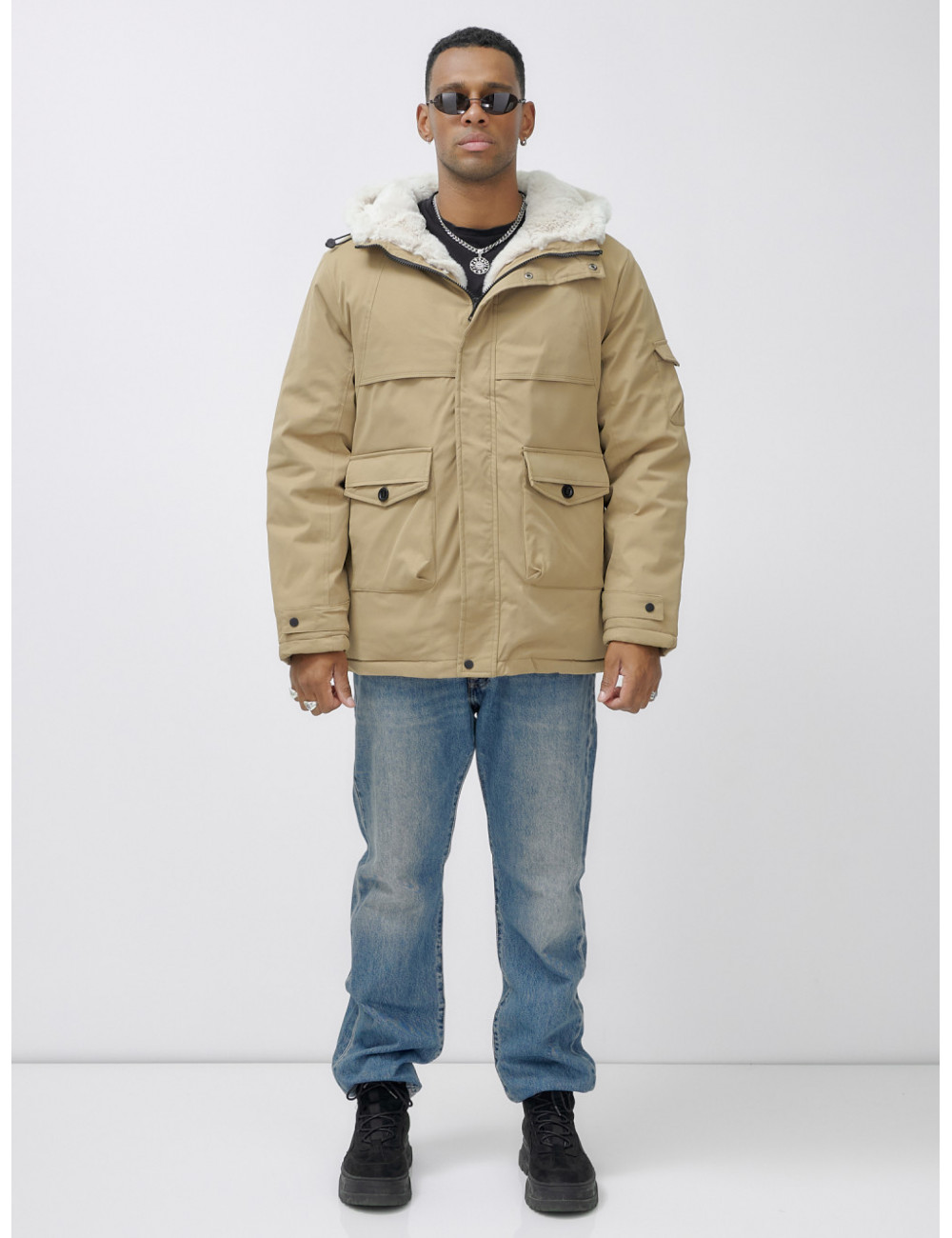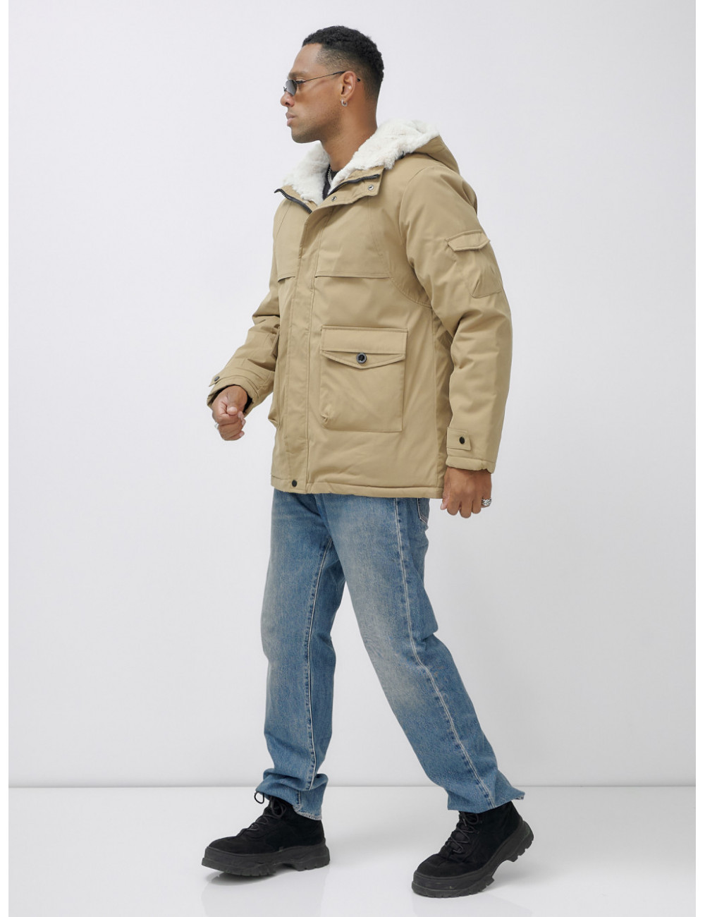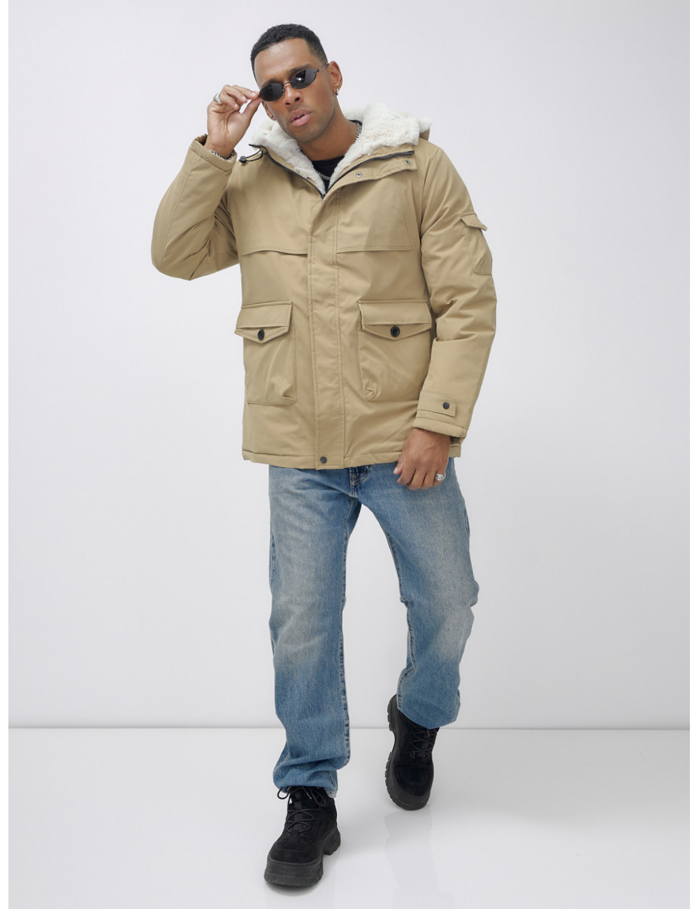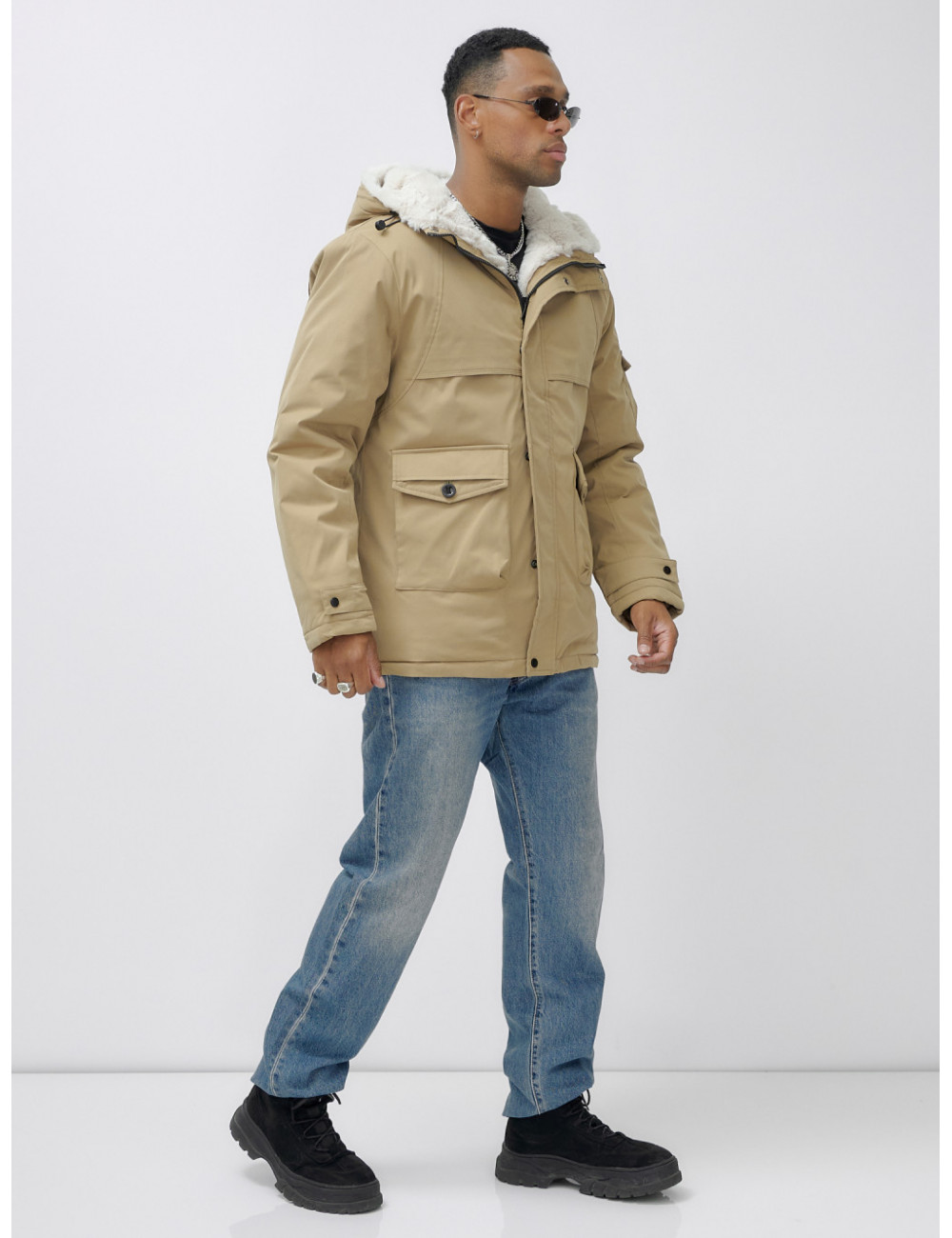 Доставка Мужская зимняя удлиненная парка с мехом горчичного оттенка. по Тюмени и Тюменской области СДЭК