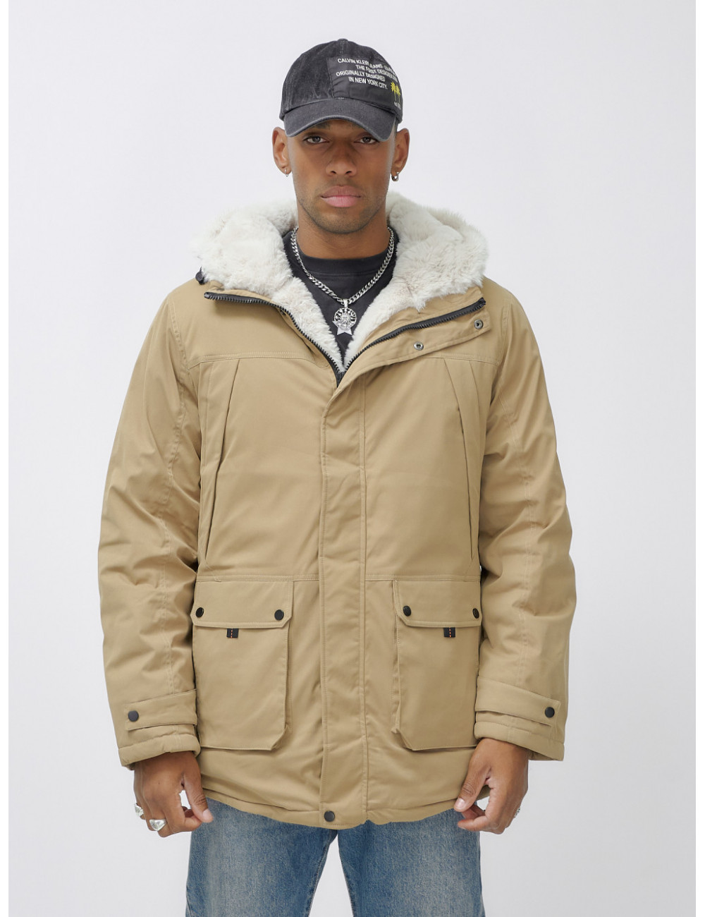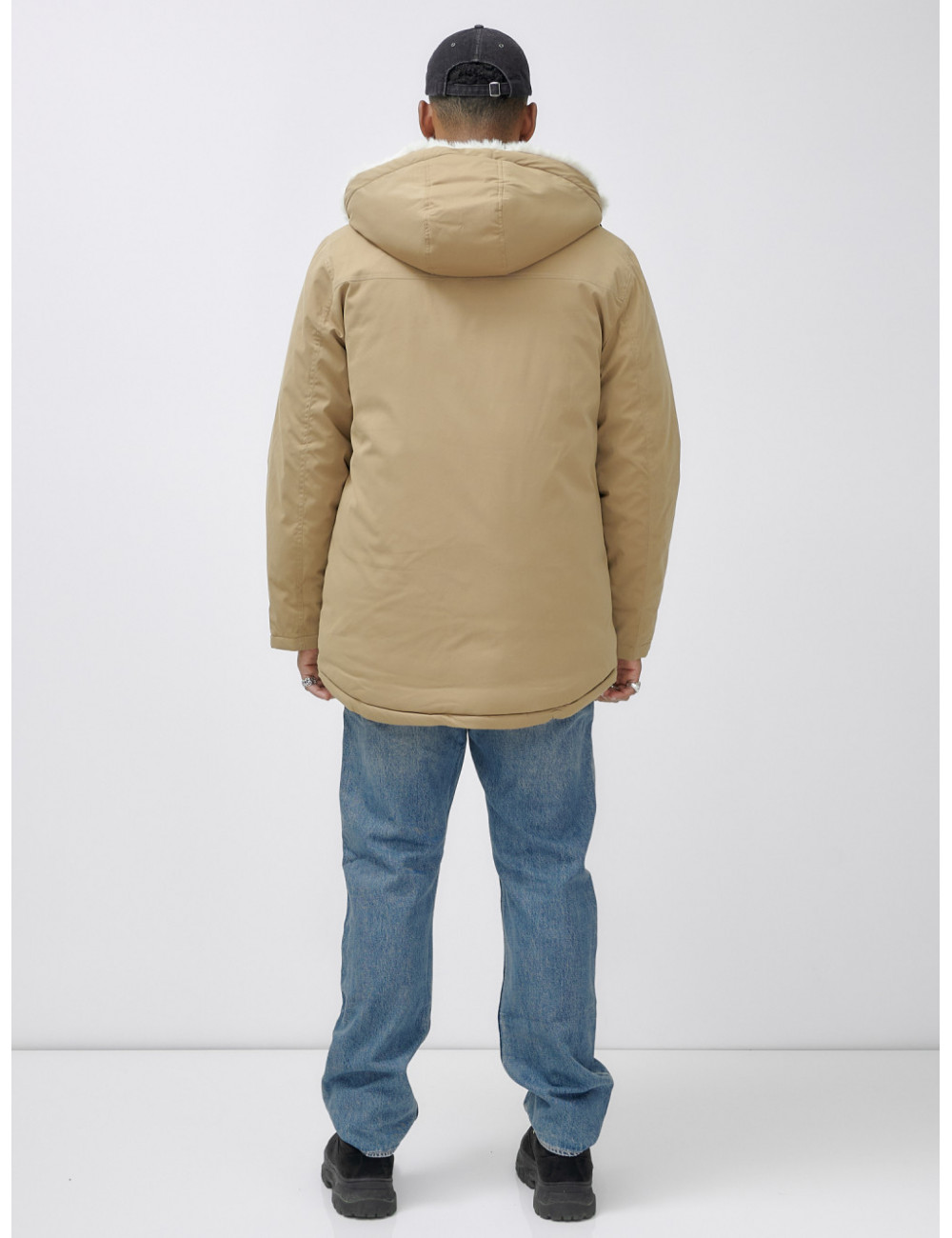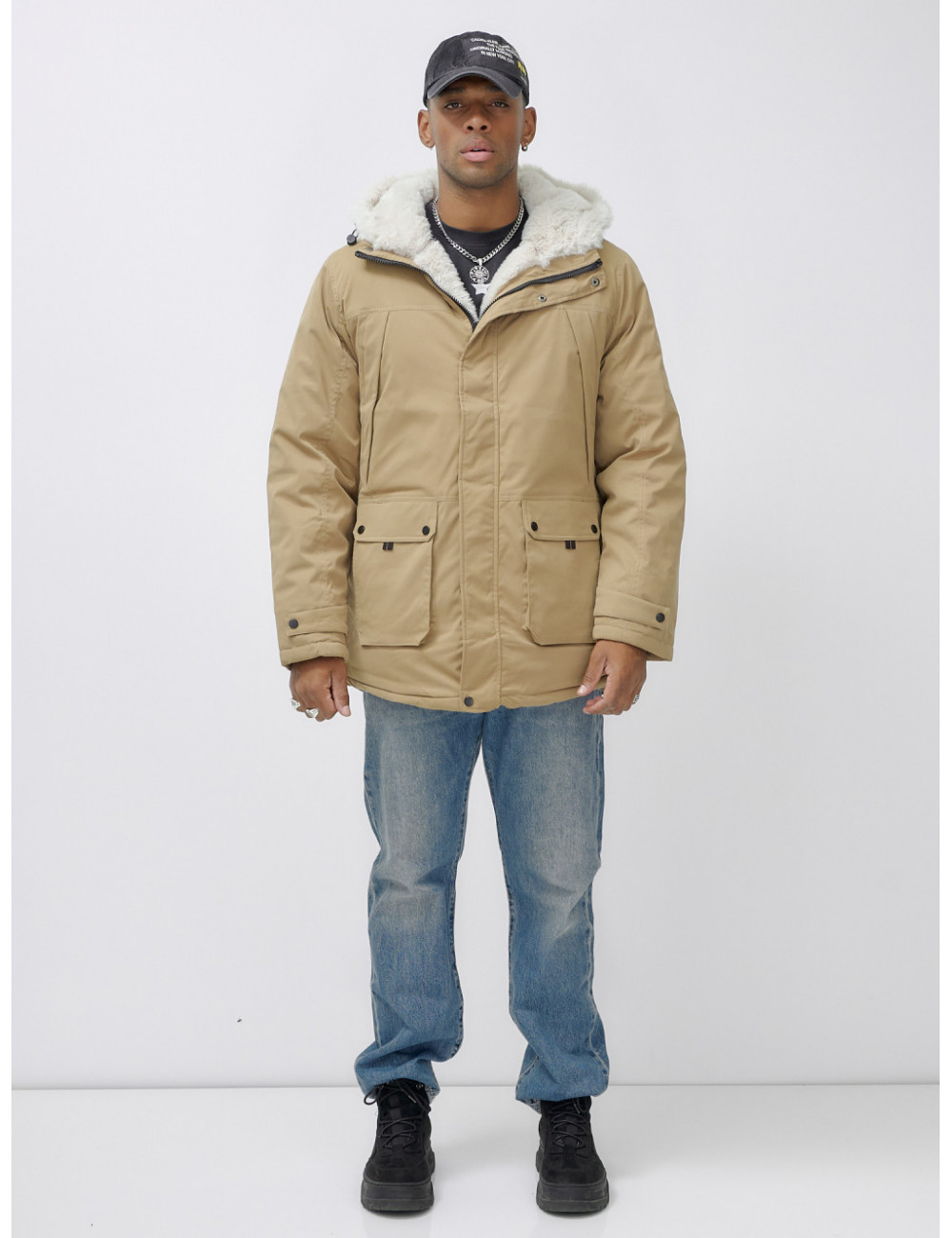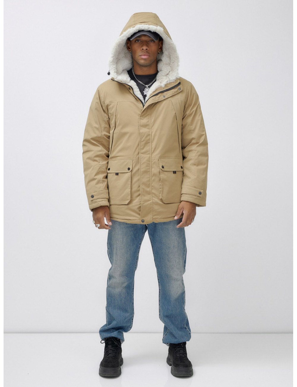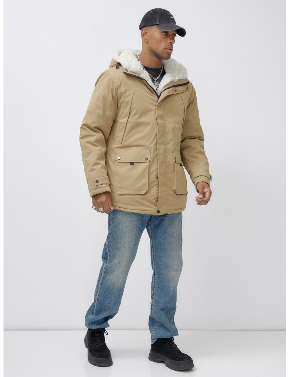Доставка Мужская зимняя удлиненная парка с мехом горчичного оттенка. по Тюмени и Тюменской области СДЭК