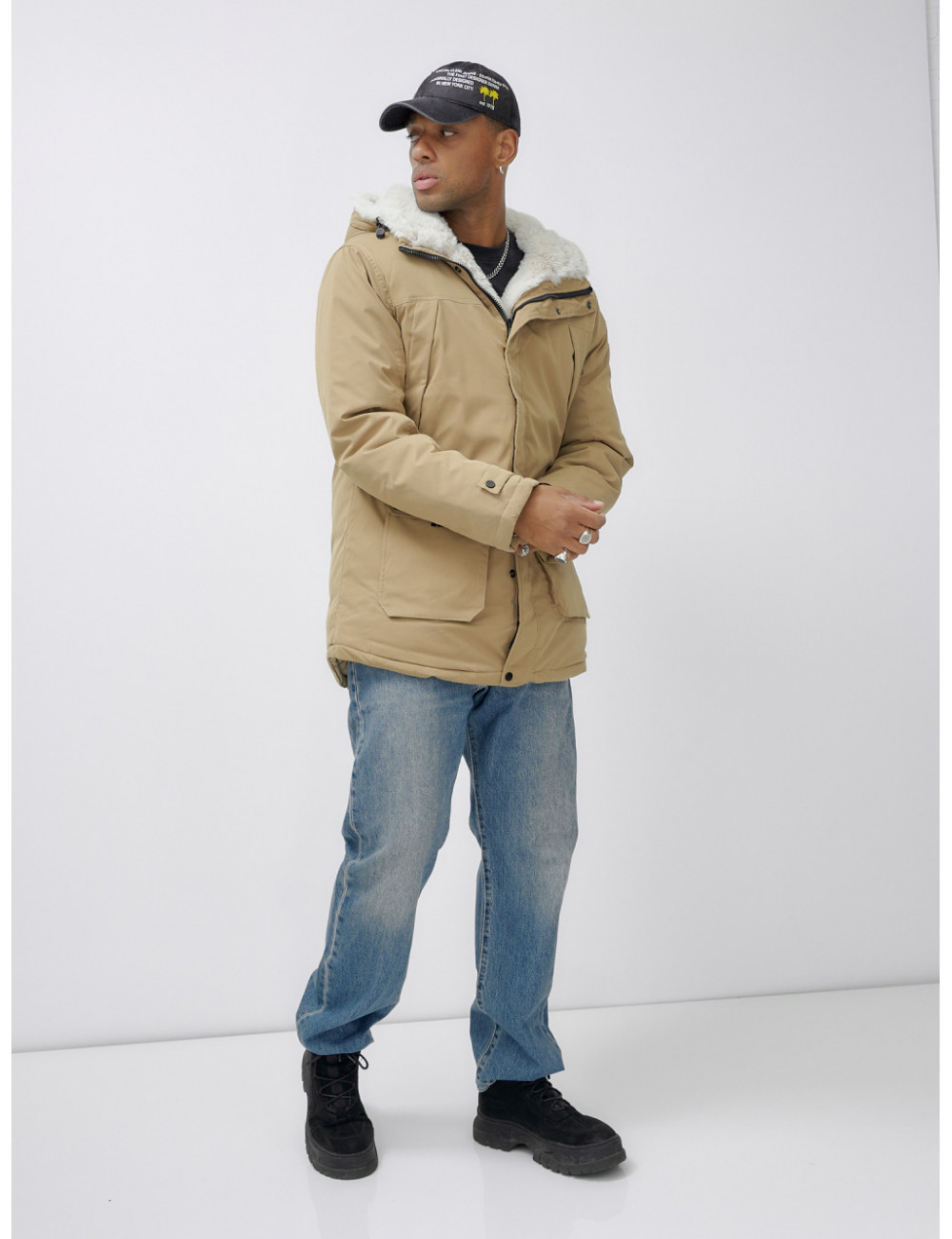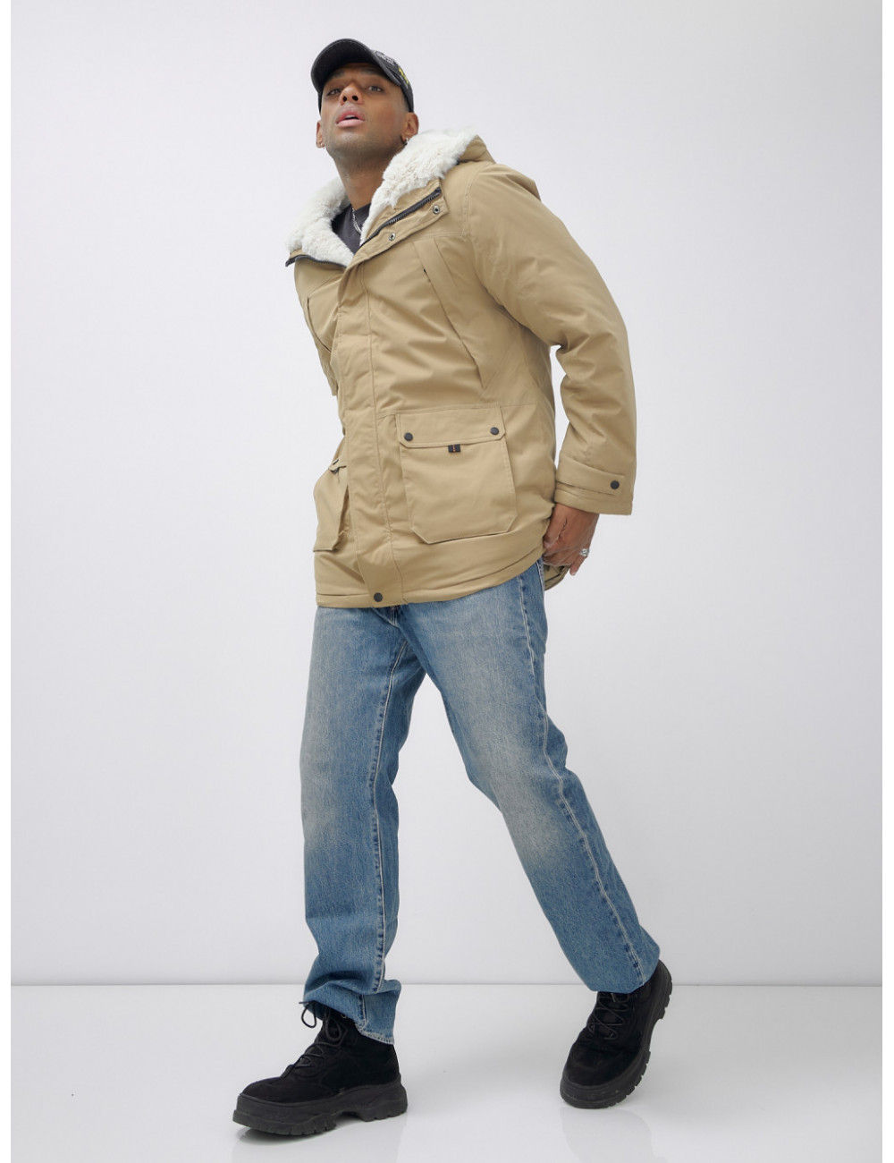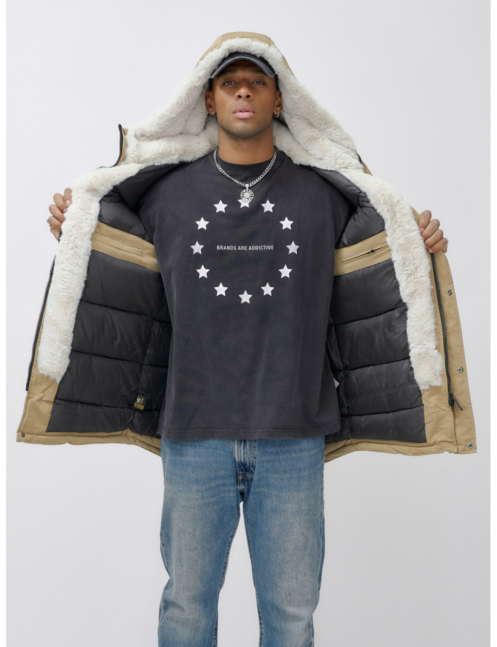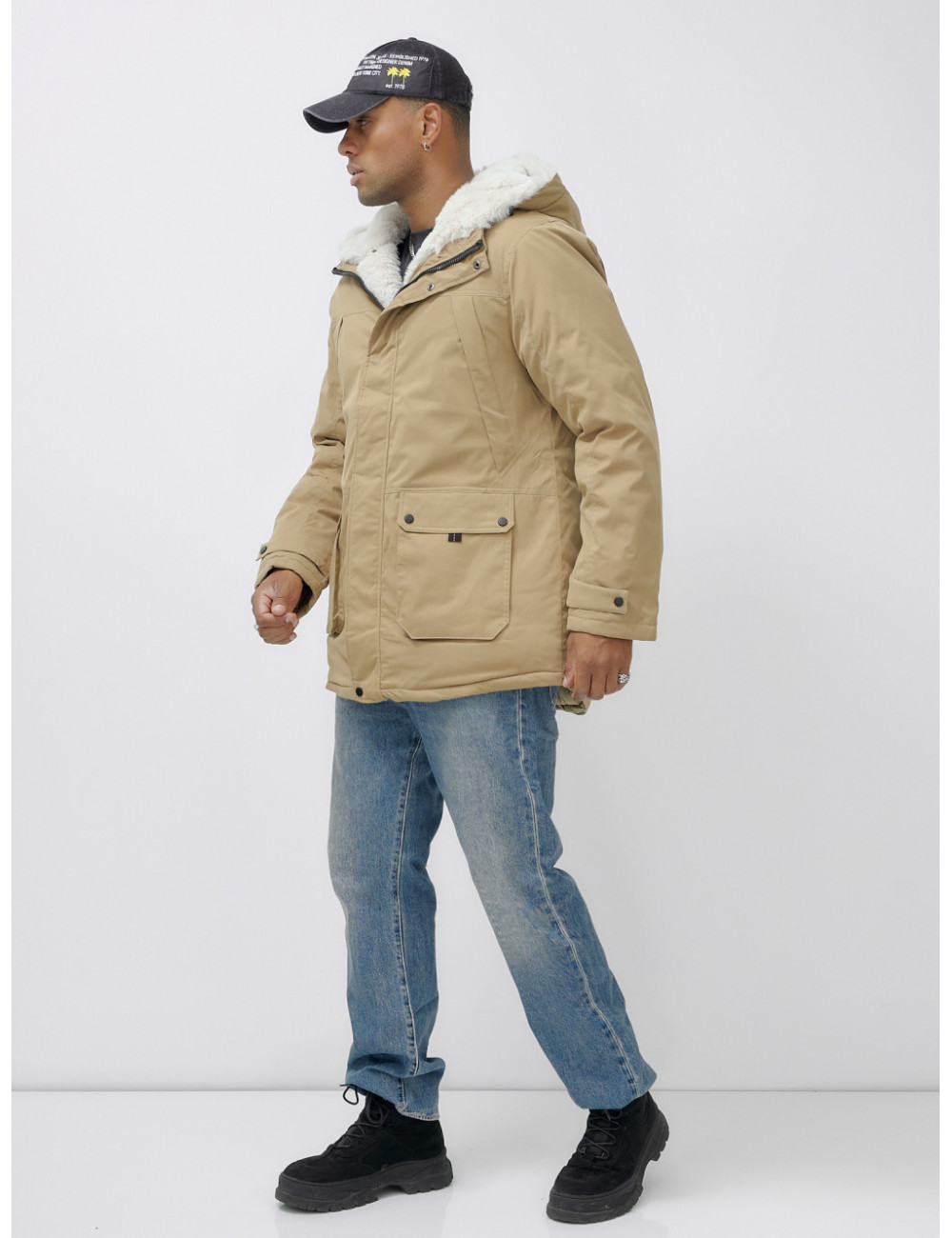 Доставка Мужская зимняя удлиненная парка с мехом горчичного оттенка. по Тюмени и Тюменской области СДЭК
