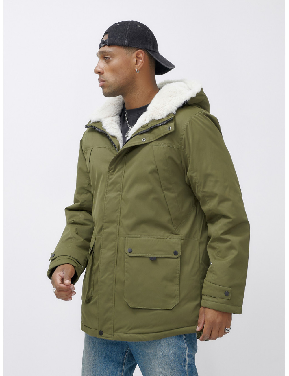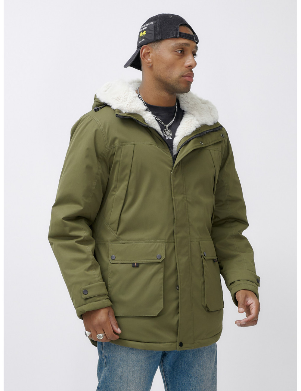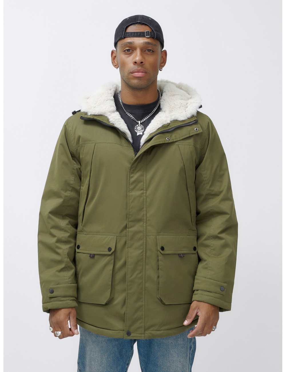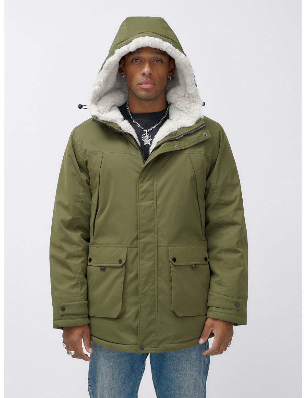 Доставка Мужская зимняя парка удлинённая с мехом, хаки, для активного отдыха по Тюмени и Тюменской области СДЭК