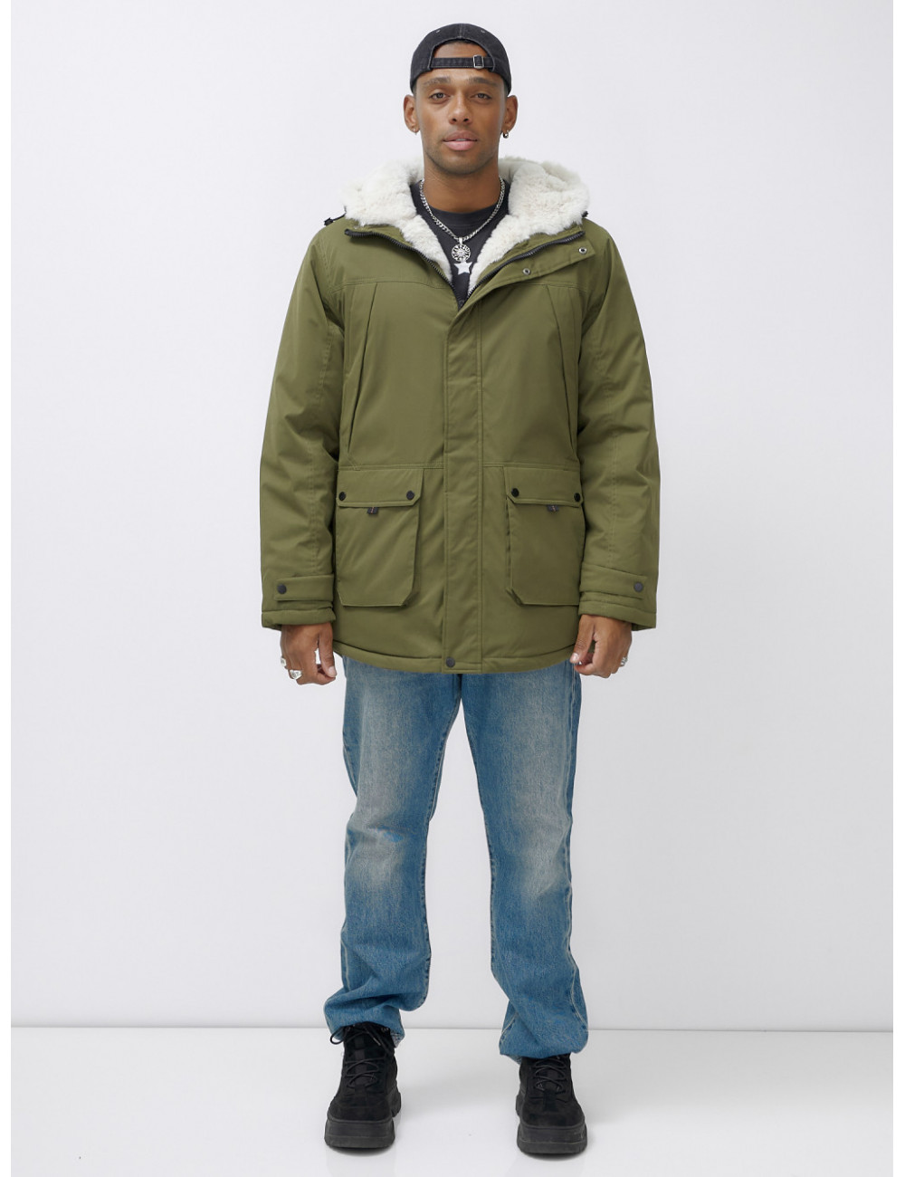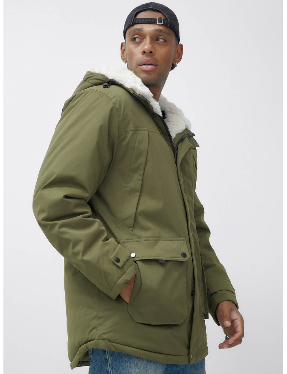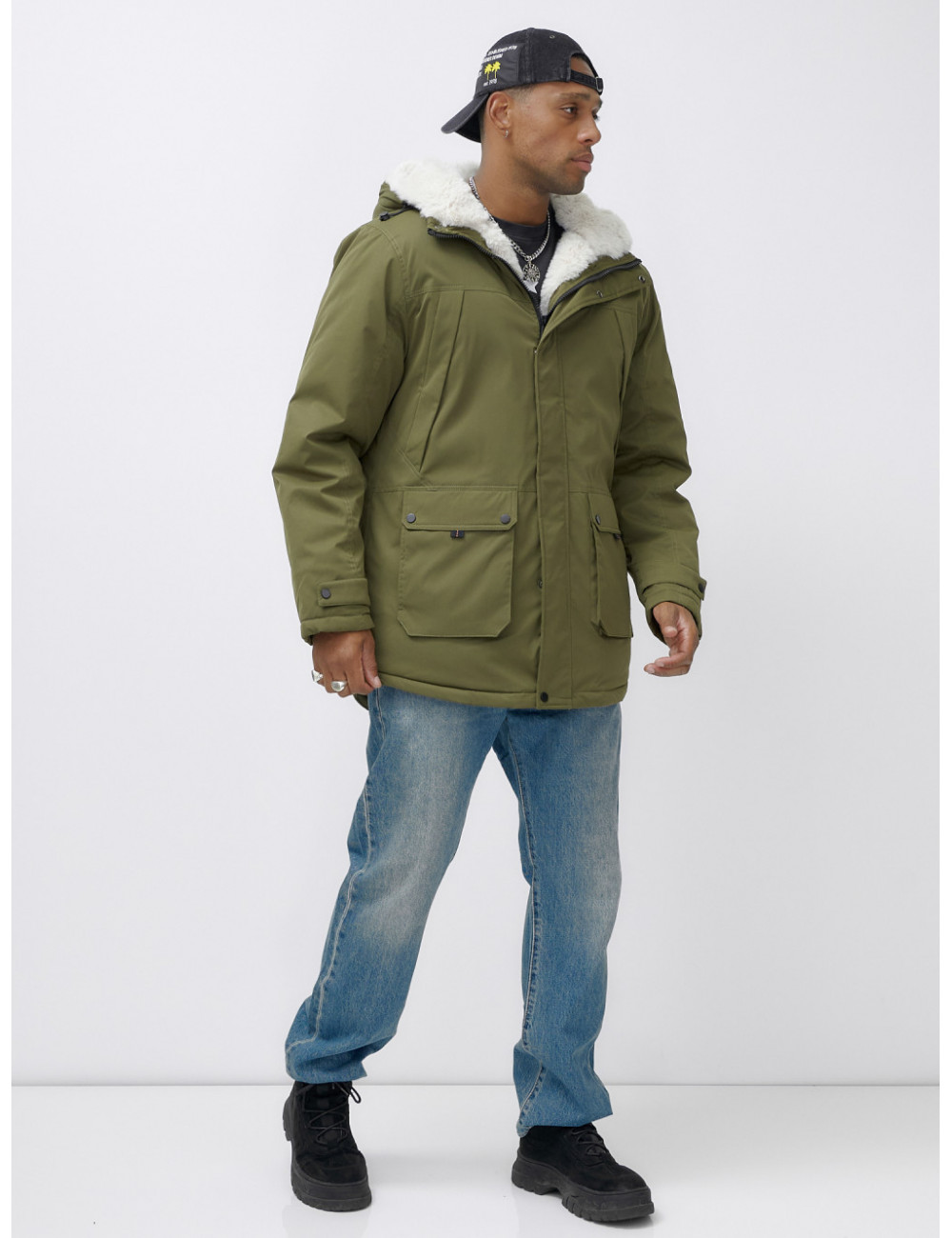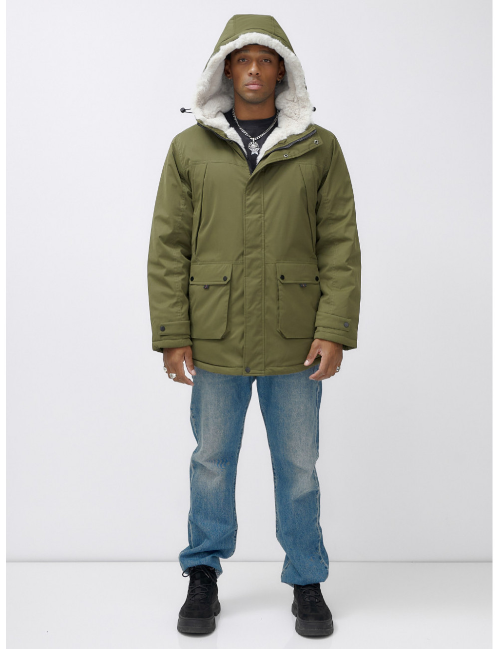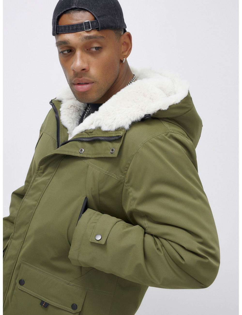 Доставка Мужская зимняя парка удлинённая с мехом, хаки, для активного отдыха по Тюмени и Тюменской области СДЭК