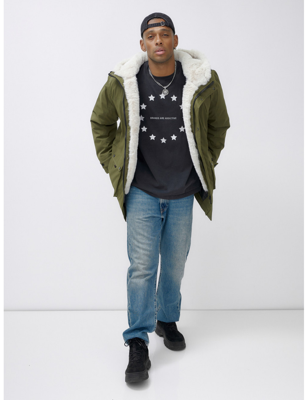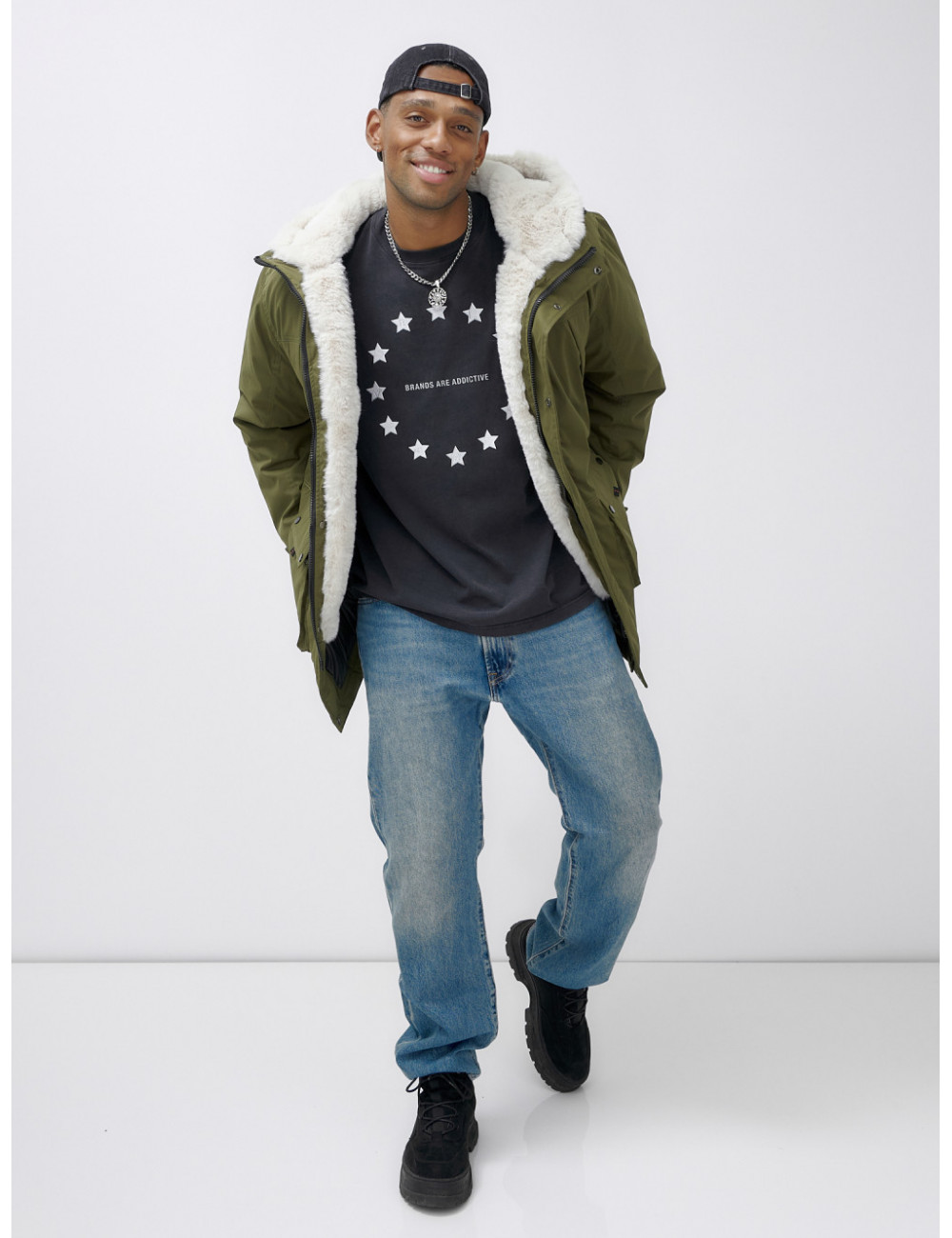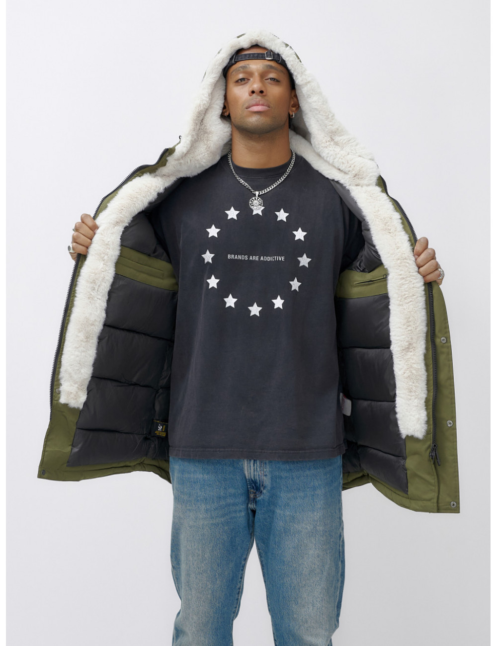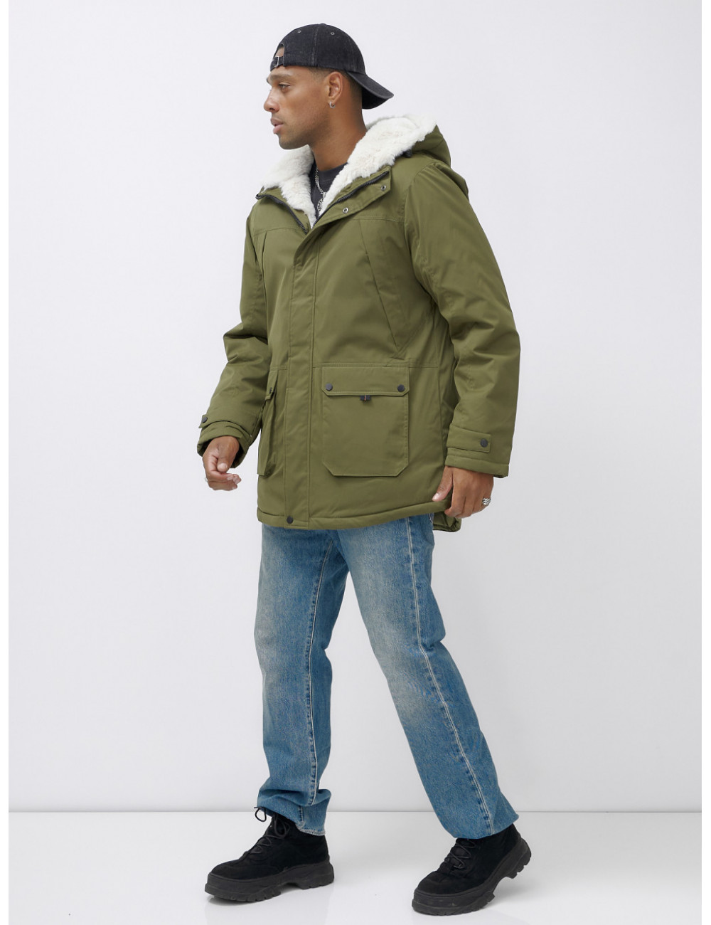 Доставка Мужская зимняя парка удлинённая с мехом, хаки, для активного отдыха по Тюмени и Тюменской области СДЭК