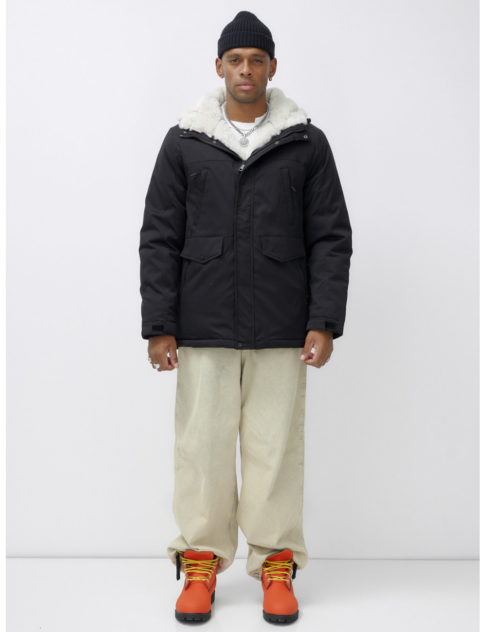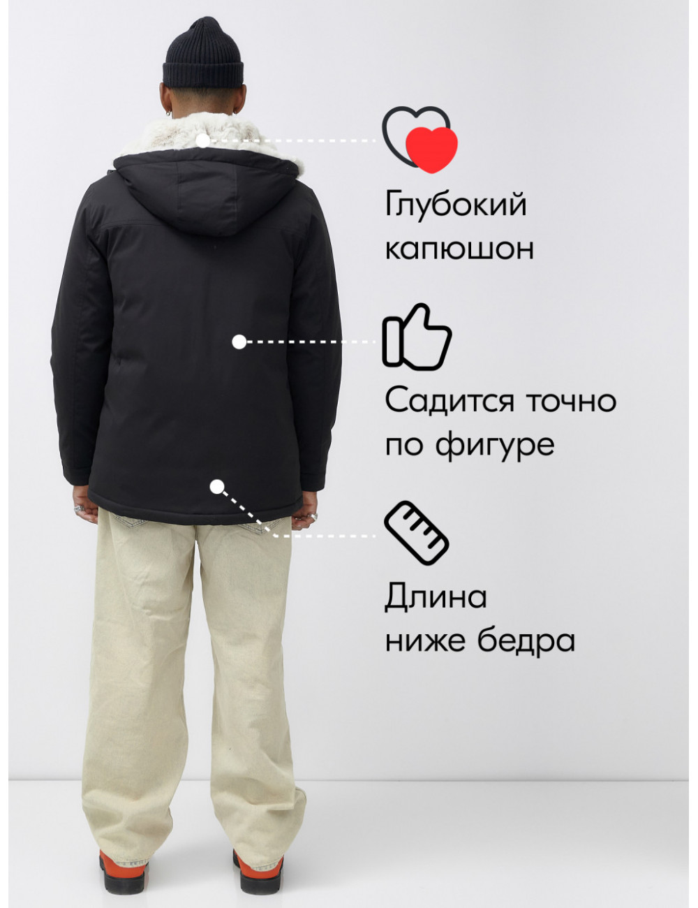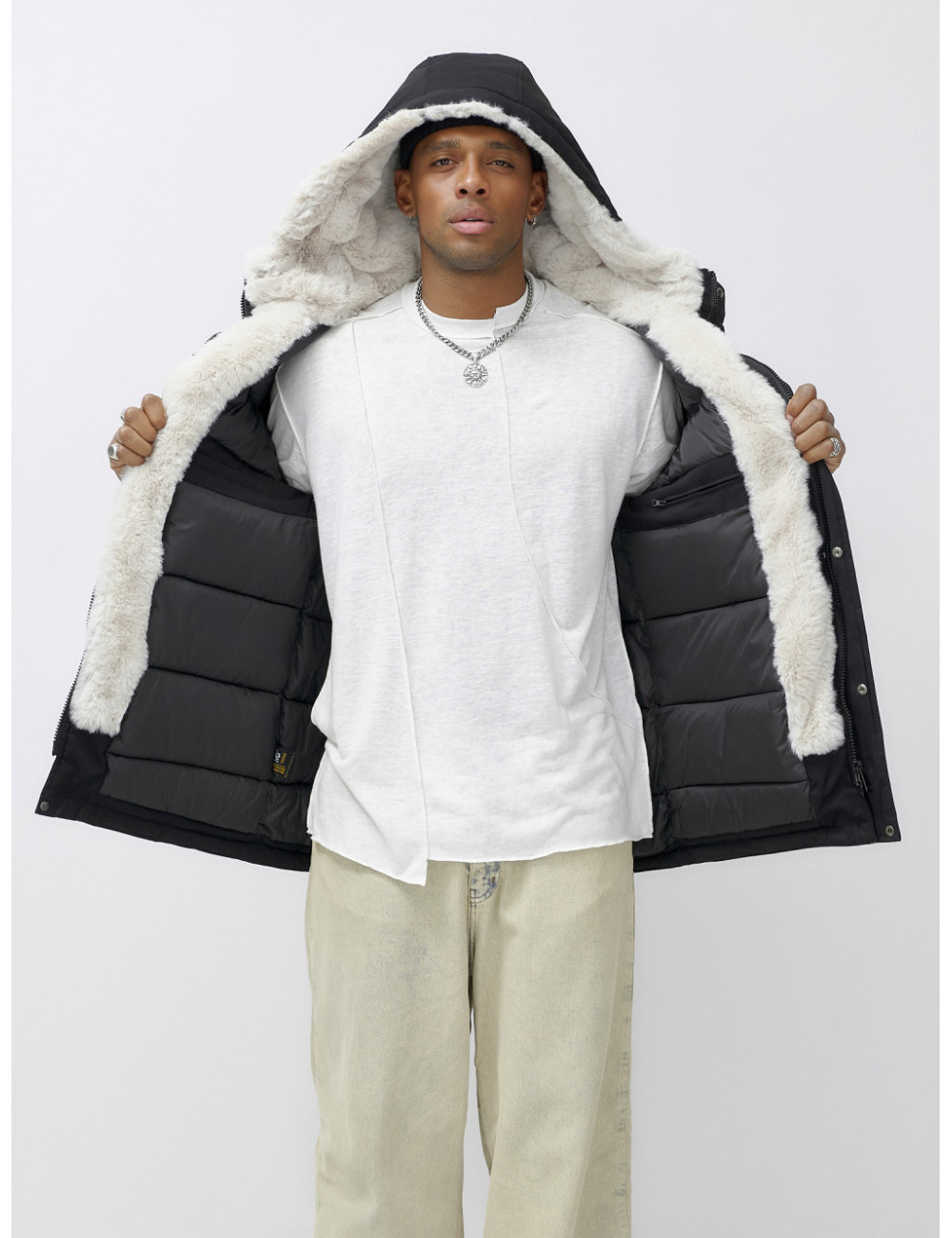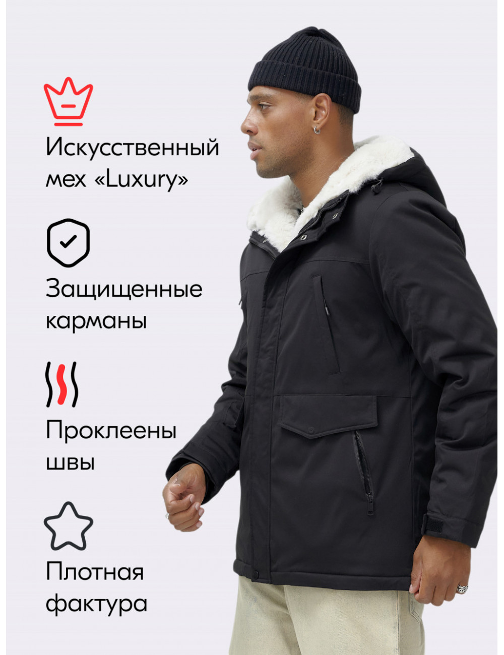 Доставка Мужская зимняя удлиненная парка с мехом, чёрная по Тюмени и Тюменской области СДЭК